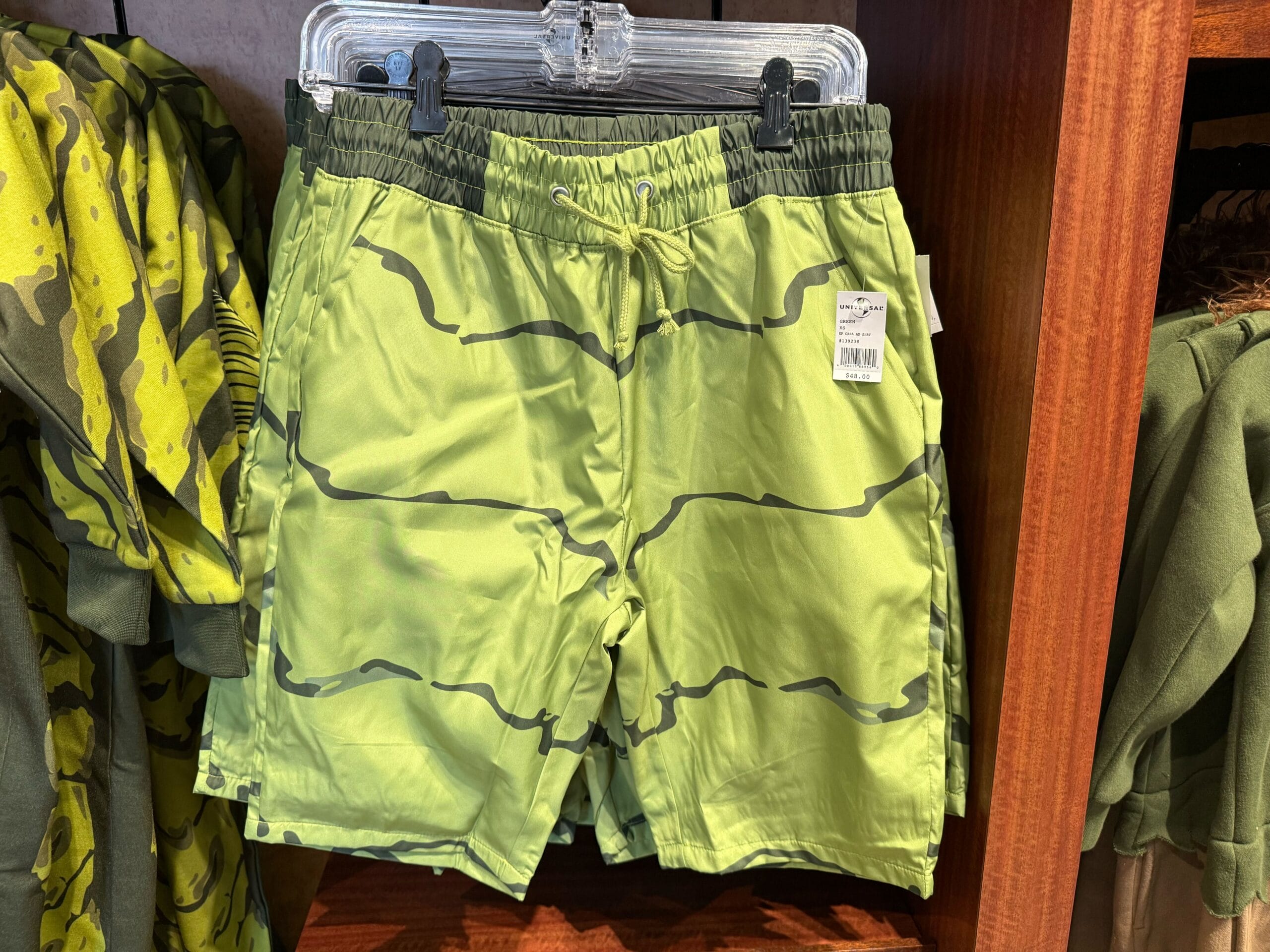 The shorts similarly have a printed Creature design. They have pockets and a drawstring waist.