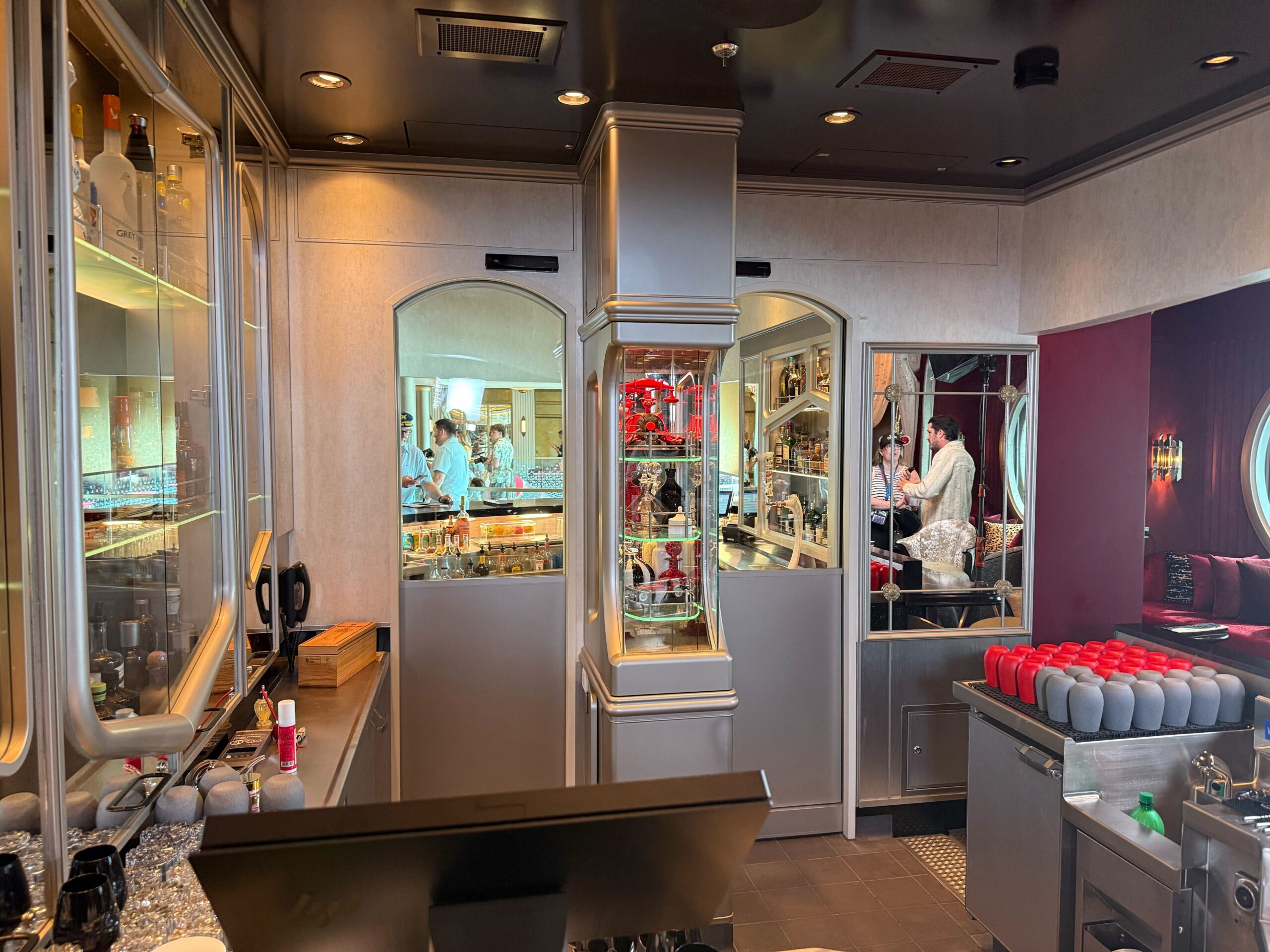 De Vil’s is located near the Grand Hall on Deck 3. Artwork hangs outside the venue inviting you in.