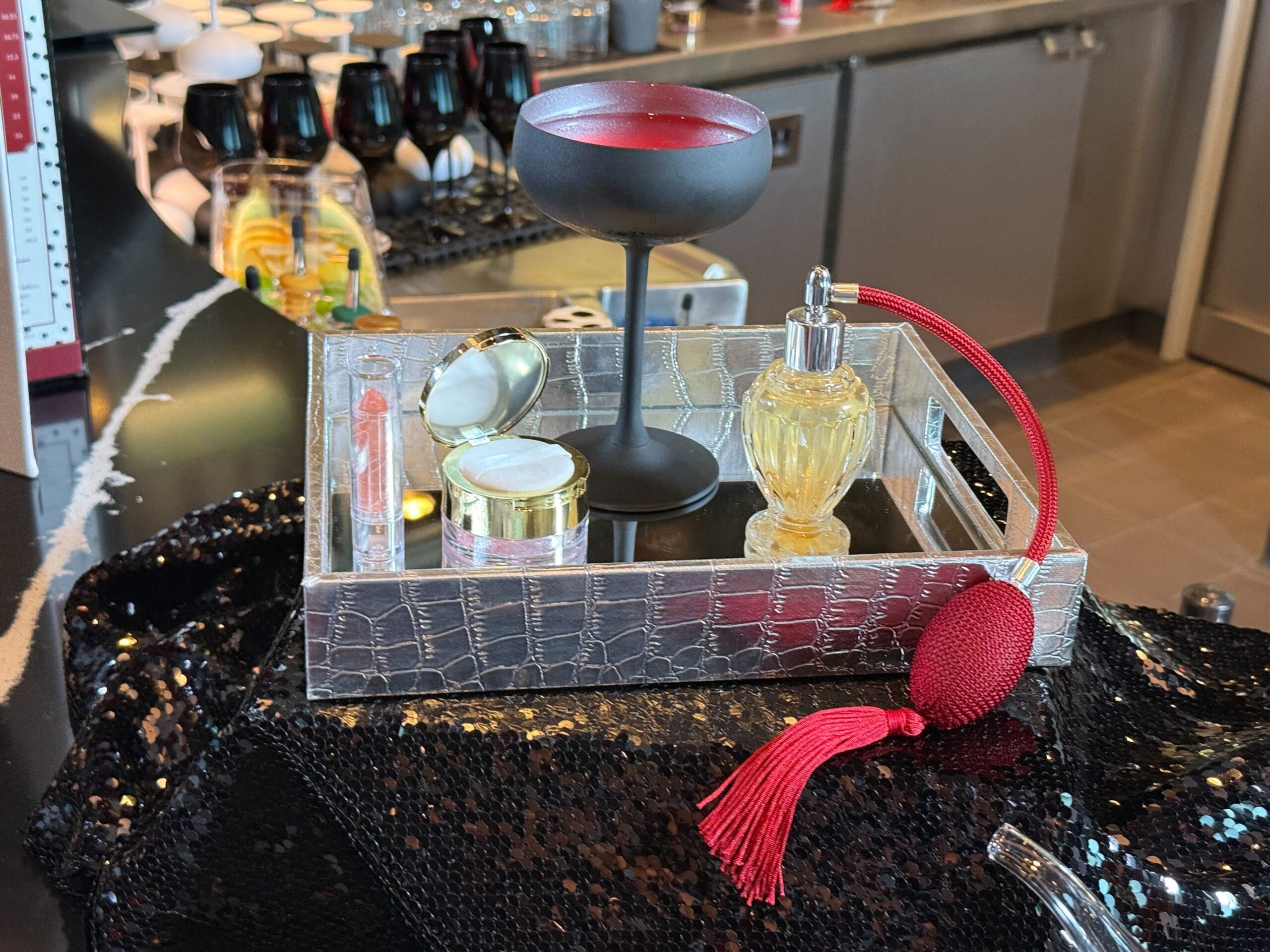- Perfect Wretched: Belvedere 10, Elderflower, Lime, Agave, Cucumber, and Strawberries. It is served with a side of lipstick, face powder, and perfume, for a true fashion lover.