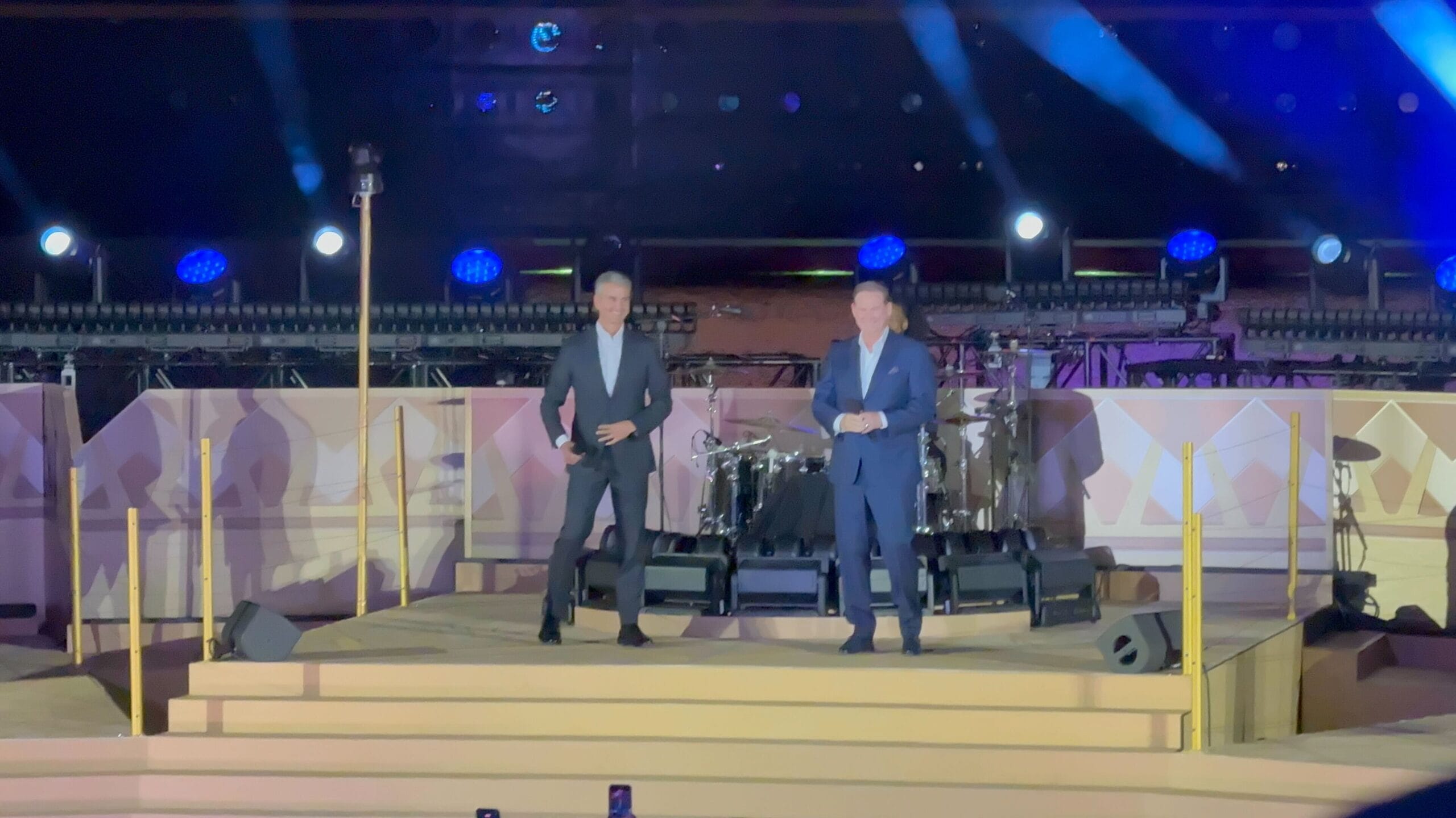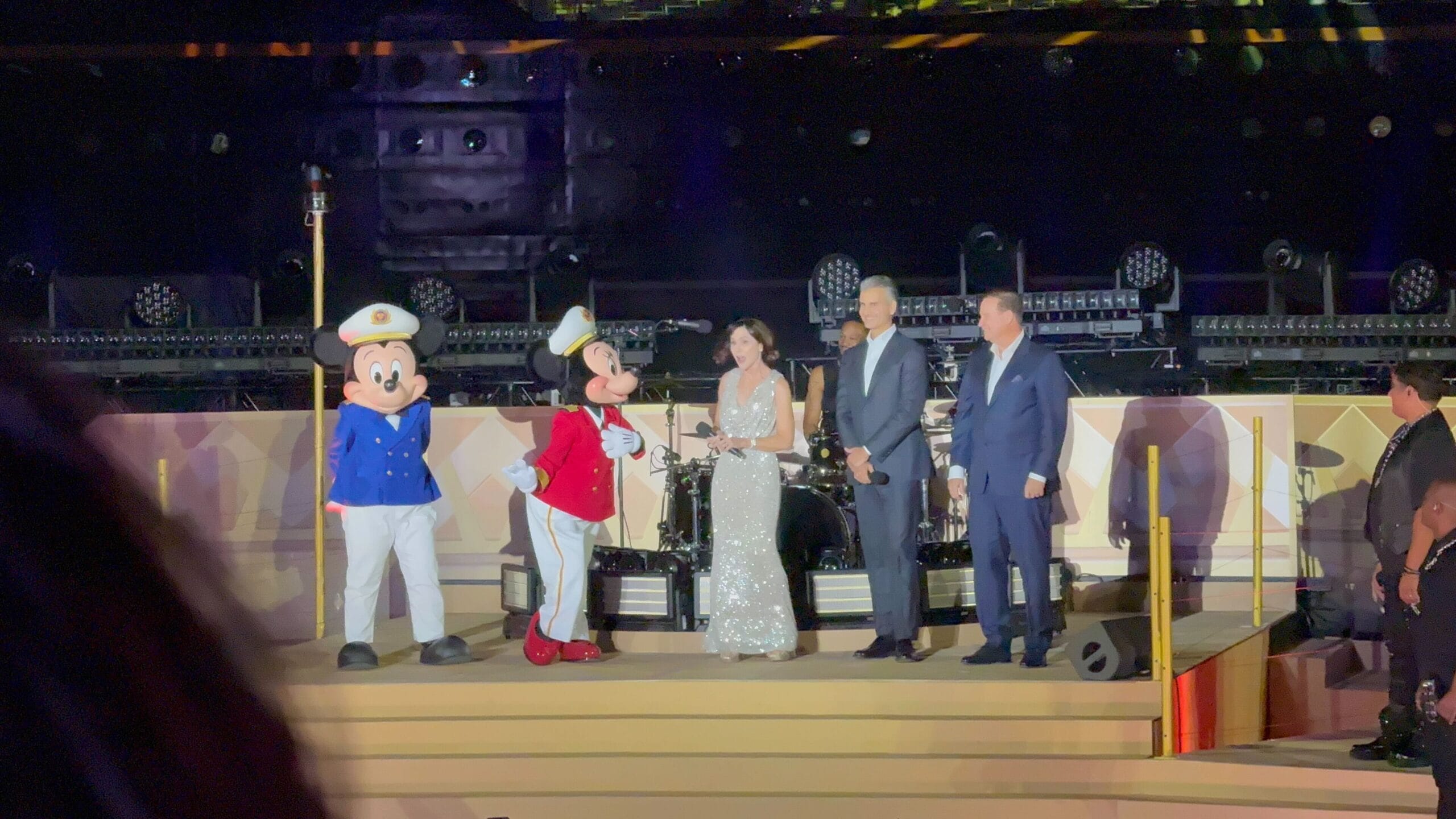 On a stage with the illuminated Destiny as a backdrop, Disney Experiences Chairman Josh D’Amaro and and Disney Signature Experiences President Joe Schott welcomed everyone to the ceremony.