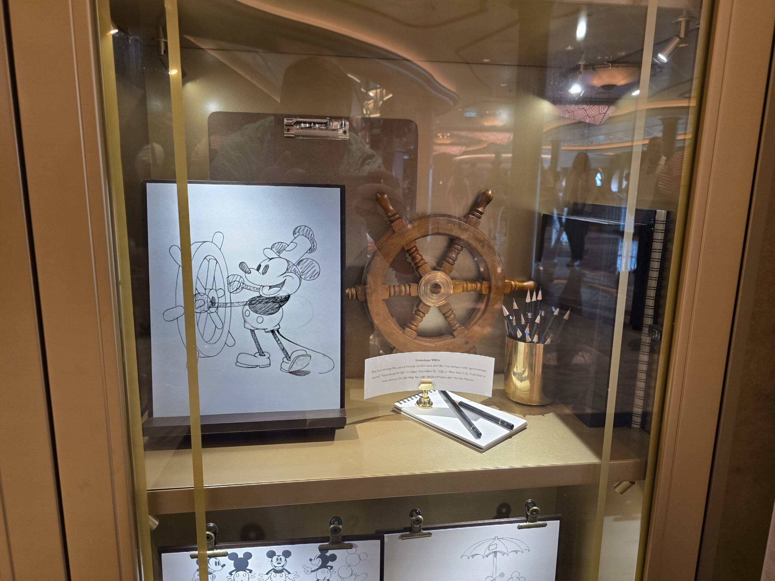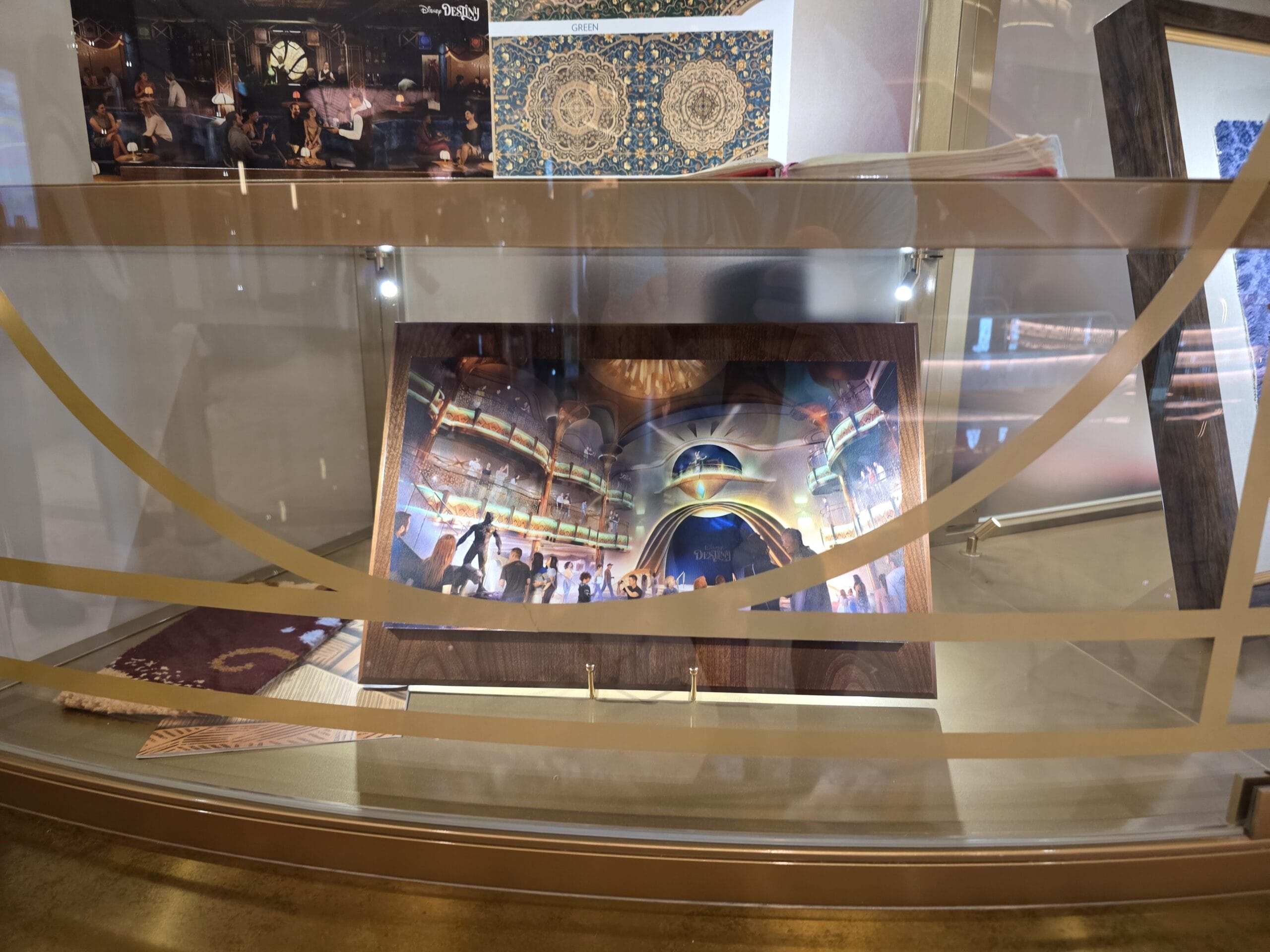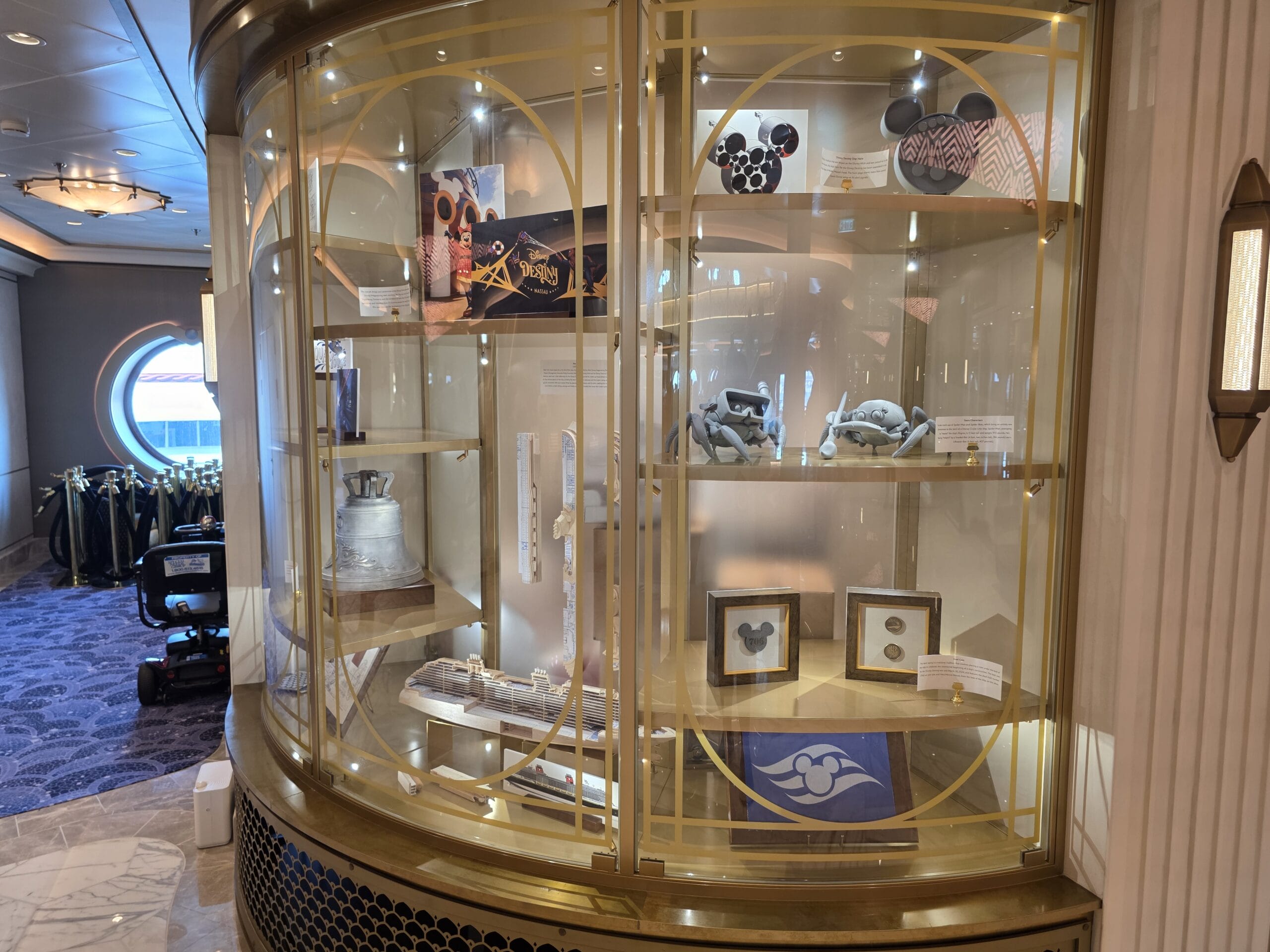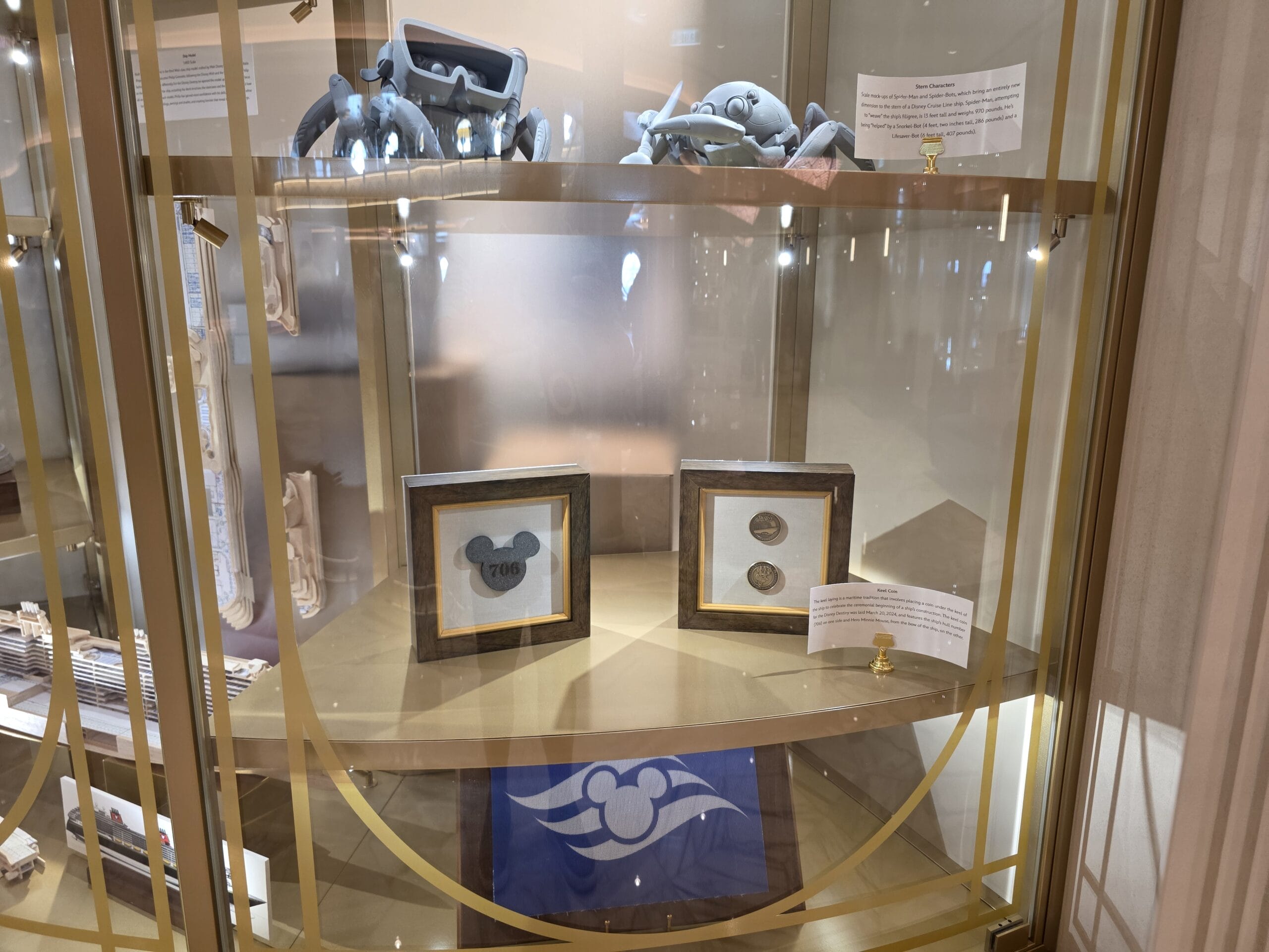 More displays feature Disney Cruise Line specific items, like models, artwork, and props.