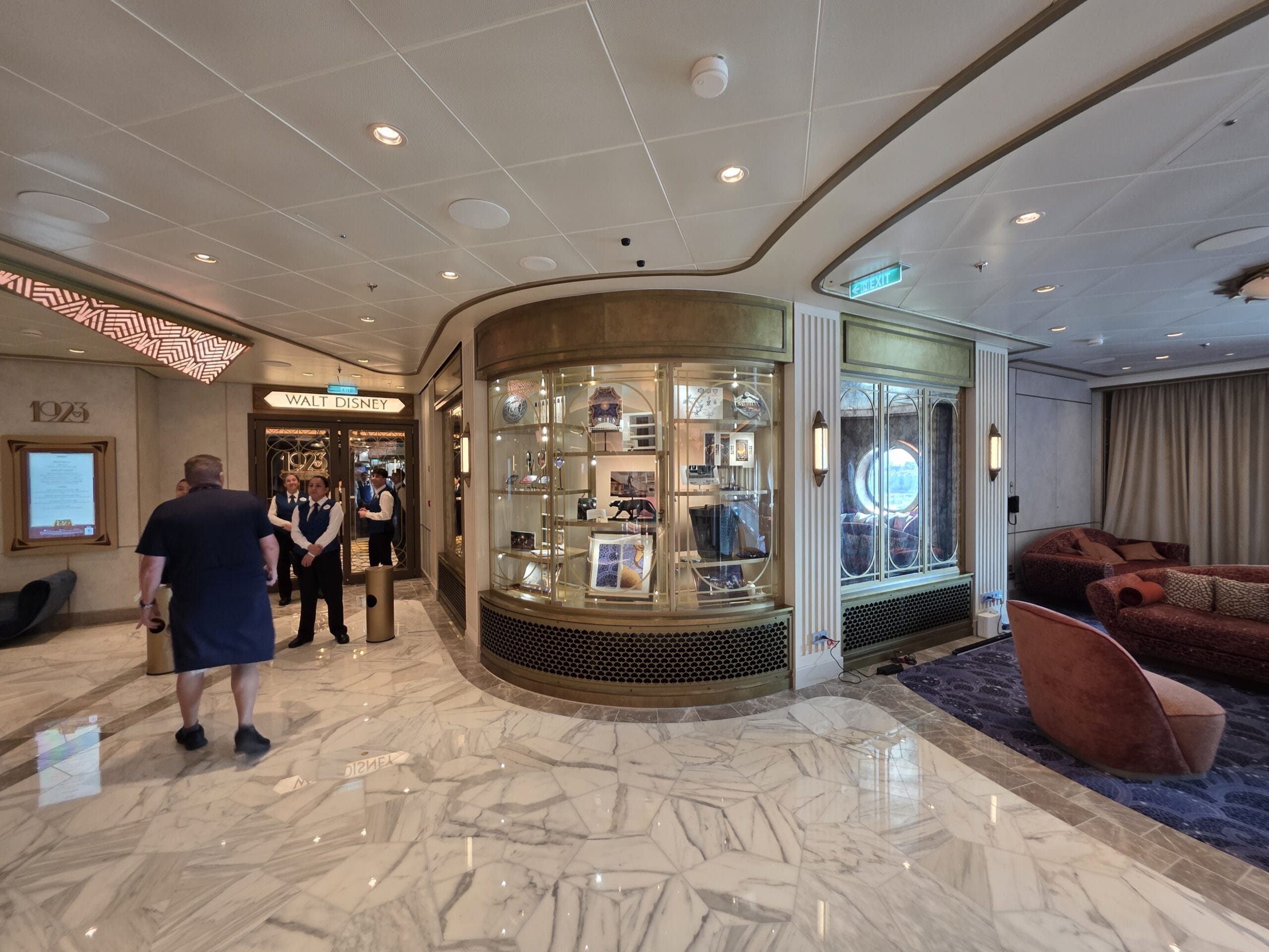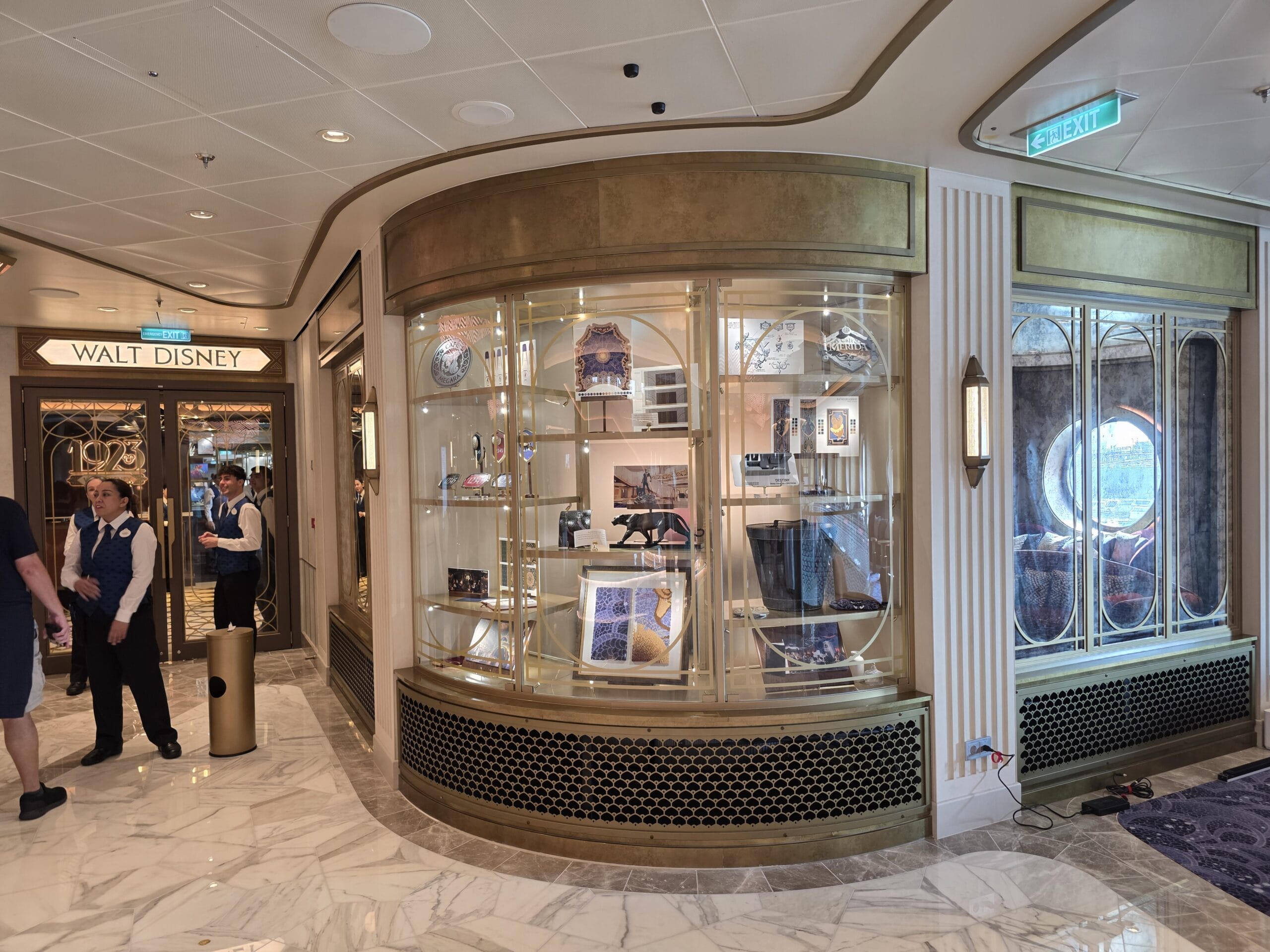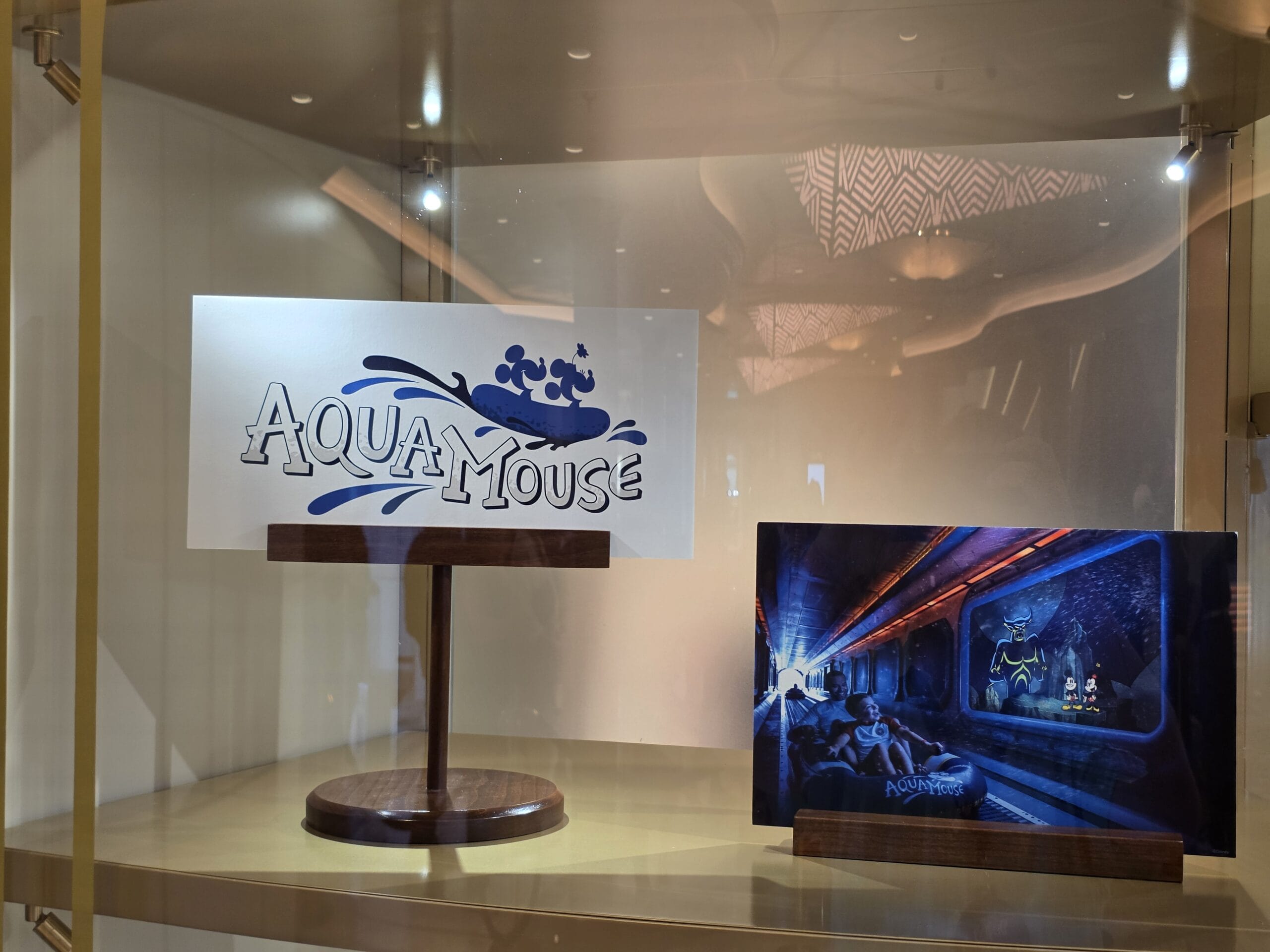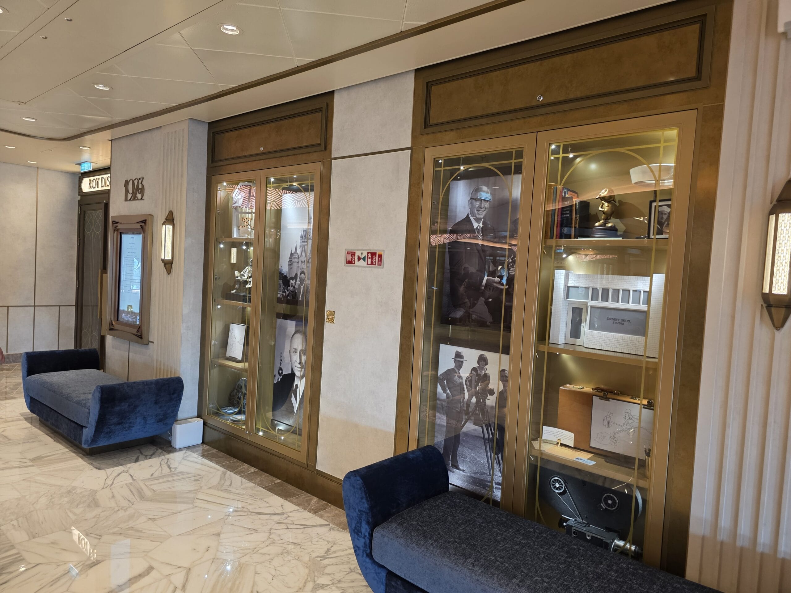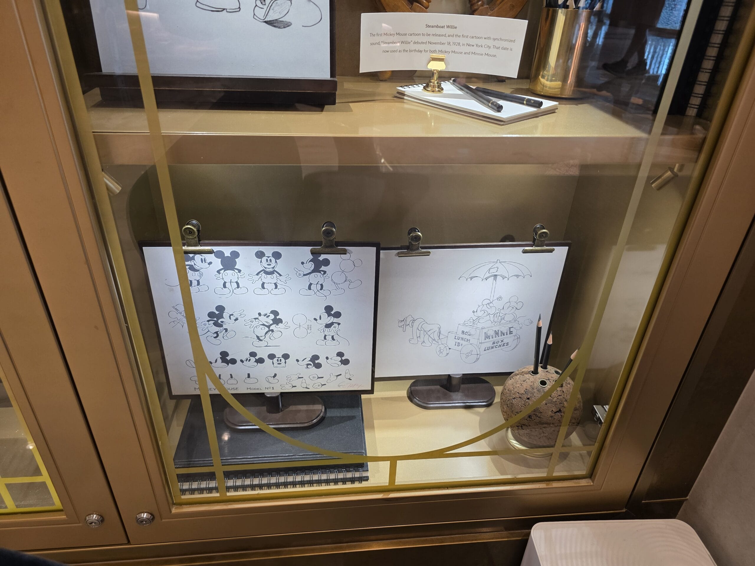 More displays feature Disney Cruise Line specific items, like models, artwork, and props.
