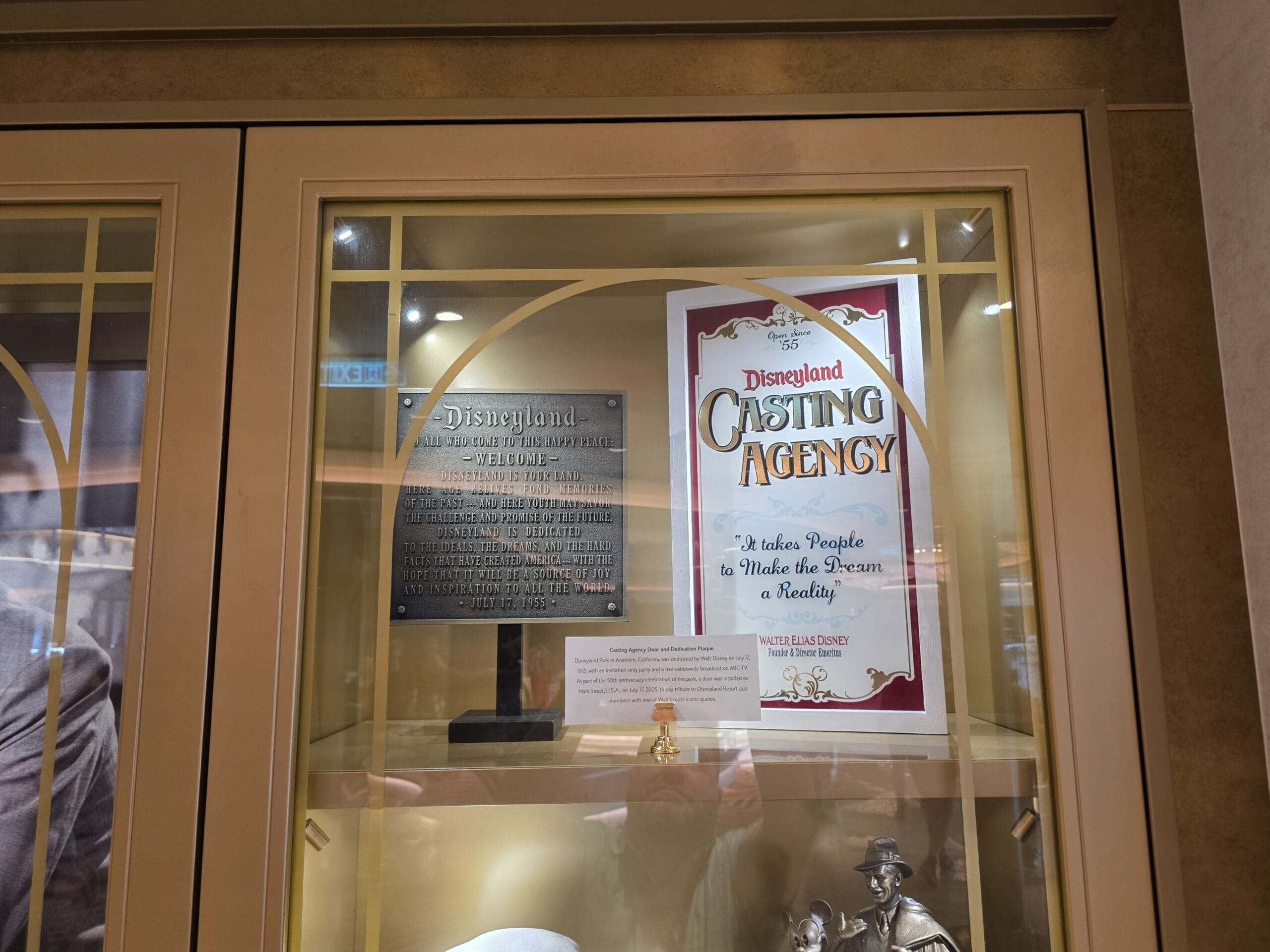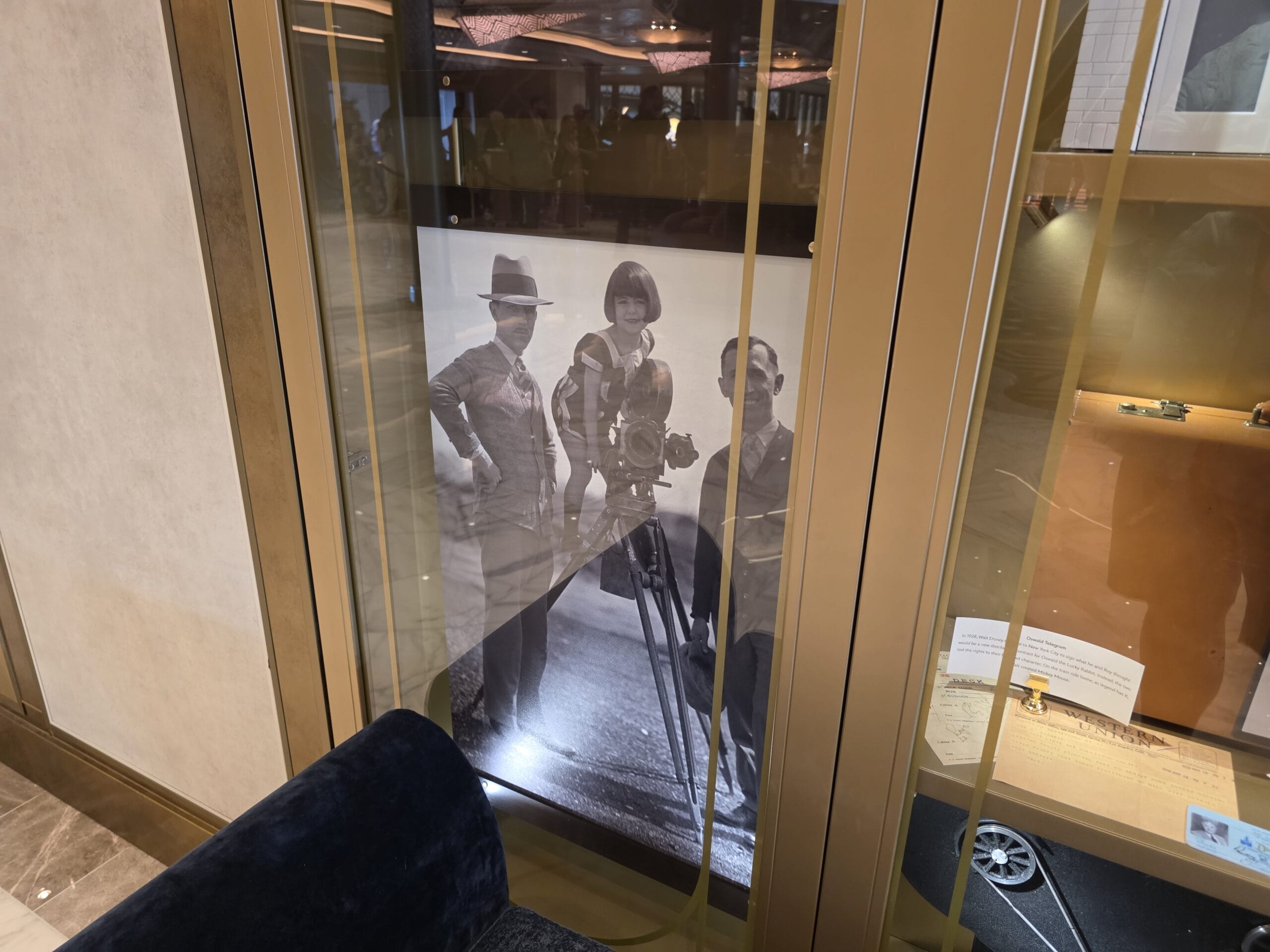 Another portion of the Grand Hall, near the entrance to 1923, includes several display cabinets with props, artwork, photos, books, and more.