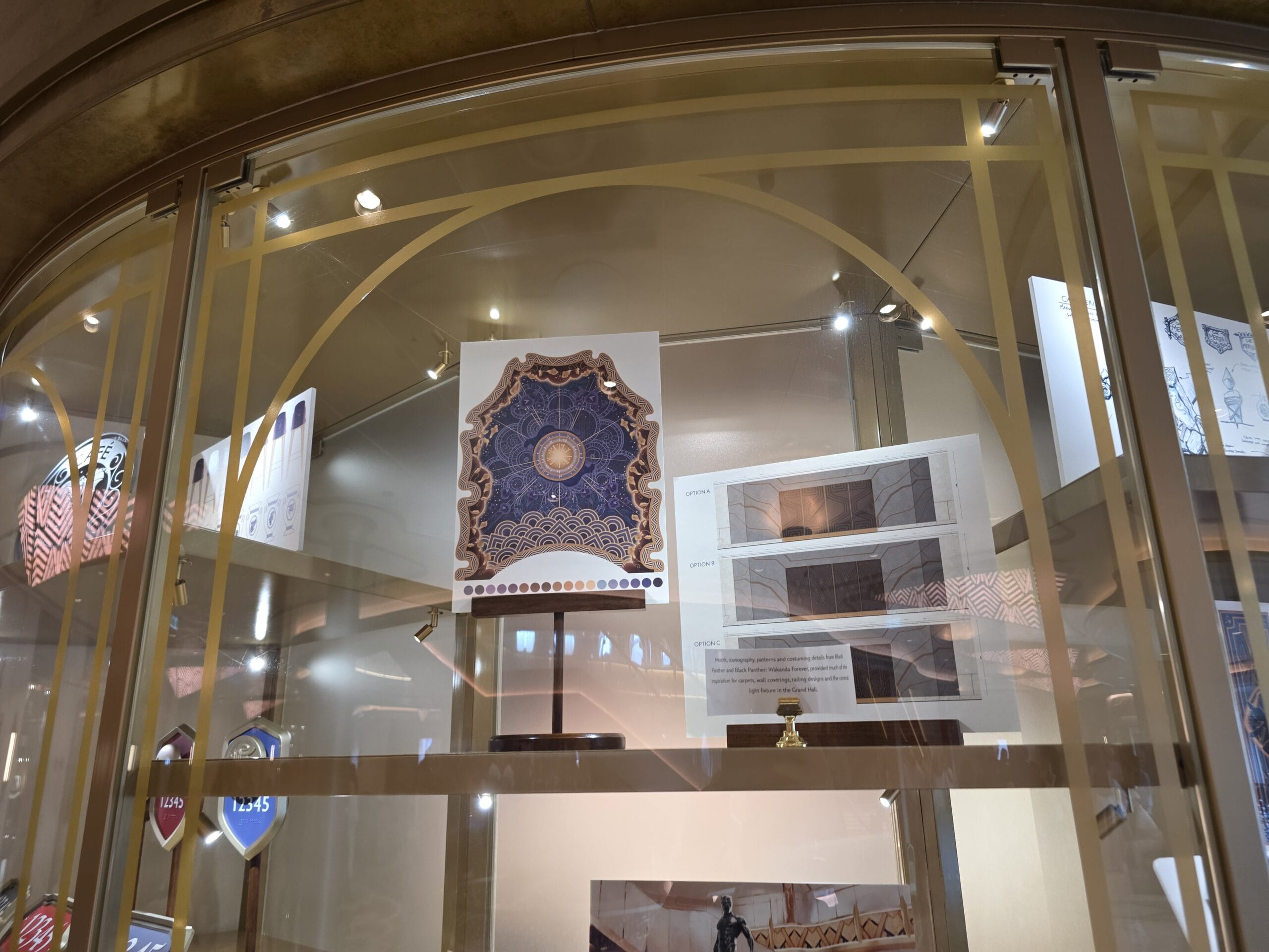 Marvel-themed props and concept art are also on display, including a statue of the Black Panther.