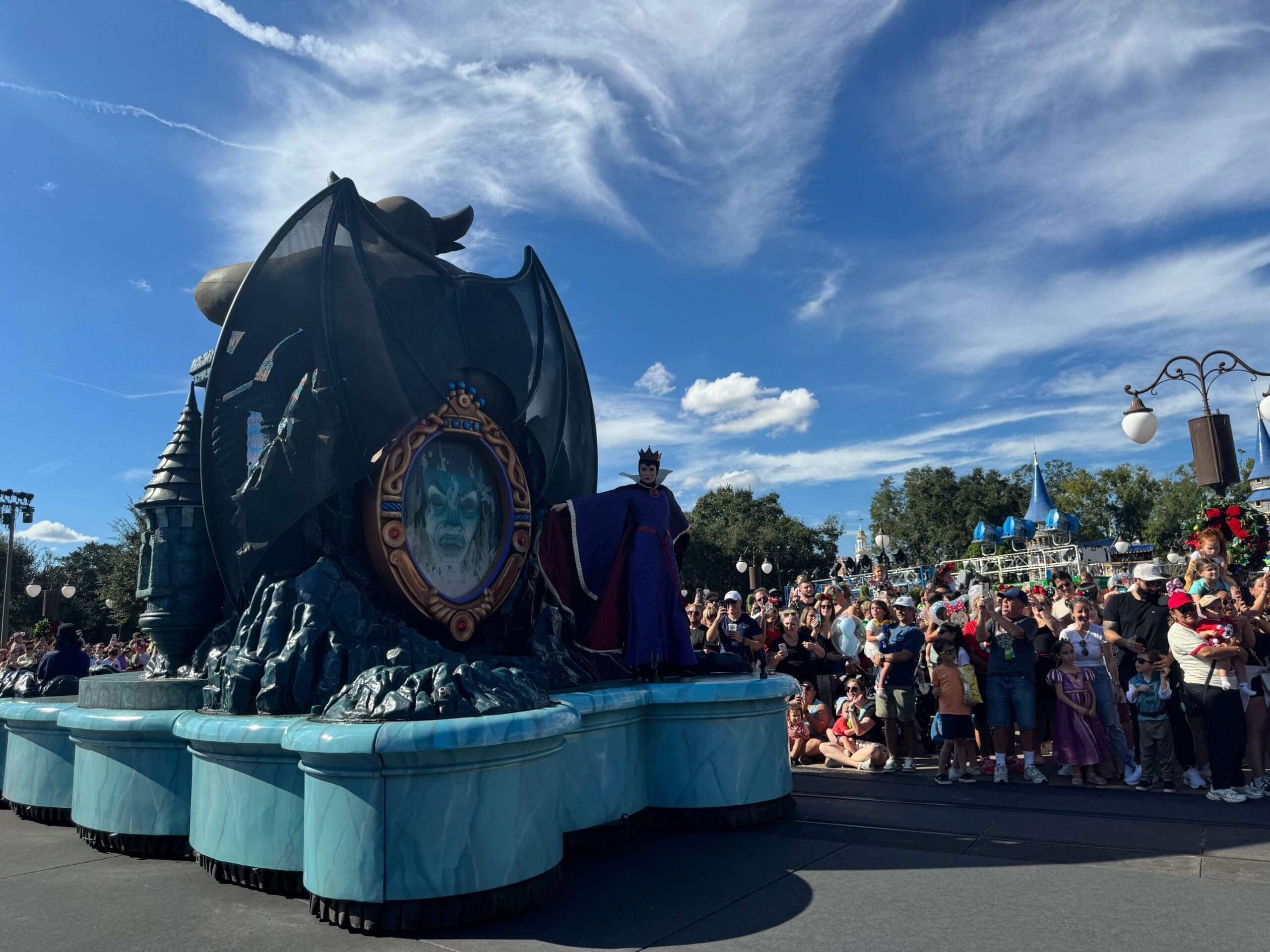 On the opposite side of Maleficent’s float was the Evil Queen, from Snow White and the Seven Dwarves, with the Magic Mirror lurking behind her.