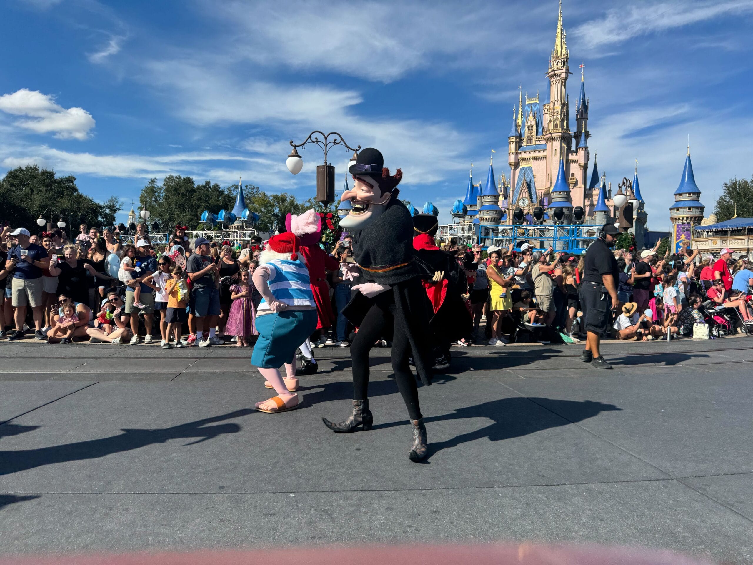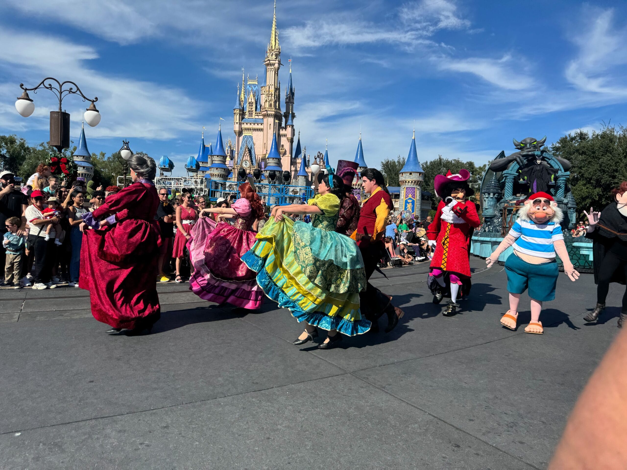 Ahead of Mickey’s Once Upon a Christmastime Parade, which is having a daytime performance at the Magic Kingdom today for filming, a small pre-parade took place with some of your favorite Disney Villains.
