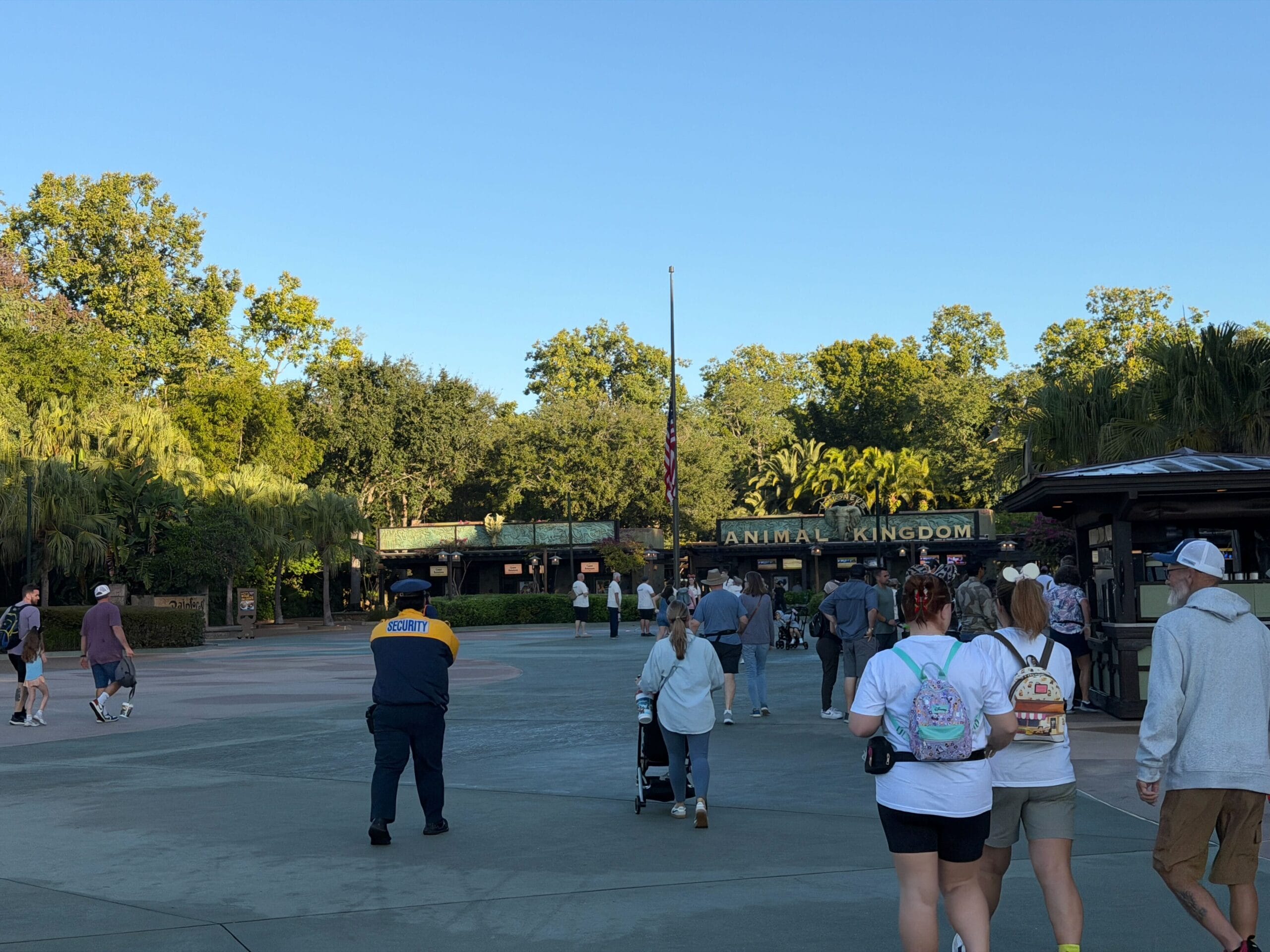Though Disney is private property, they usually do follow federal flag proclamations. This morning, our reporters are at both Hollywood Studios and Animal Kingdom, and both flags outside the park are at half-staff.