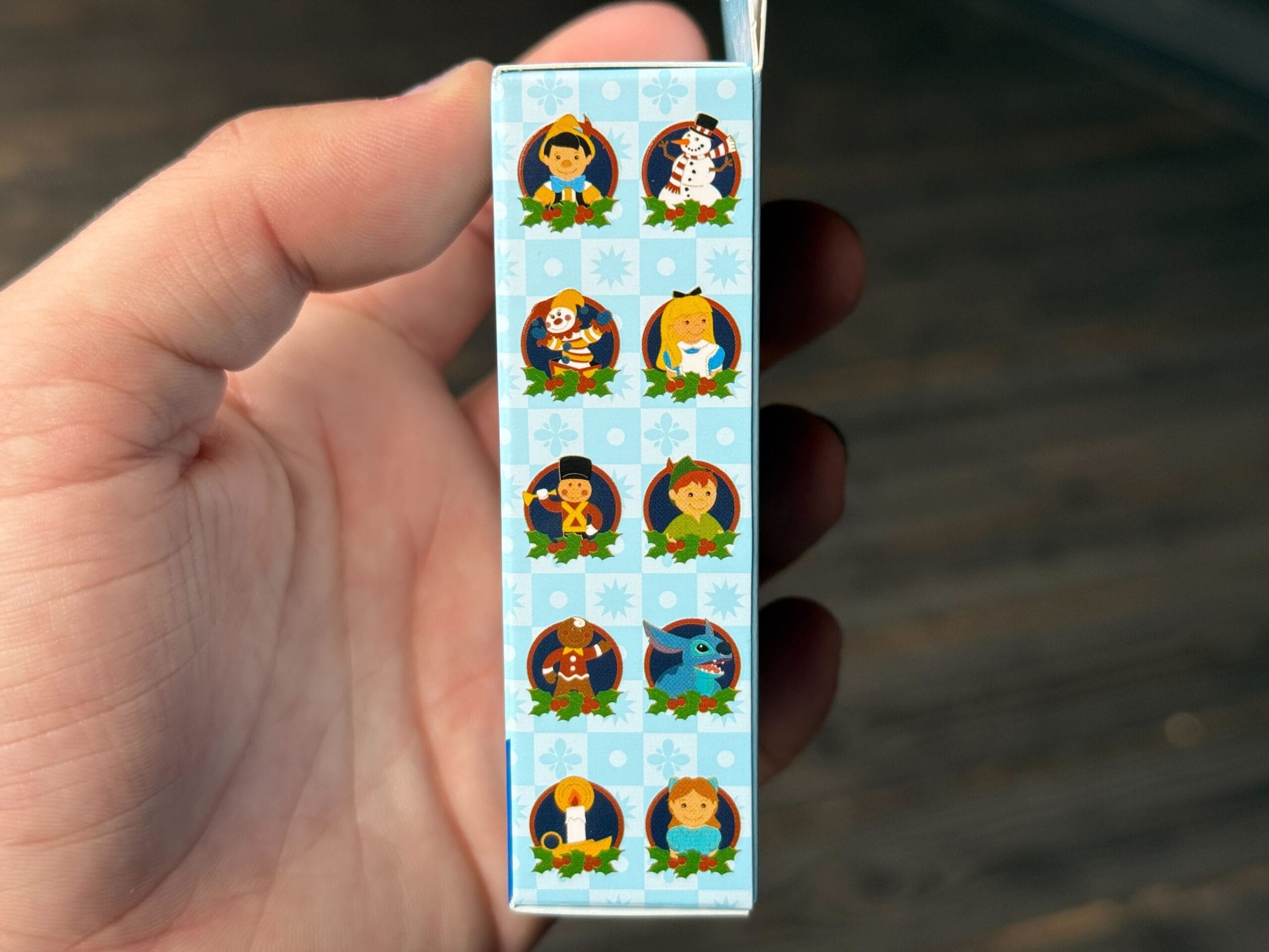 There are 10 pins in this set and each box contains 2 randomly selected pins. The featured “it’s a small world” Holiday characters and icons are Pinocchio, a snowman, a jack-in-the-box, Alice, a toy soldier, Peter Pan, a gingerbread man, Stitch, a candle, and Wendy.