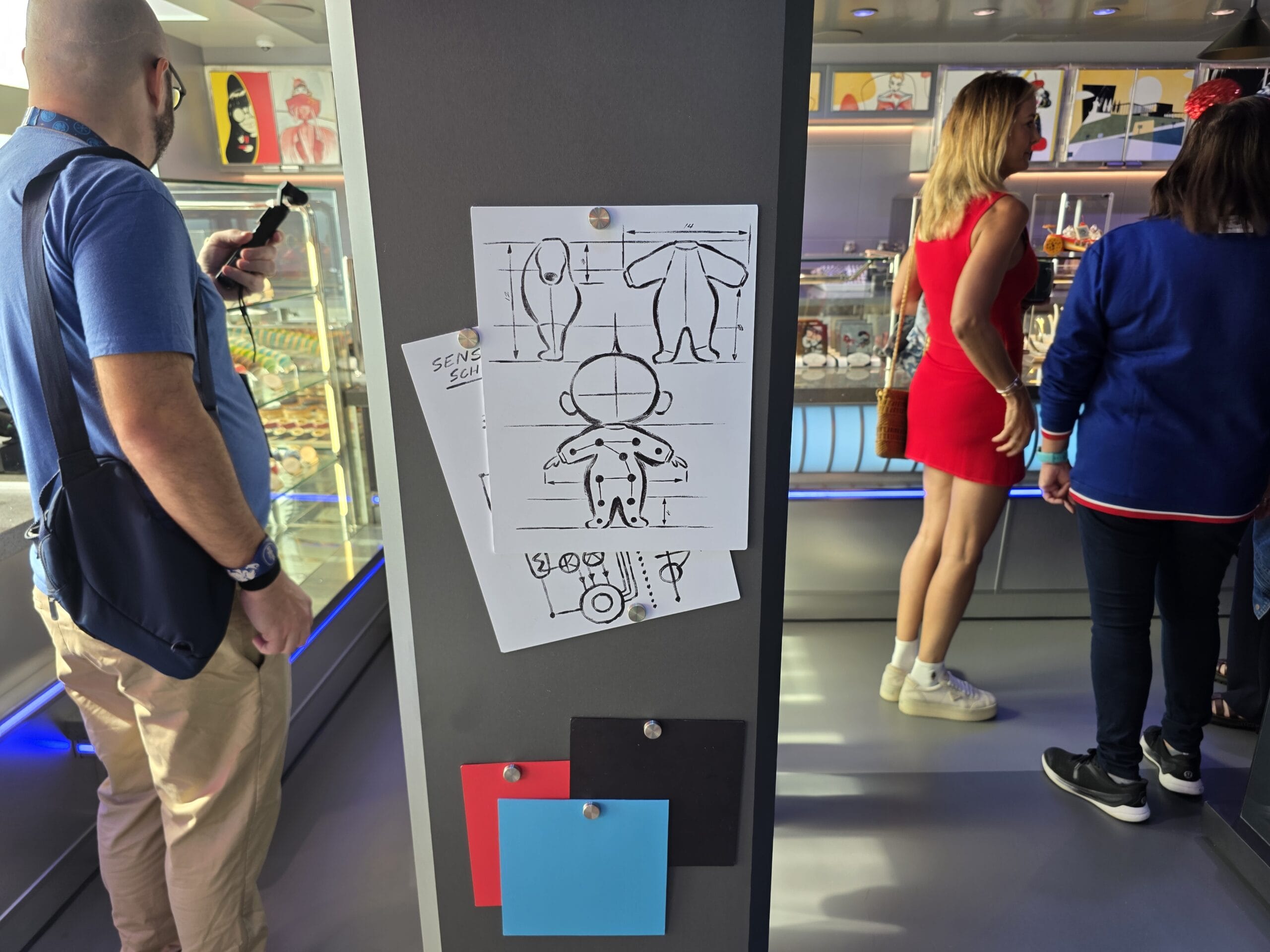 Sketches of Jack-Jack’s outfit and color swatches play into the fashion-forward aesthetic of the shop.