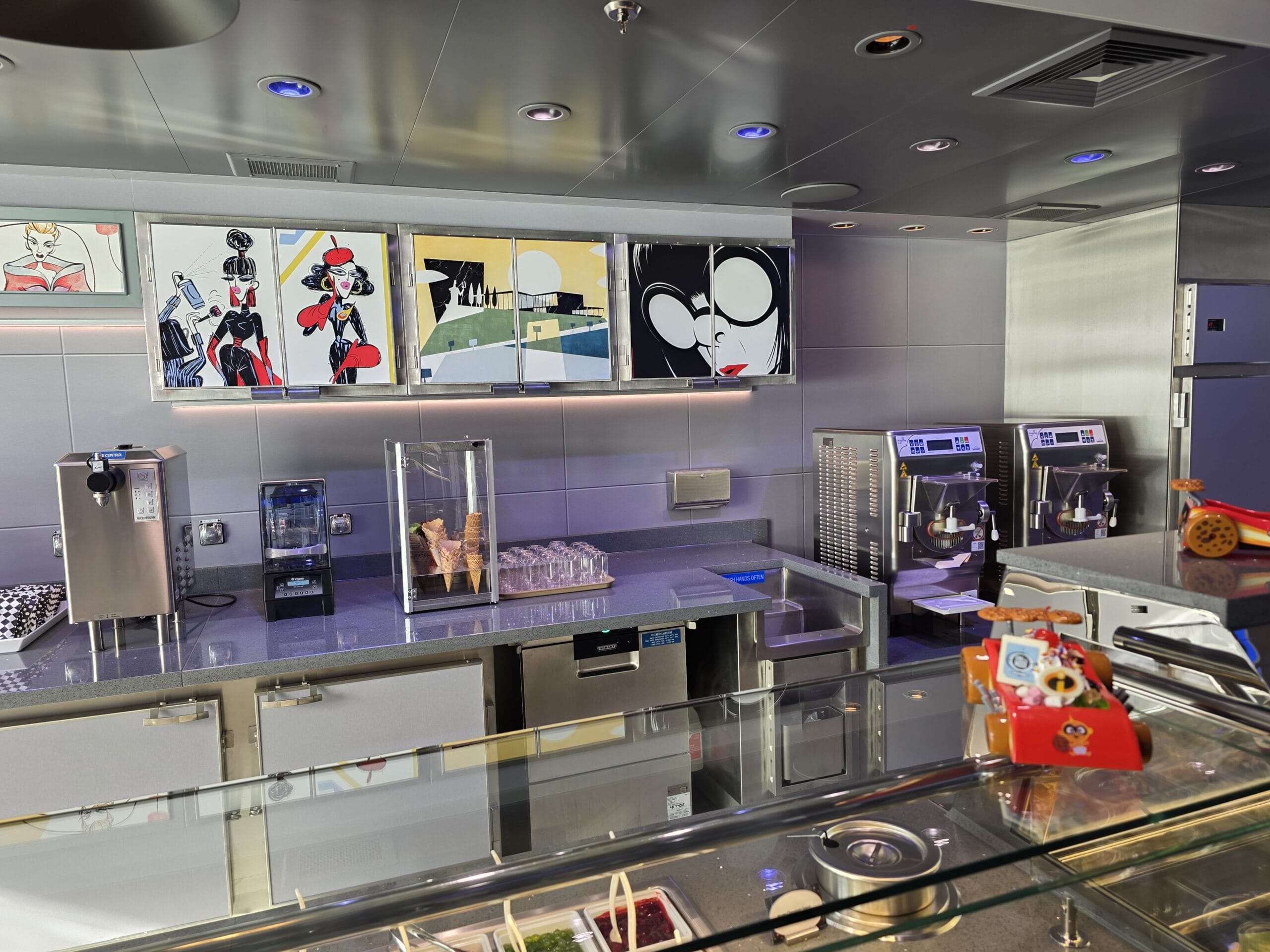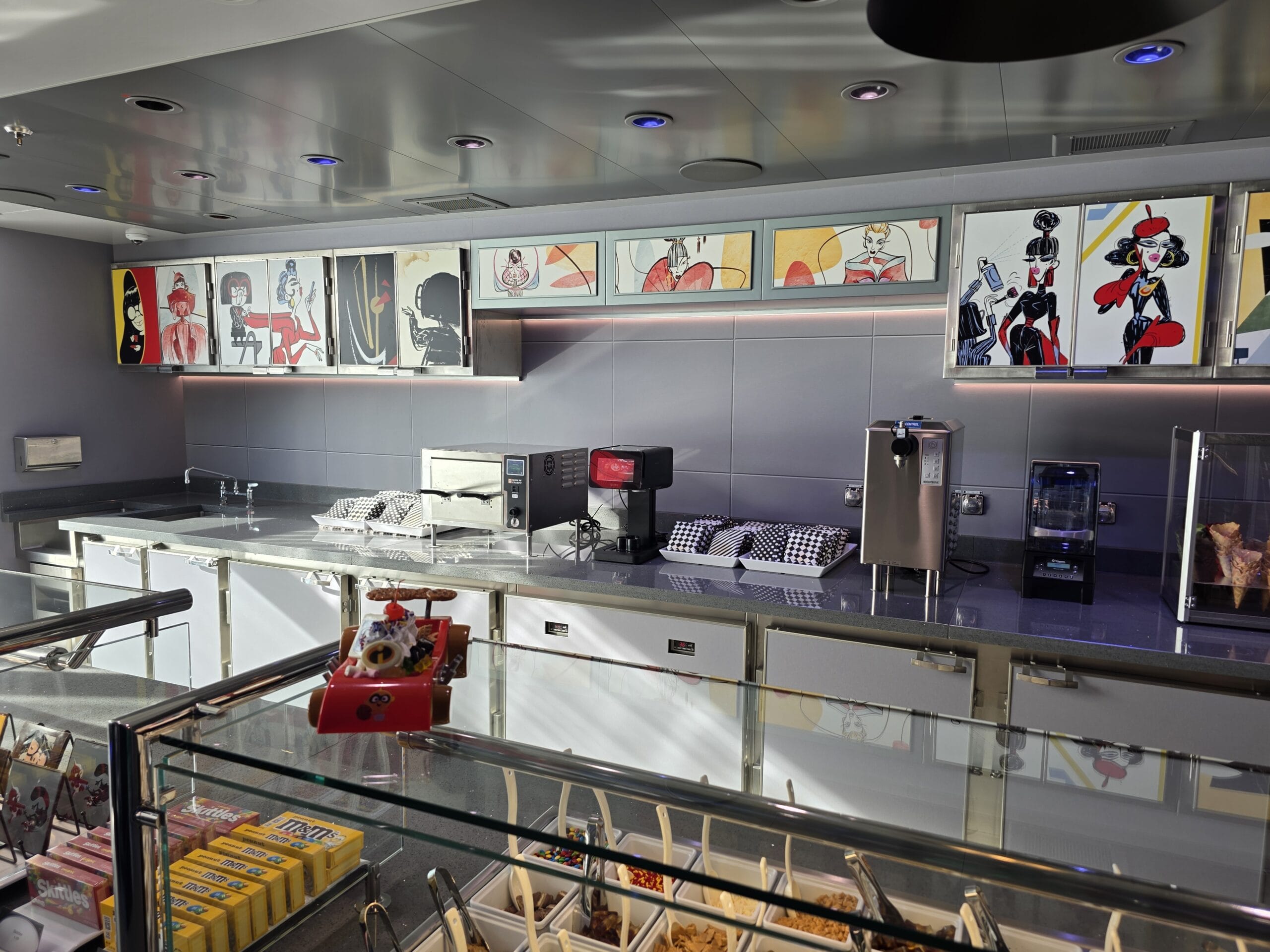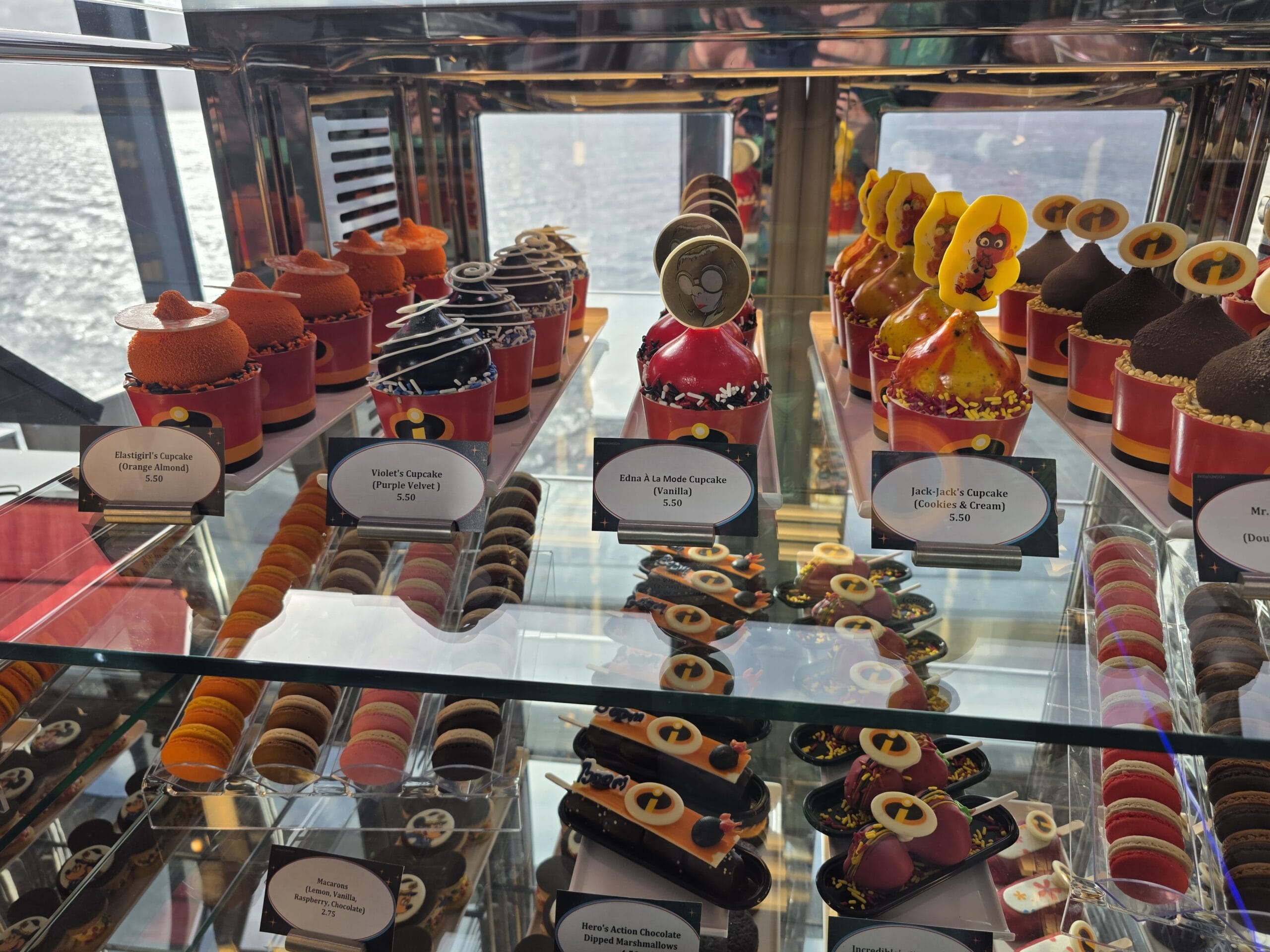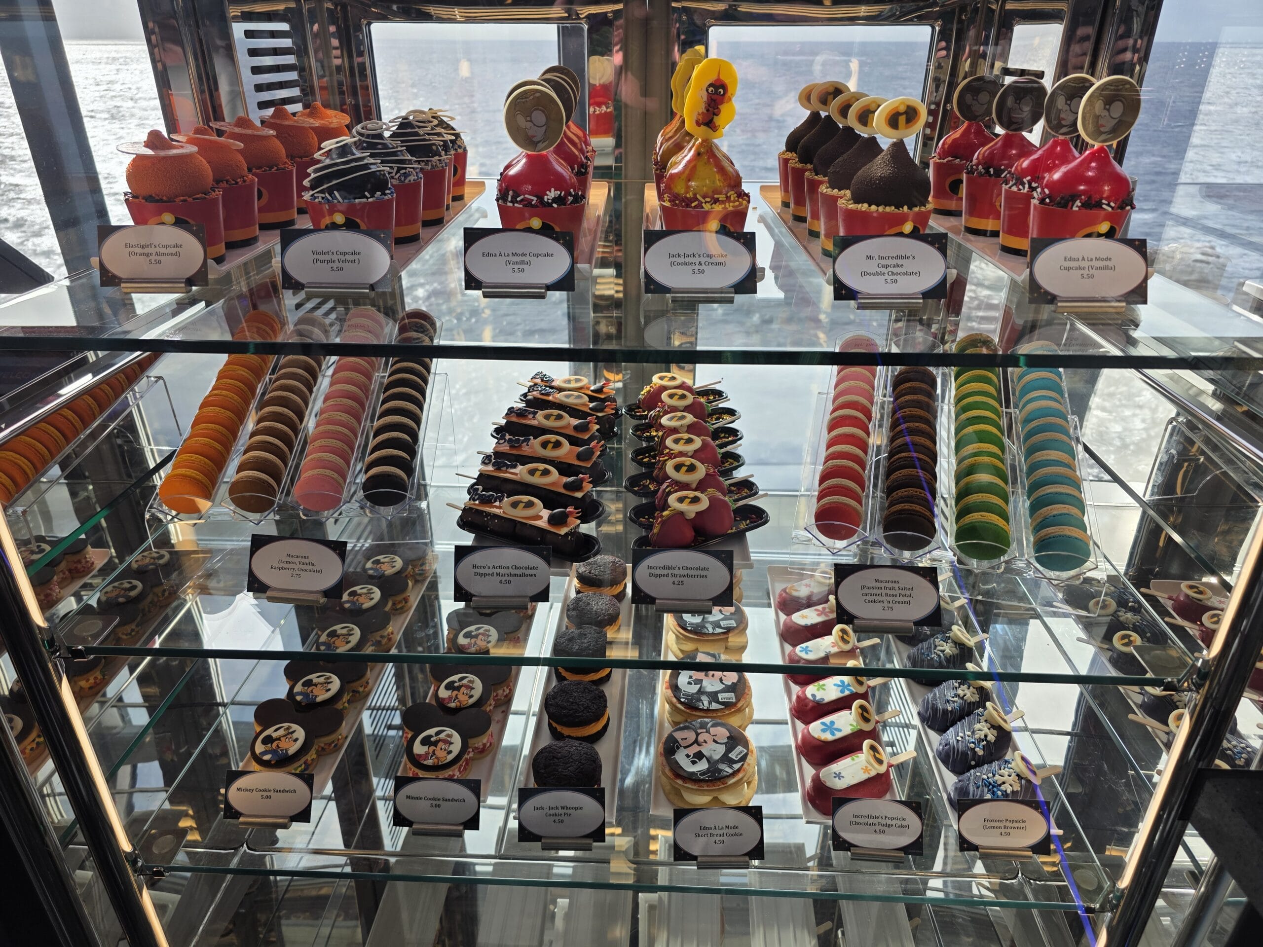Satisfy your sweet tooth with the Incredibles-inspired Edna À La Mode Sweets on the new Disney Destiny, located on Deck 11. It offers ice cream, cookies, and more treats.