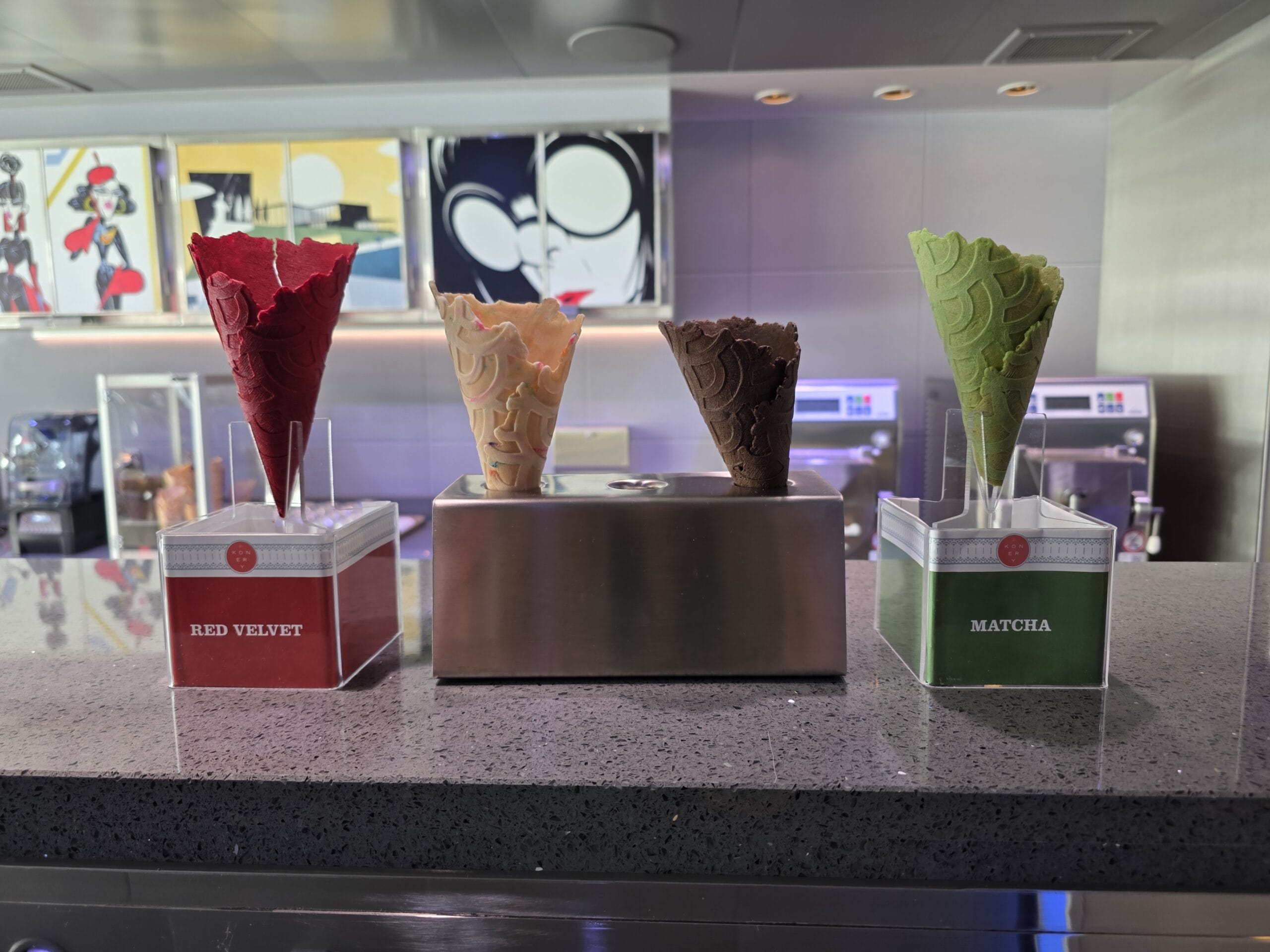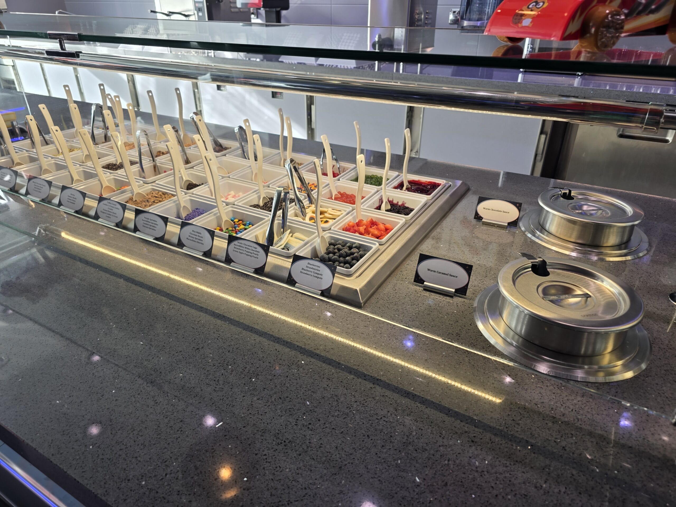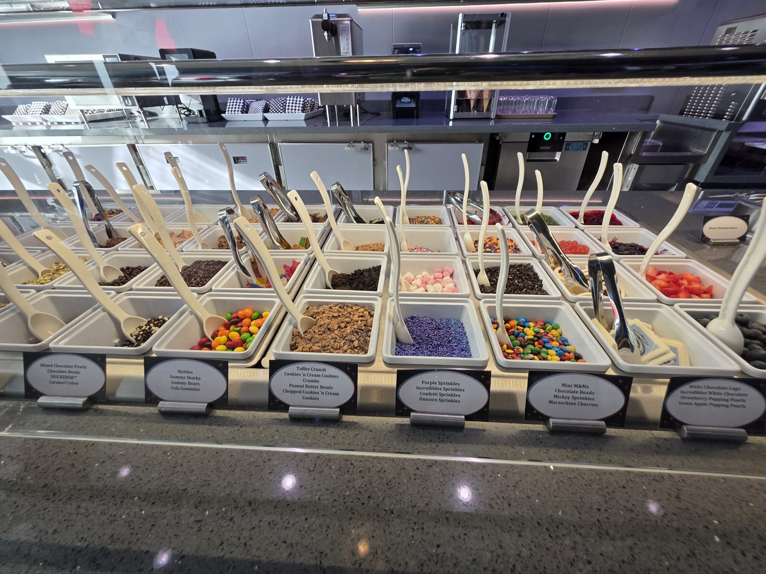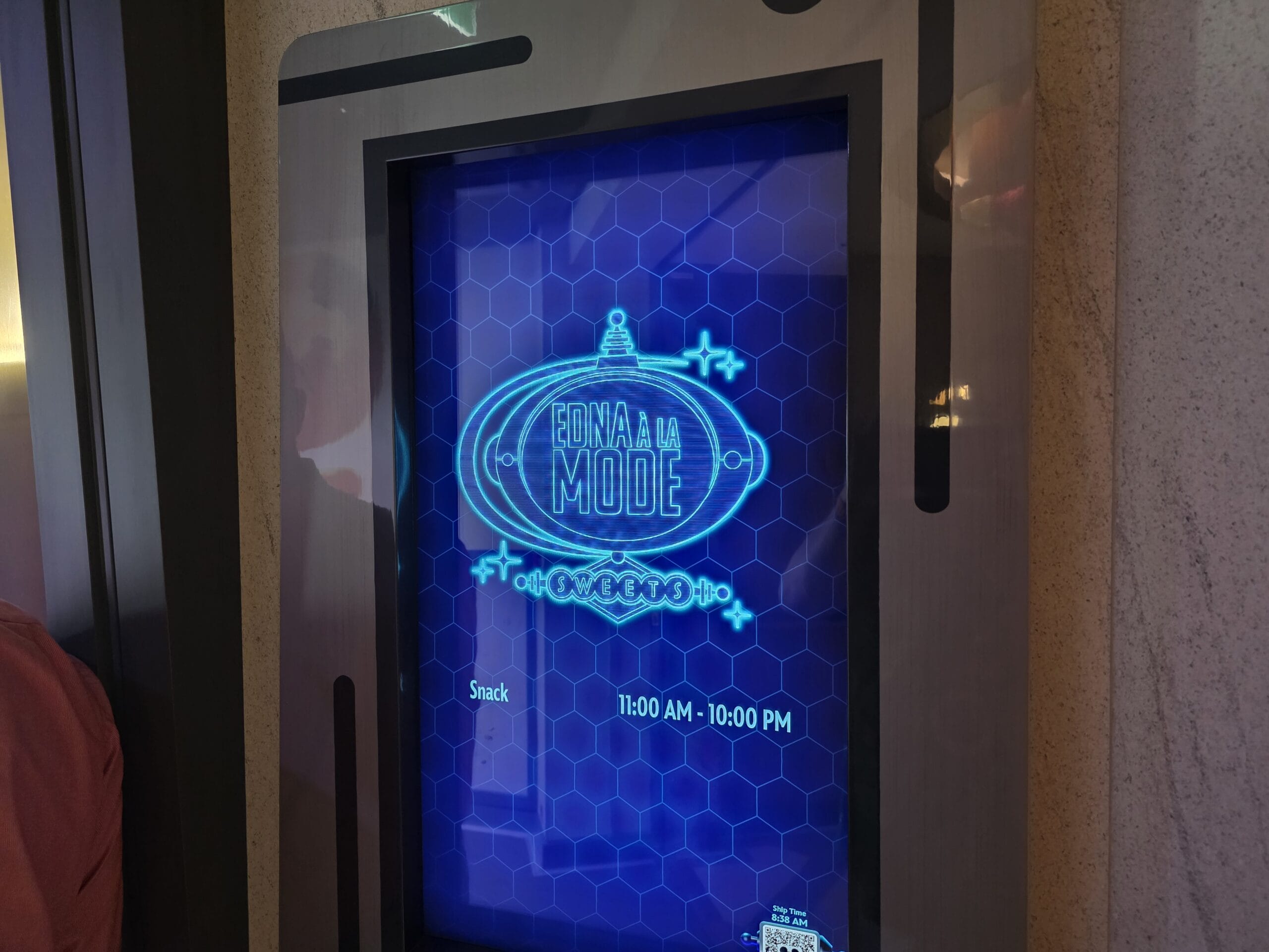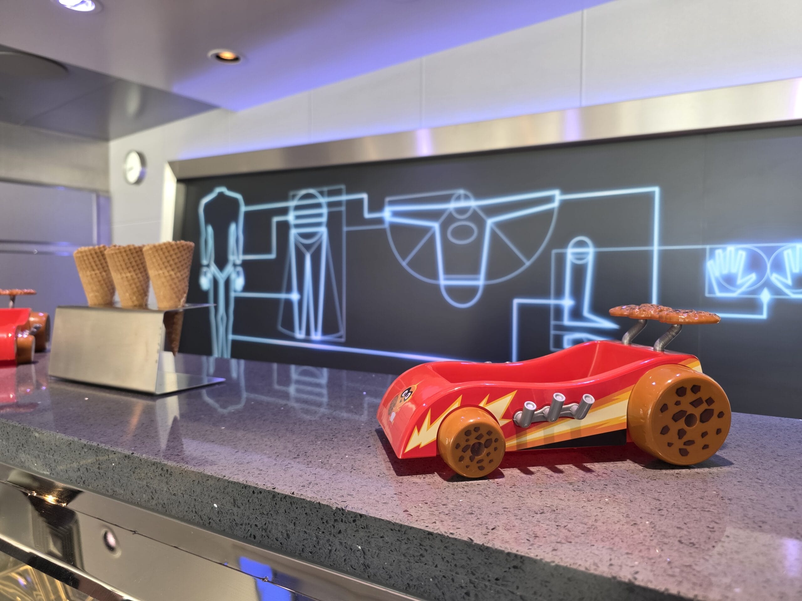 Satisfy your sweet tooth with the Incredibles-inspired Edna À La Mode Sweets on the new Disney Destiny, located on Deck 11. It offers ice cream, cookies, and more treats.