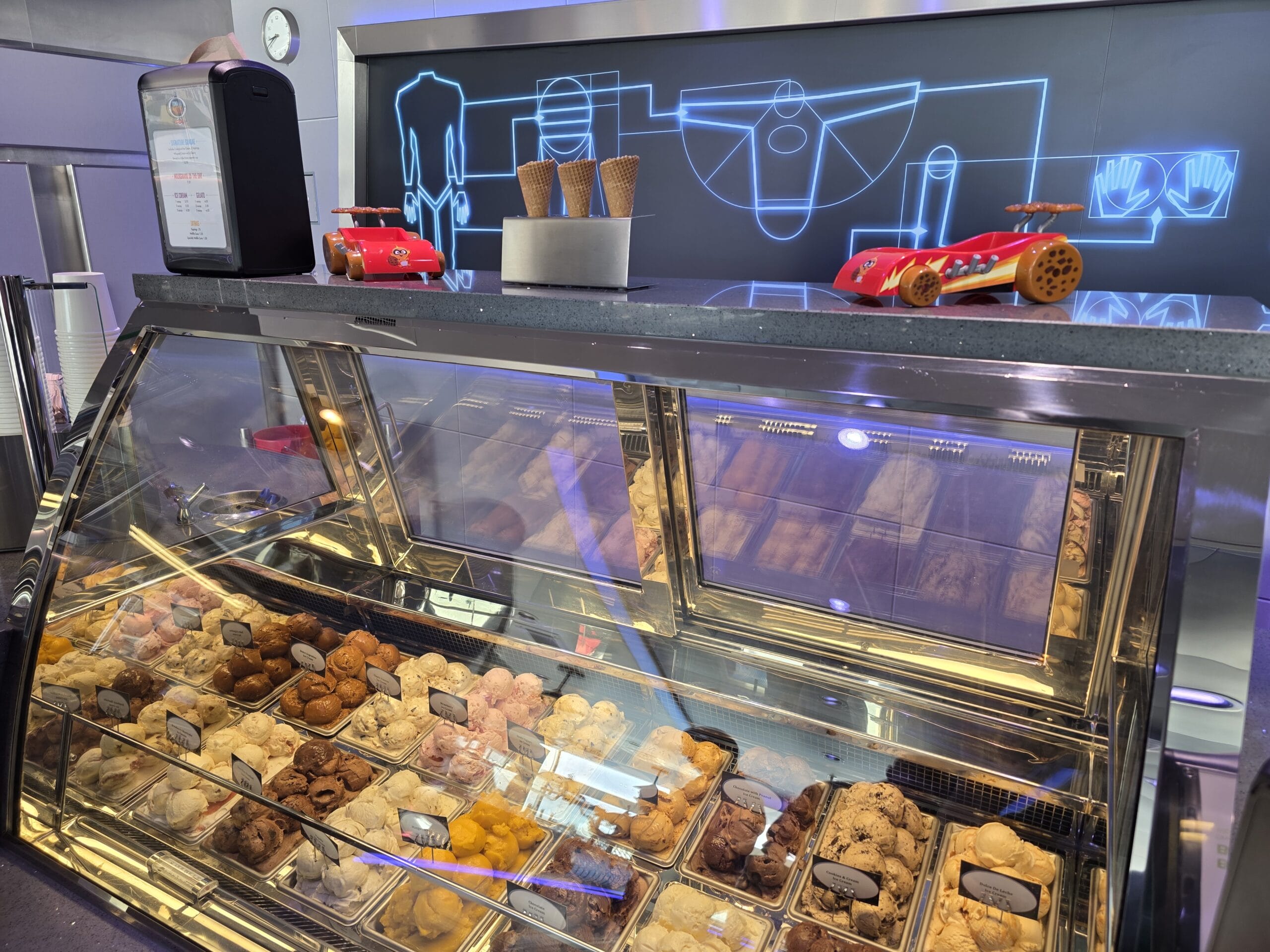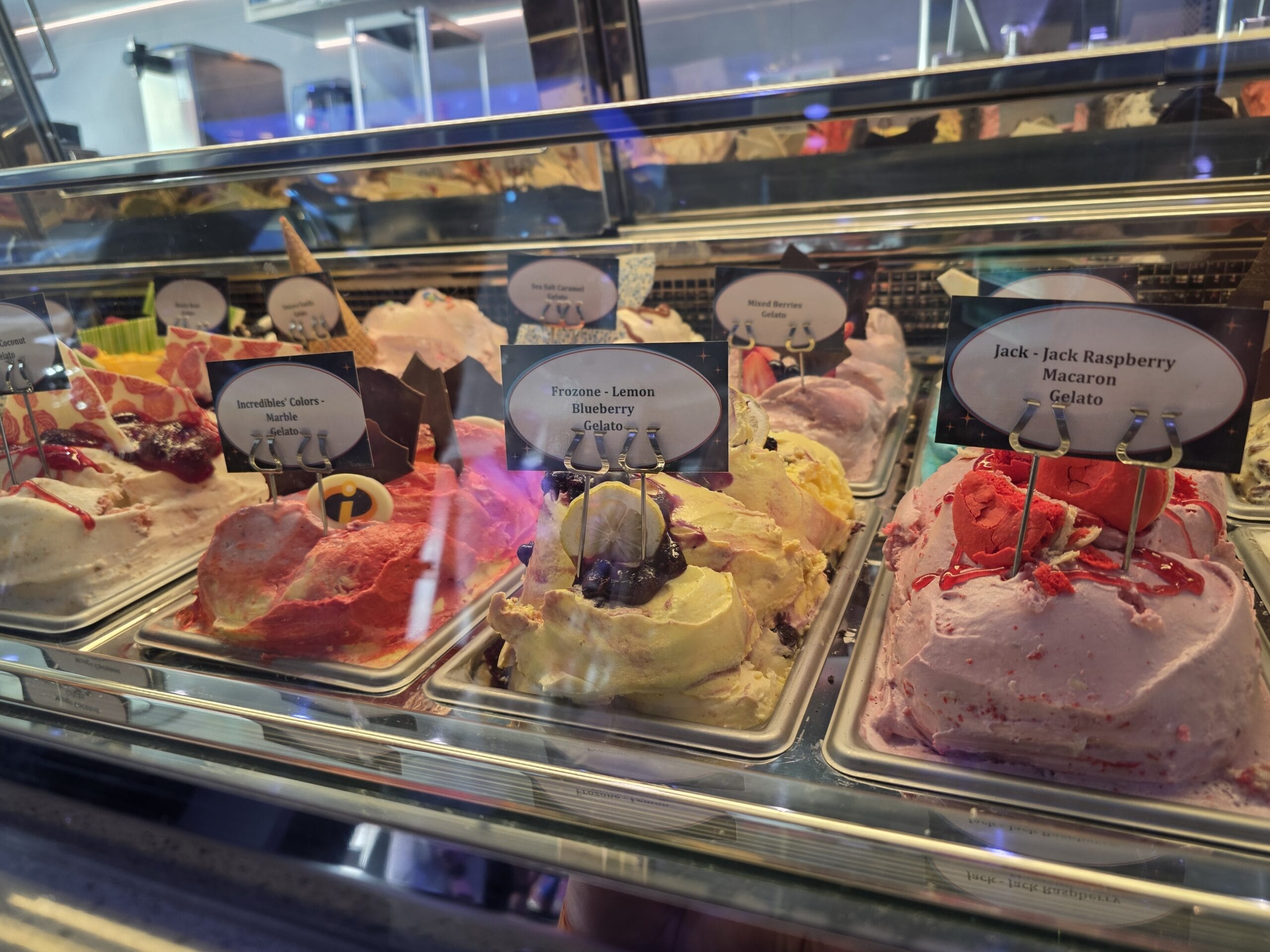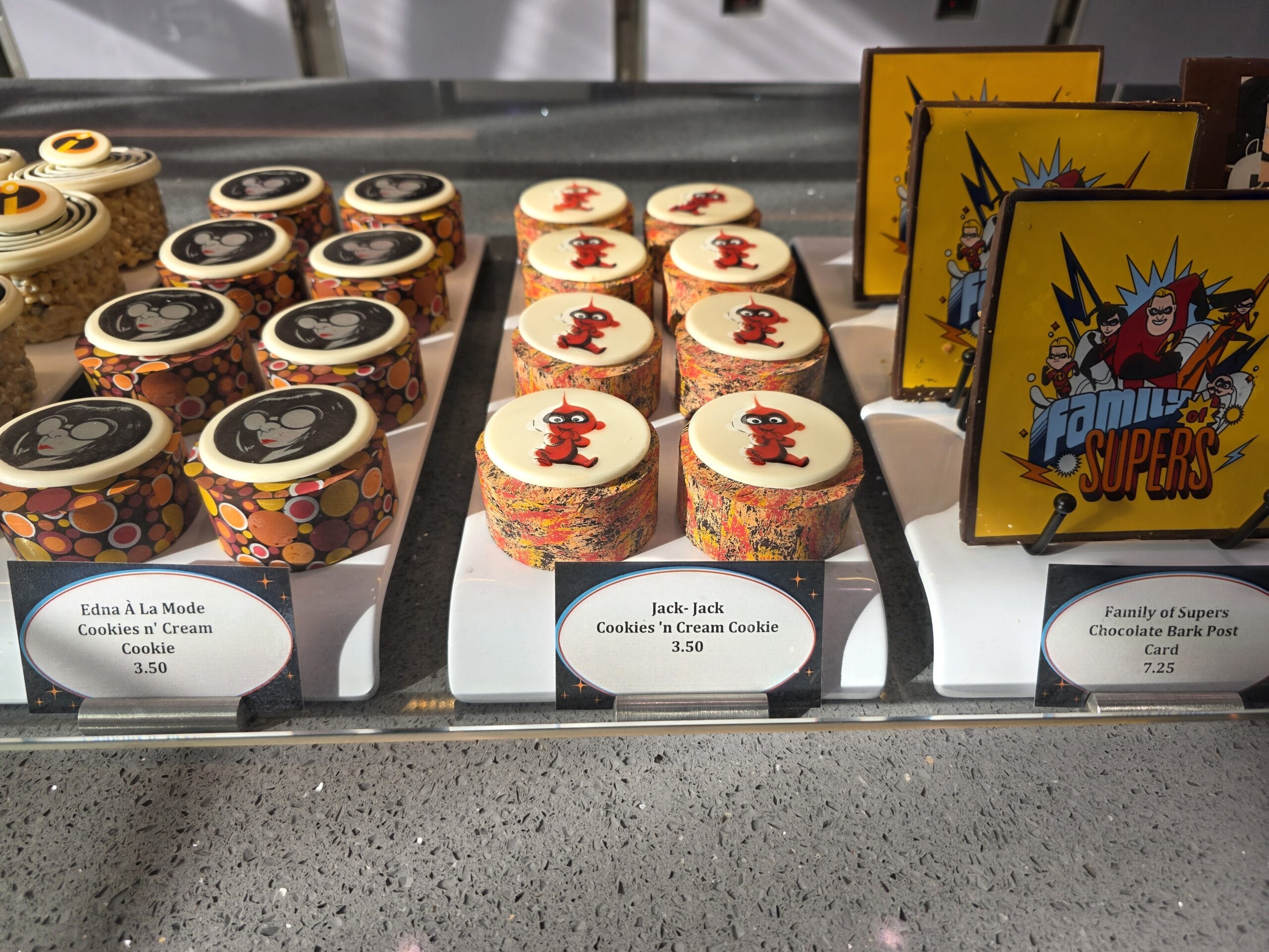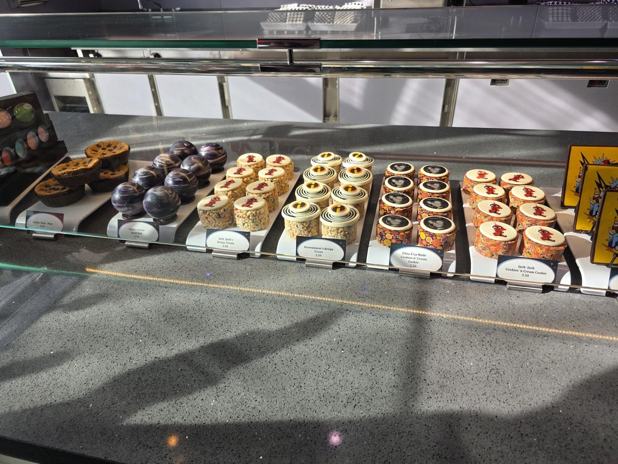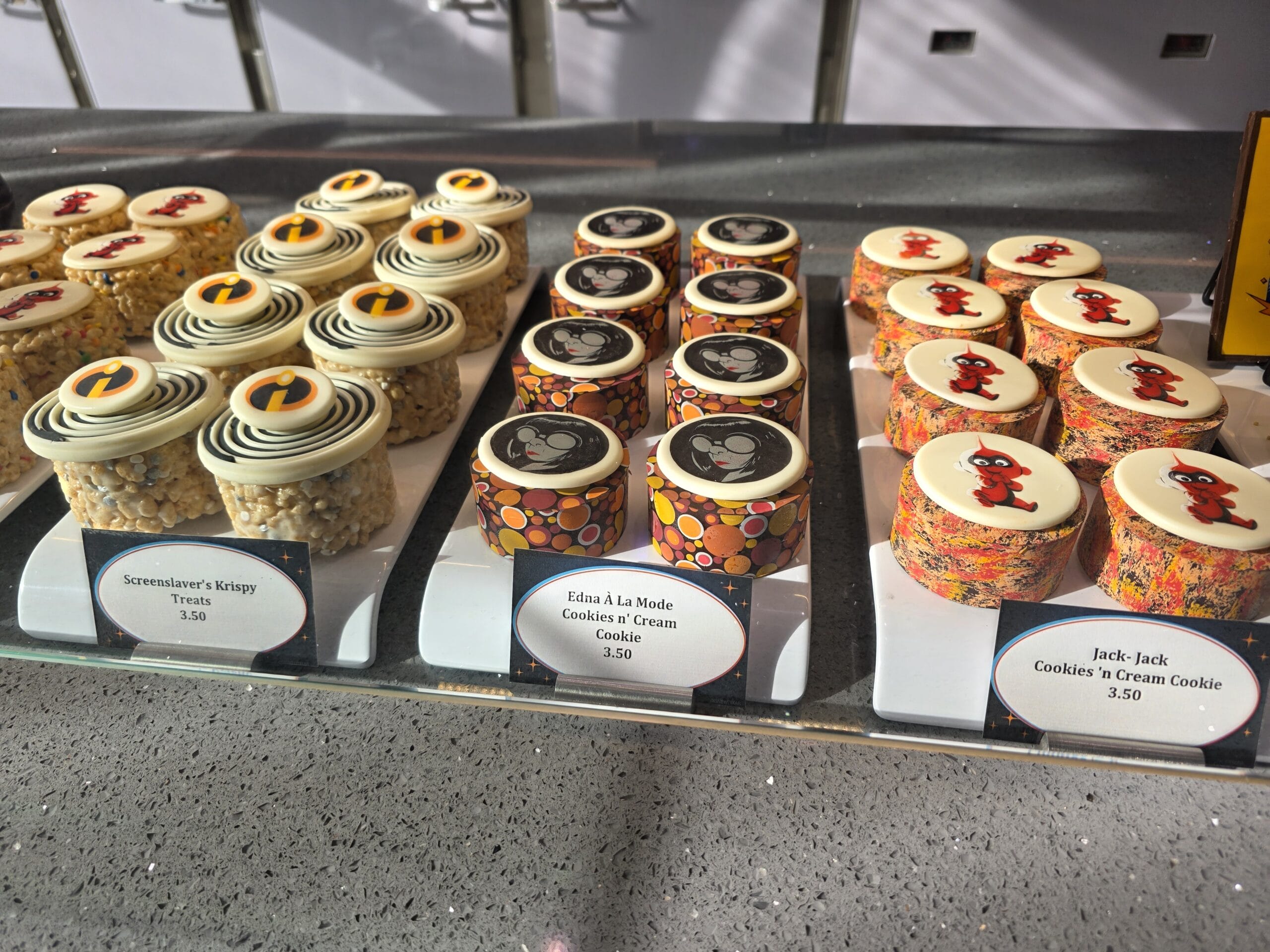A sign outside the door welcomes you into the shop. Edna À La Mode Sweets is on Deck 11 near Marceline Market. It is inspired after Edna Mode’s lab and the Auntie Edna short film.