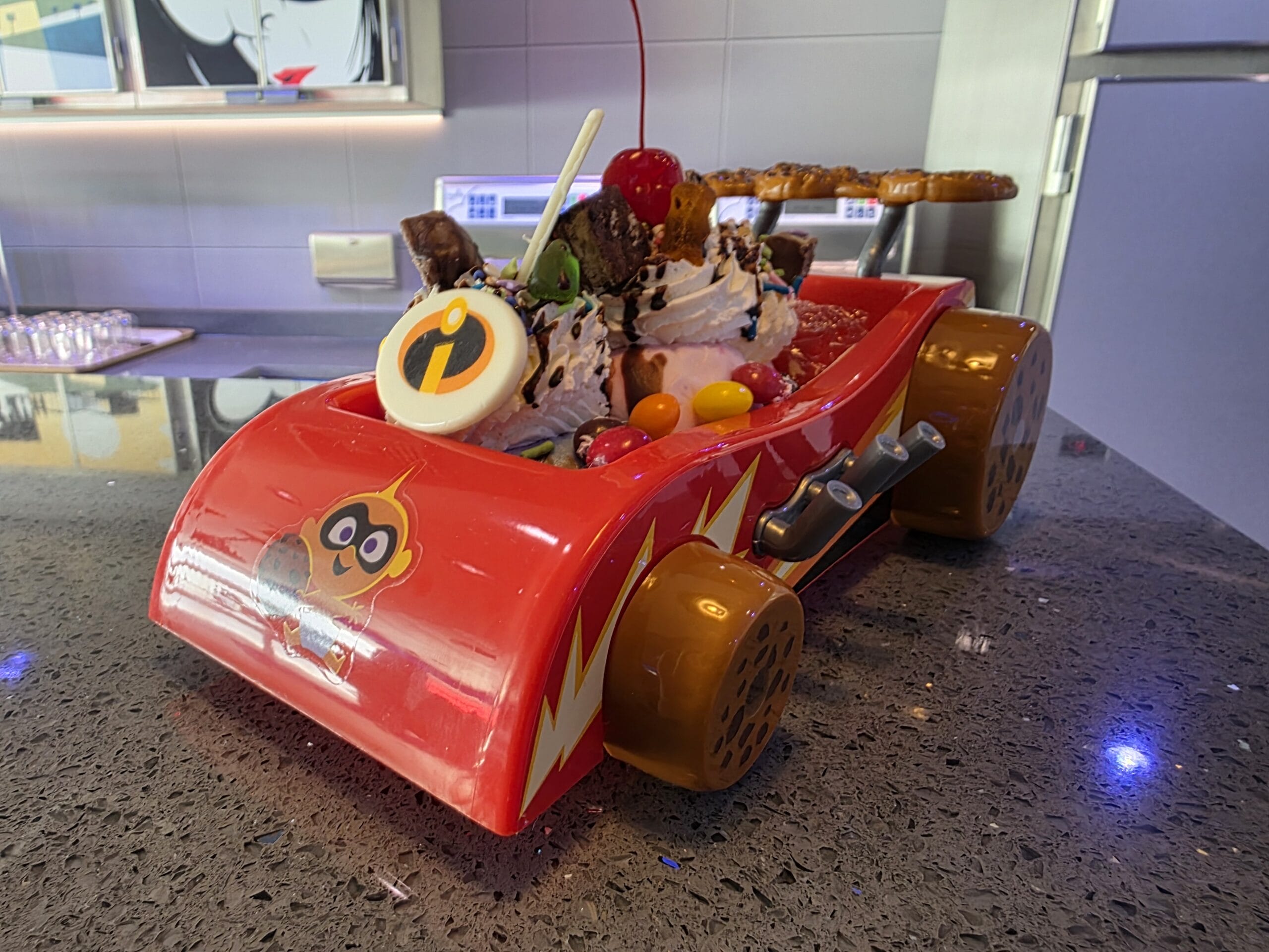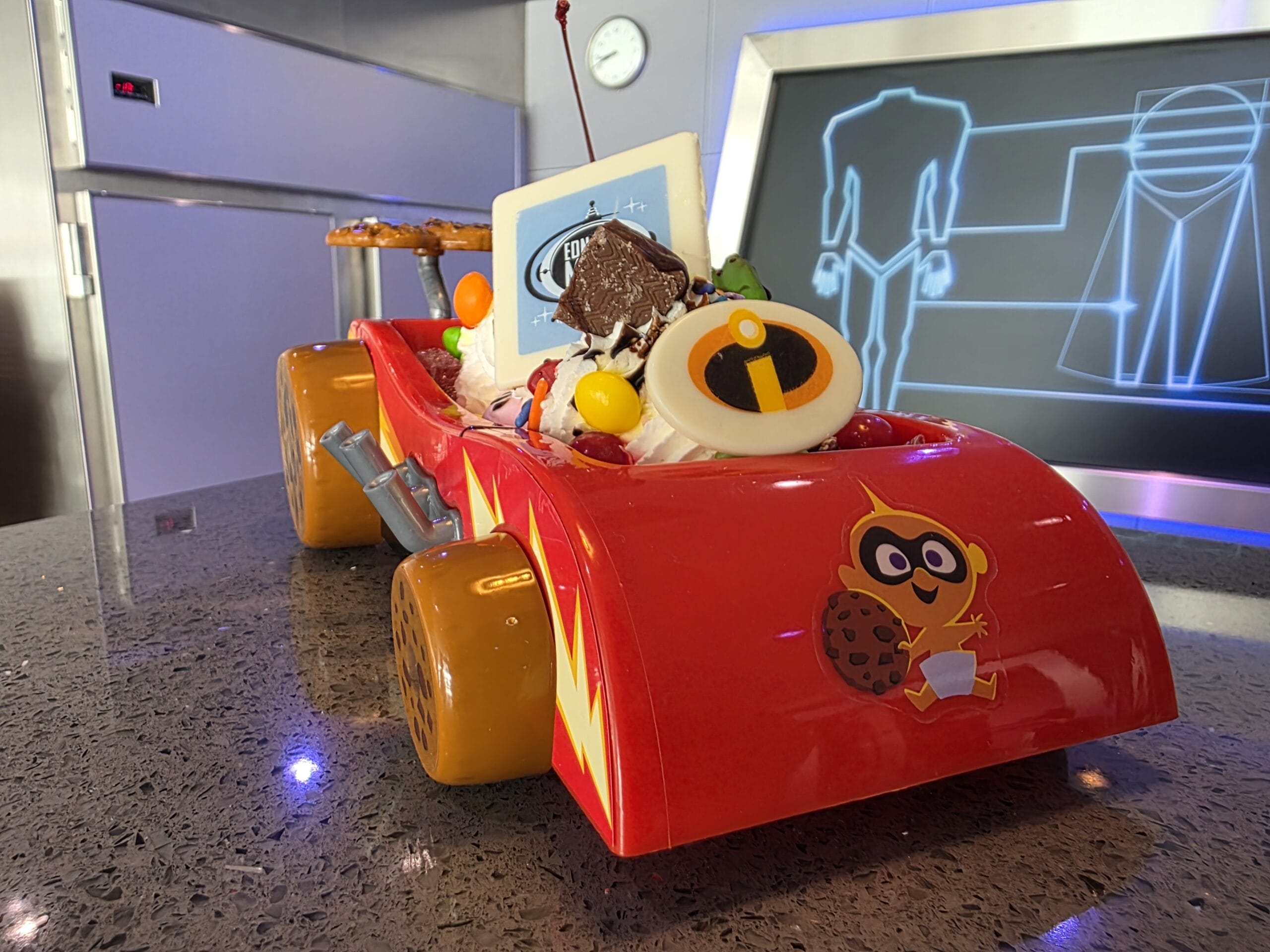 There is an ice cream novelty bowl, which features Jack-Jack on the front of the red car.