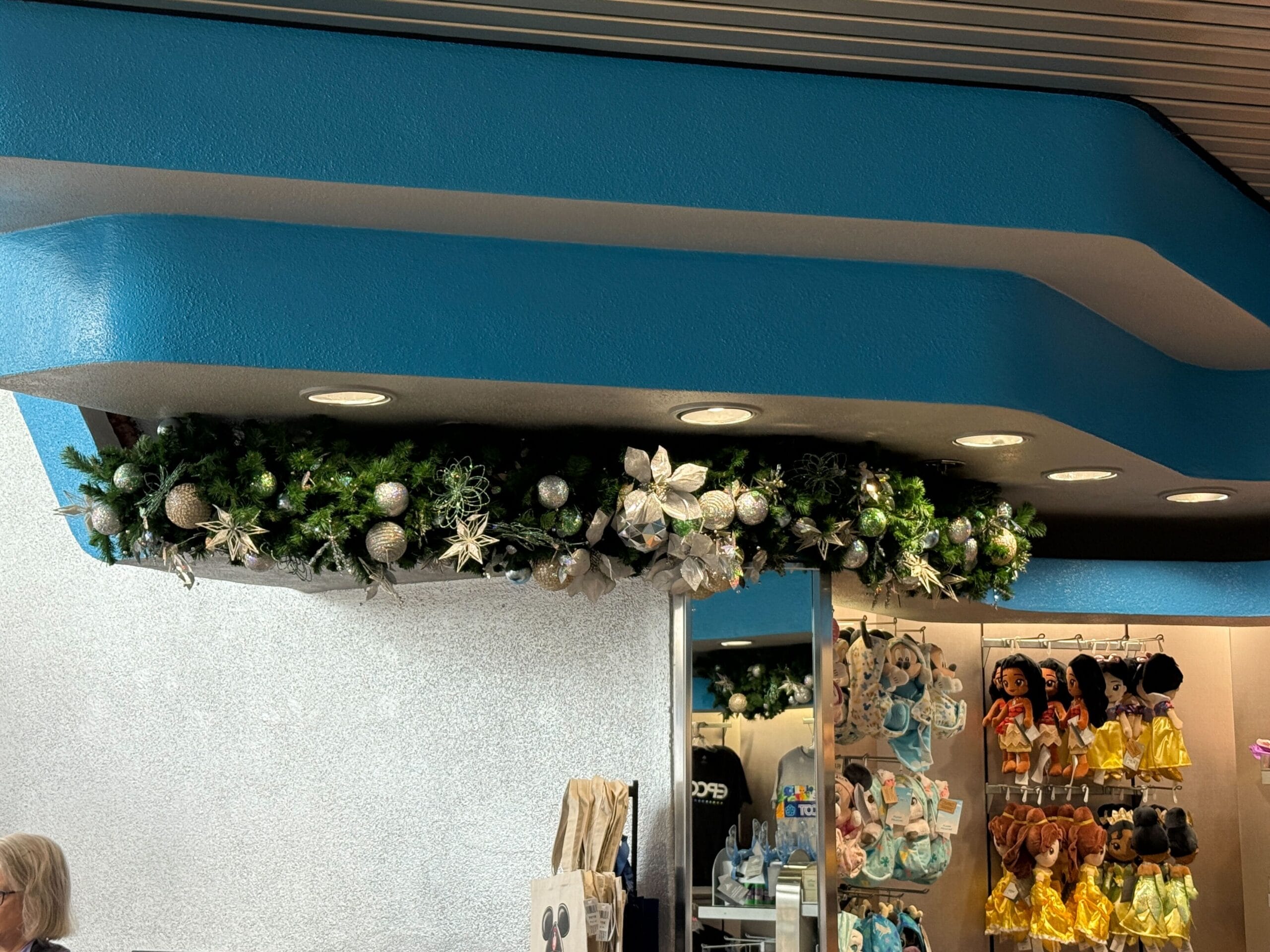 Even Gateway Gifts is getting into the spirit of the season with fanciful garlands. There are several heavily decorated garlands around the store. They’ve got lights, metallic baubles, stars, and white poinsettias.