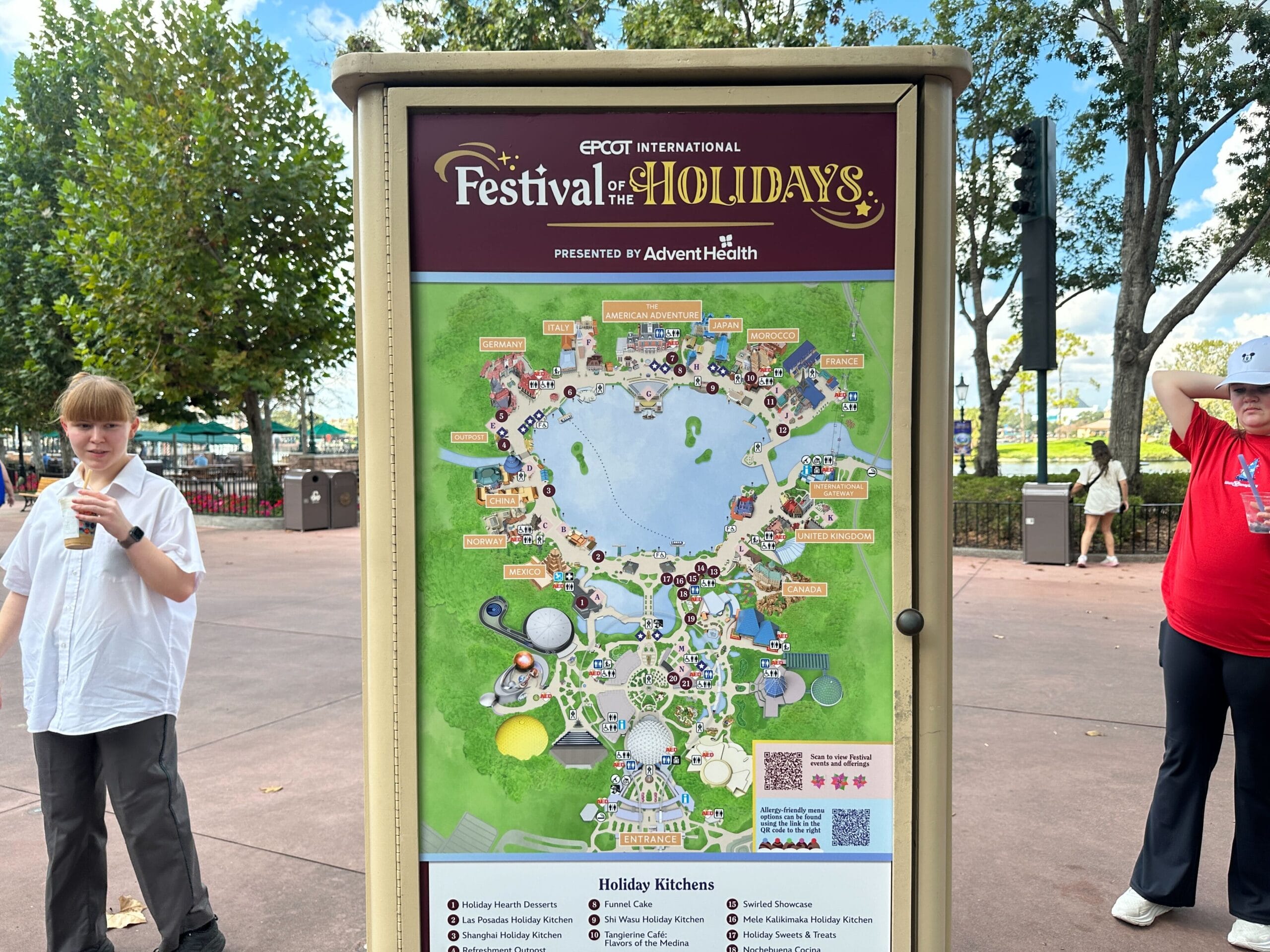 The 2025 EPCOT International Festival of the Holidays map is now on display in the park. We also got a glimpse of the festival’s passport.