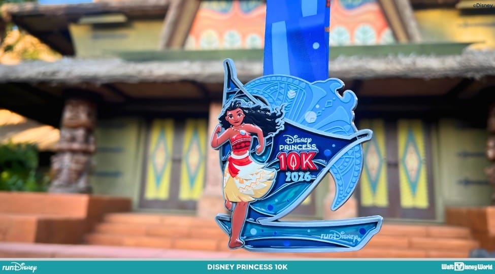 The Disney Princess 10K is inspired by Moana and the medal features the princess in front of her boat and Gramma Tala’s manta ray spirit.