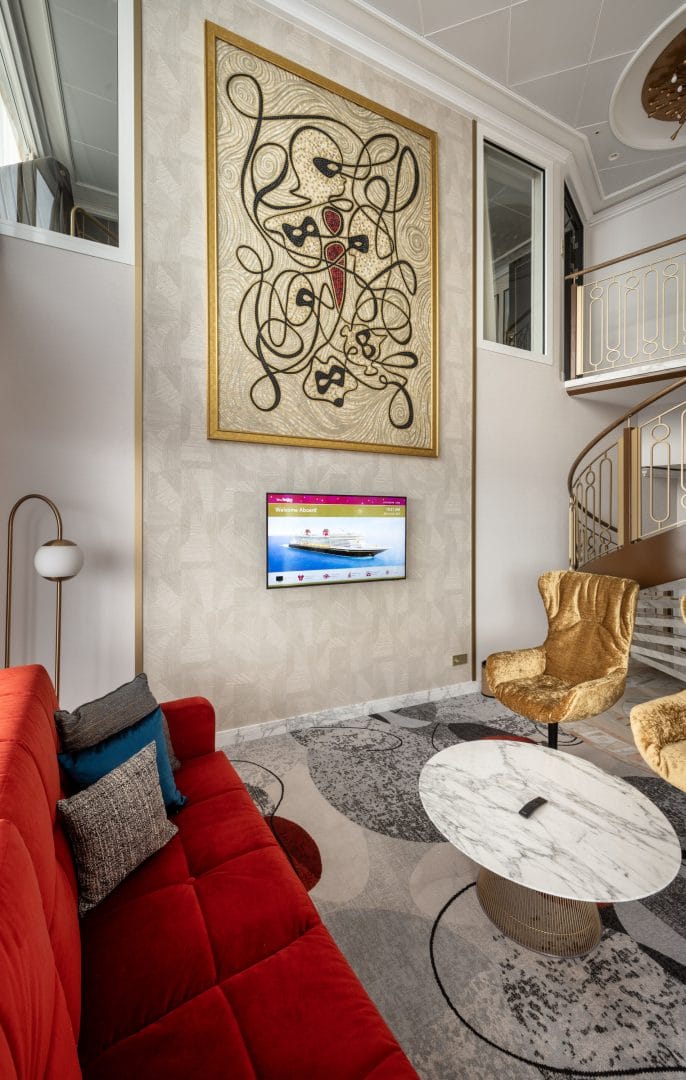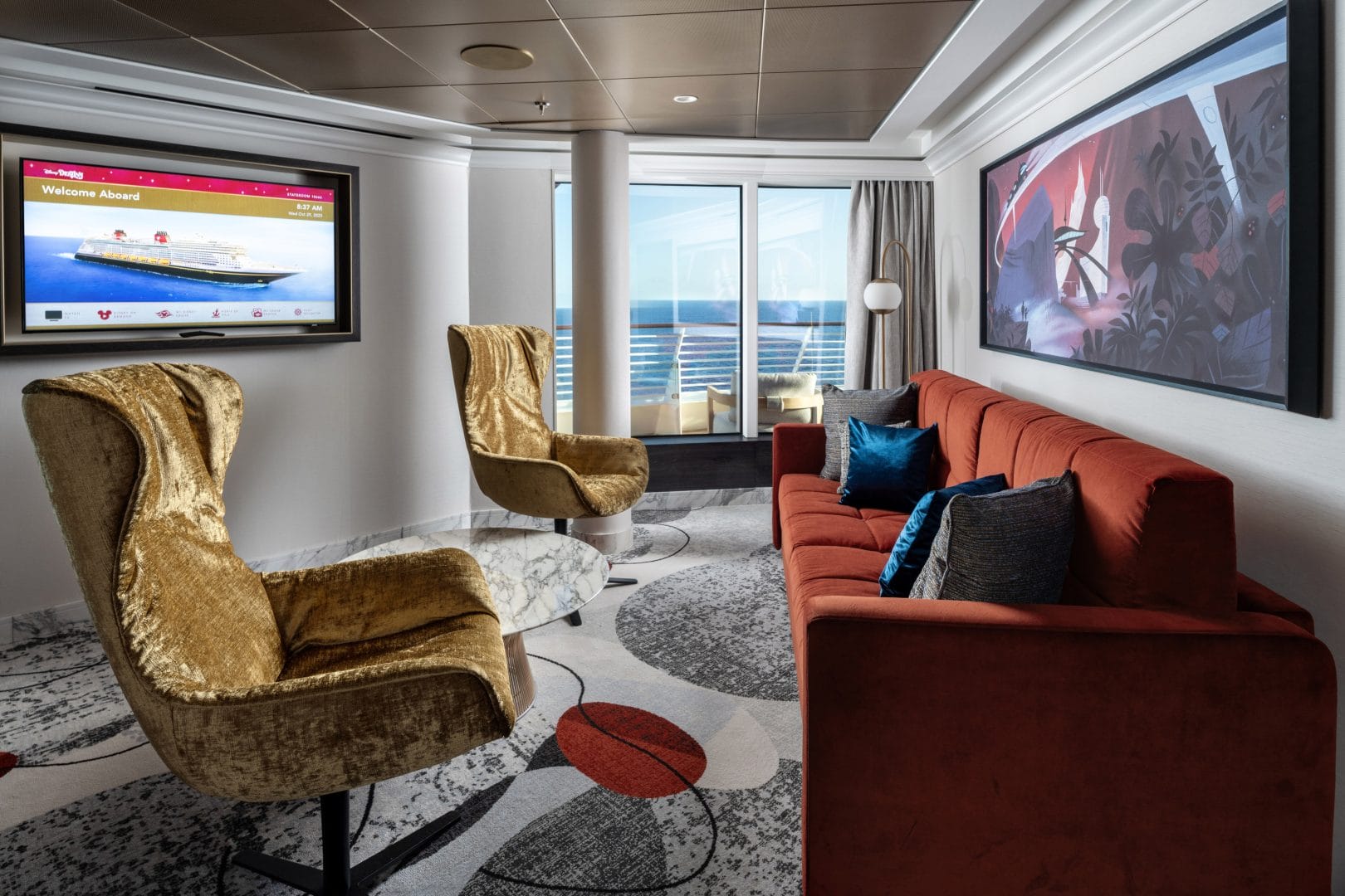 The concierge-level staterooms mix Fantasia-inspired design with artwork of the Destiny’s featured Heroes & Villains.