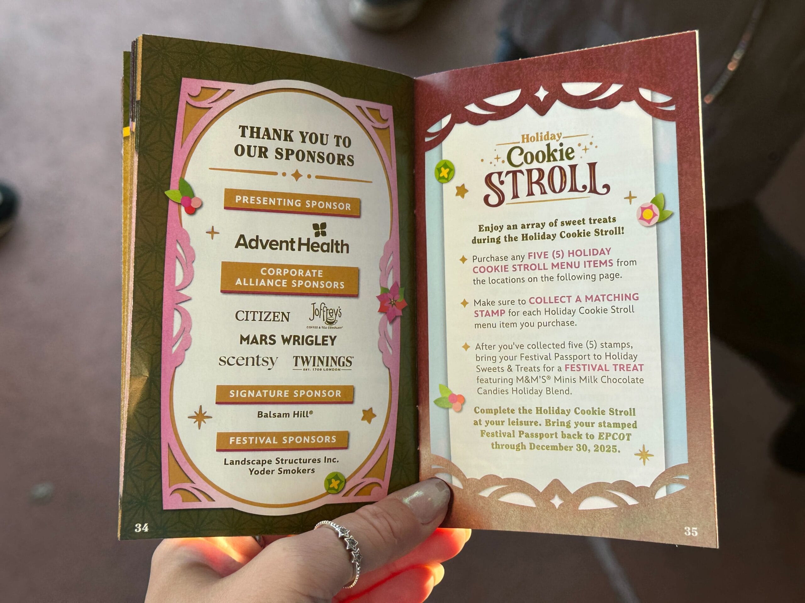 The back of the book is dedicated to the Holiday Cookie Stroll, a scavenger hunt of cookies available throughout the festival. Guests who purchase five cookies and get their corresponding stamps can redeem their passport for a special treat featuring M&M’s Minis Milk Chocolate Candies Holiday Blend at Holiday Sweets & Treats.