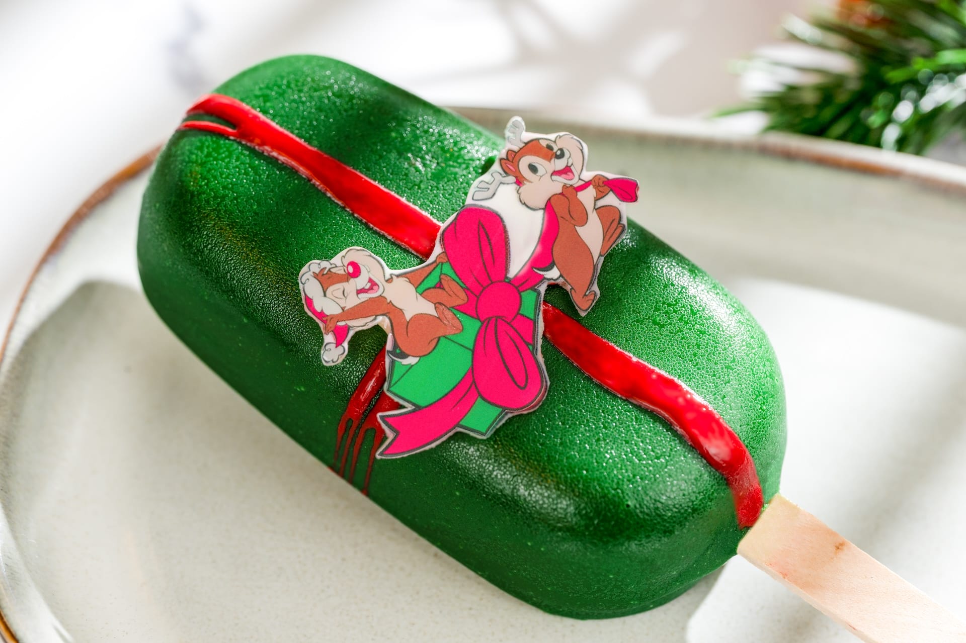 - Mickey Gingerbread Cone: Gingerbread cone with chocolate soft-serve, DOLE Whip pomegranate, holiday sprinkles, and gingerbread Mickey (New)