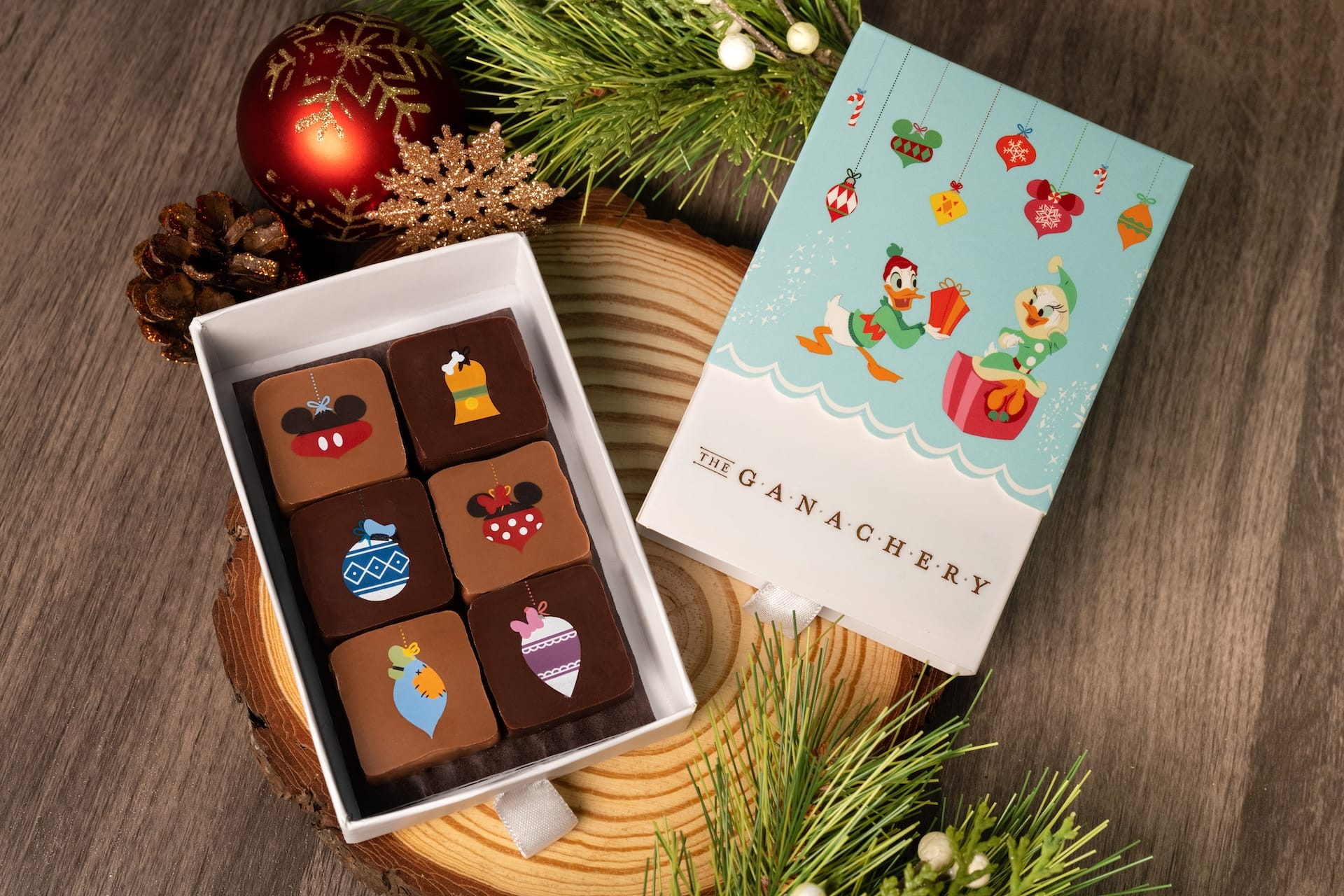 - Disney Holiday Ganache Box: Assorted ganache squares in holiday flavors