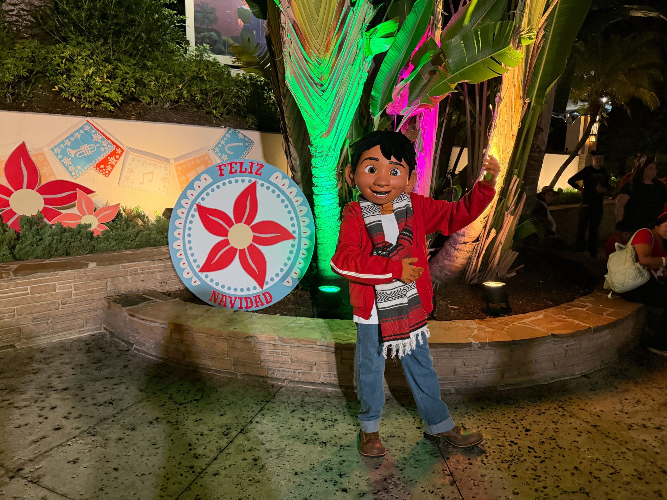 Miguel is greeting guests as part of Holiday Fiesta en la Calle near Rock ‘n Roller Coaster Starring Aerosmith.