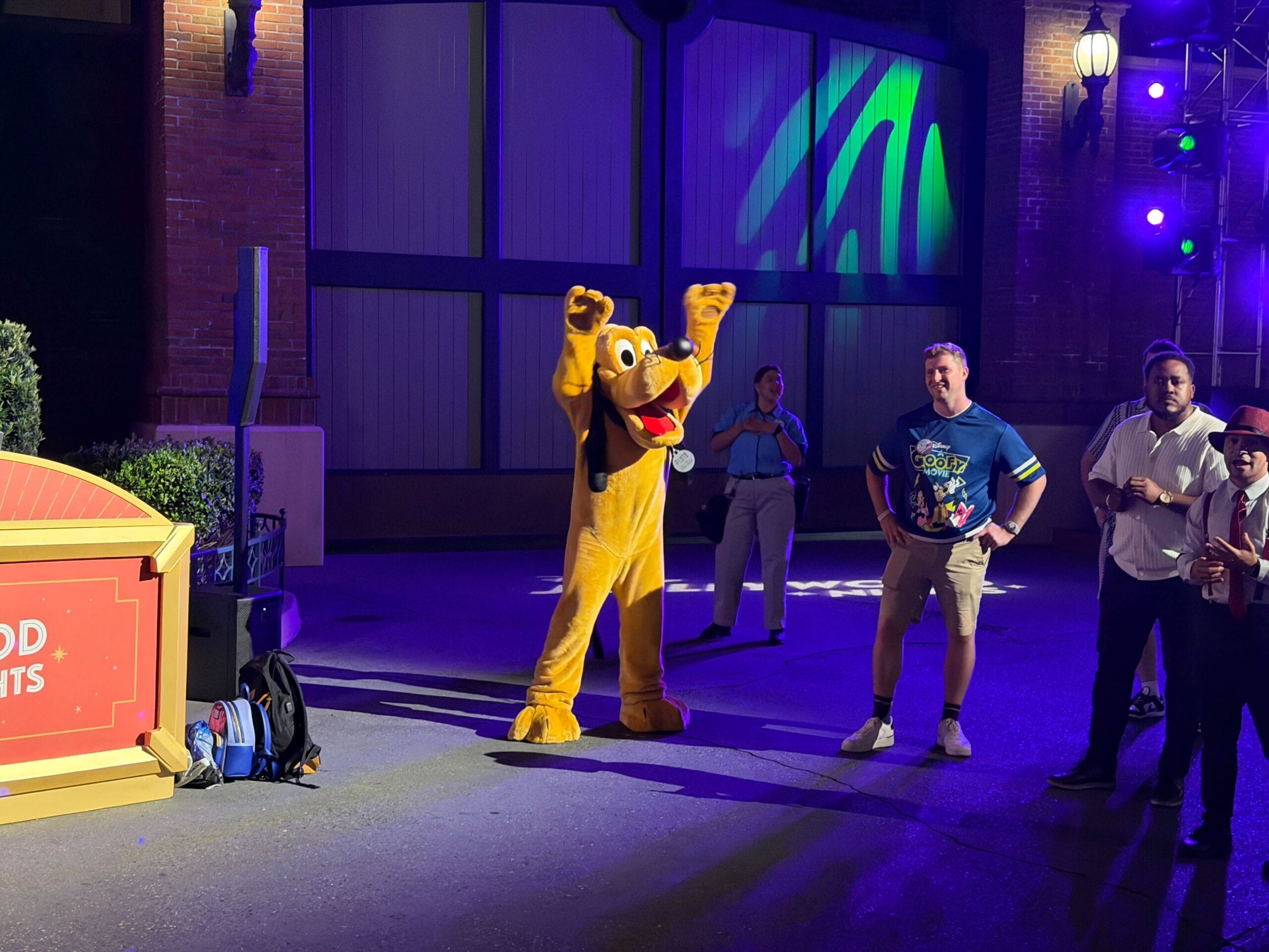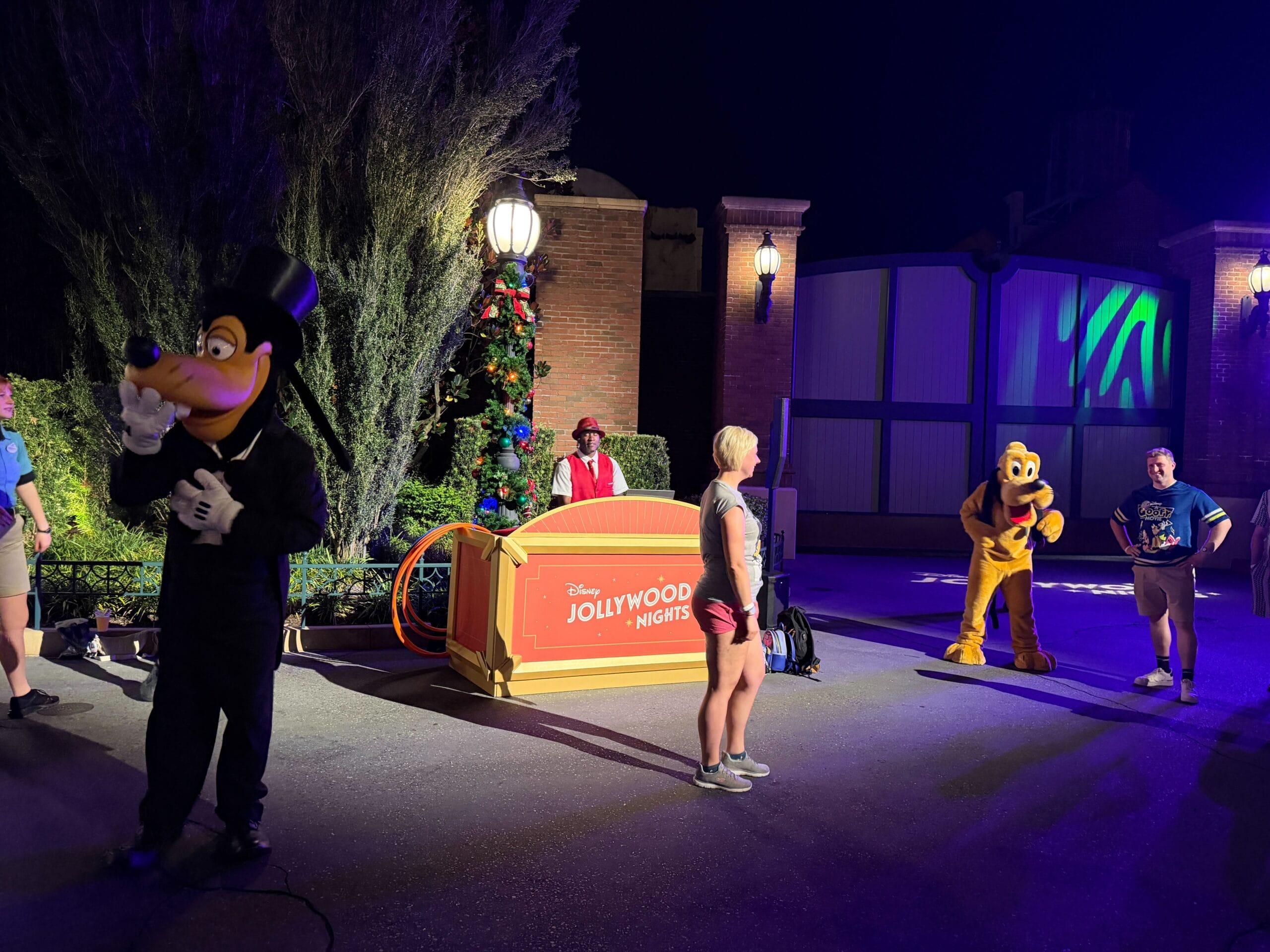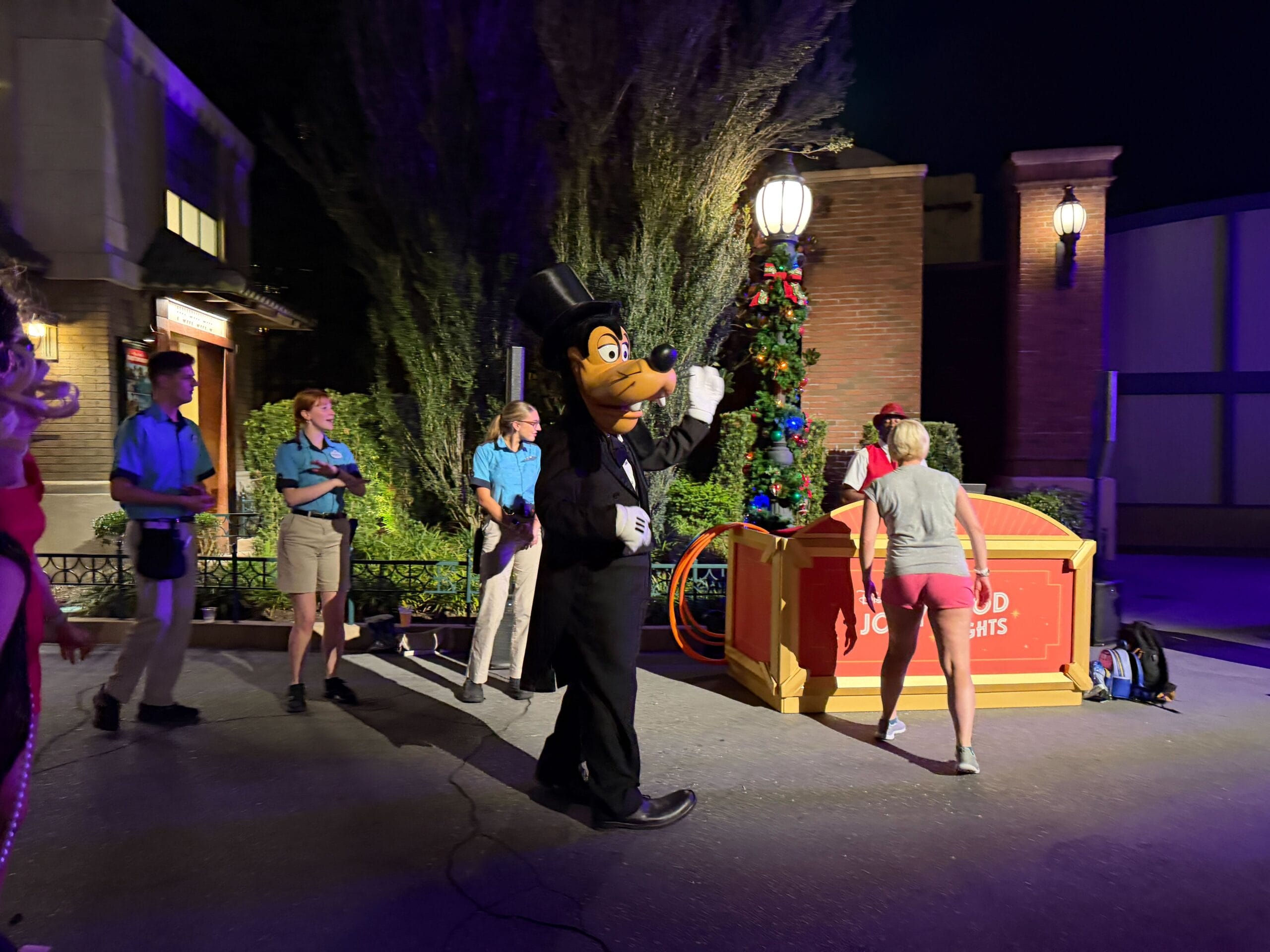 Goofy and Pluto are busting a move this year on the dance floor by the Disney Vacation Club kiosk in Animation Courtyard. Goofy is also wearing a dapper new tuxedo and top hat!