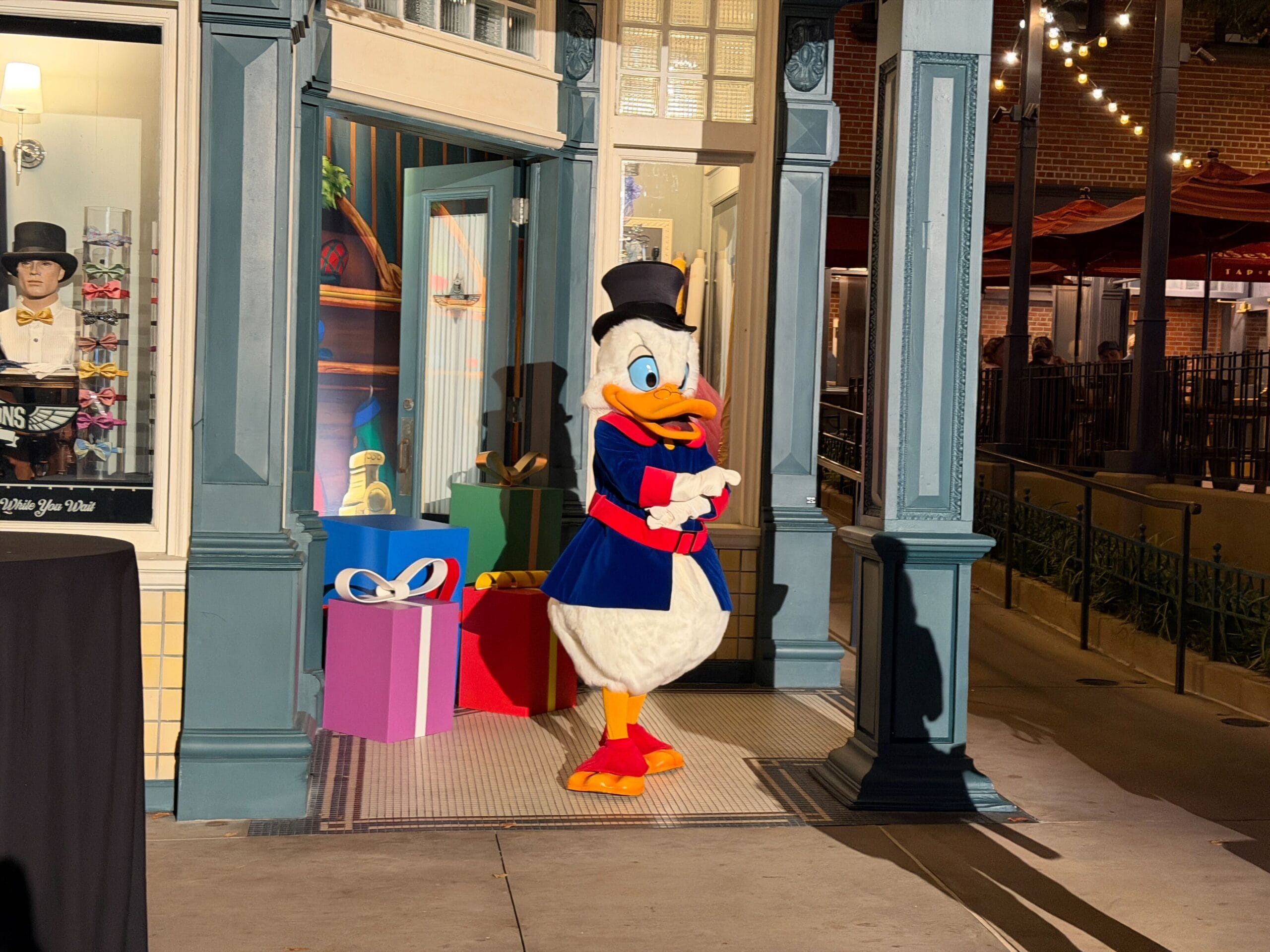 At the end of Grand Avenue, near the Star Wars: Galaxy’s Edge entrance, Scrooge McDuck alternates with Clarice the chipmunk.