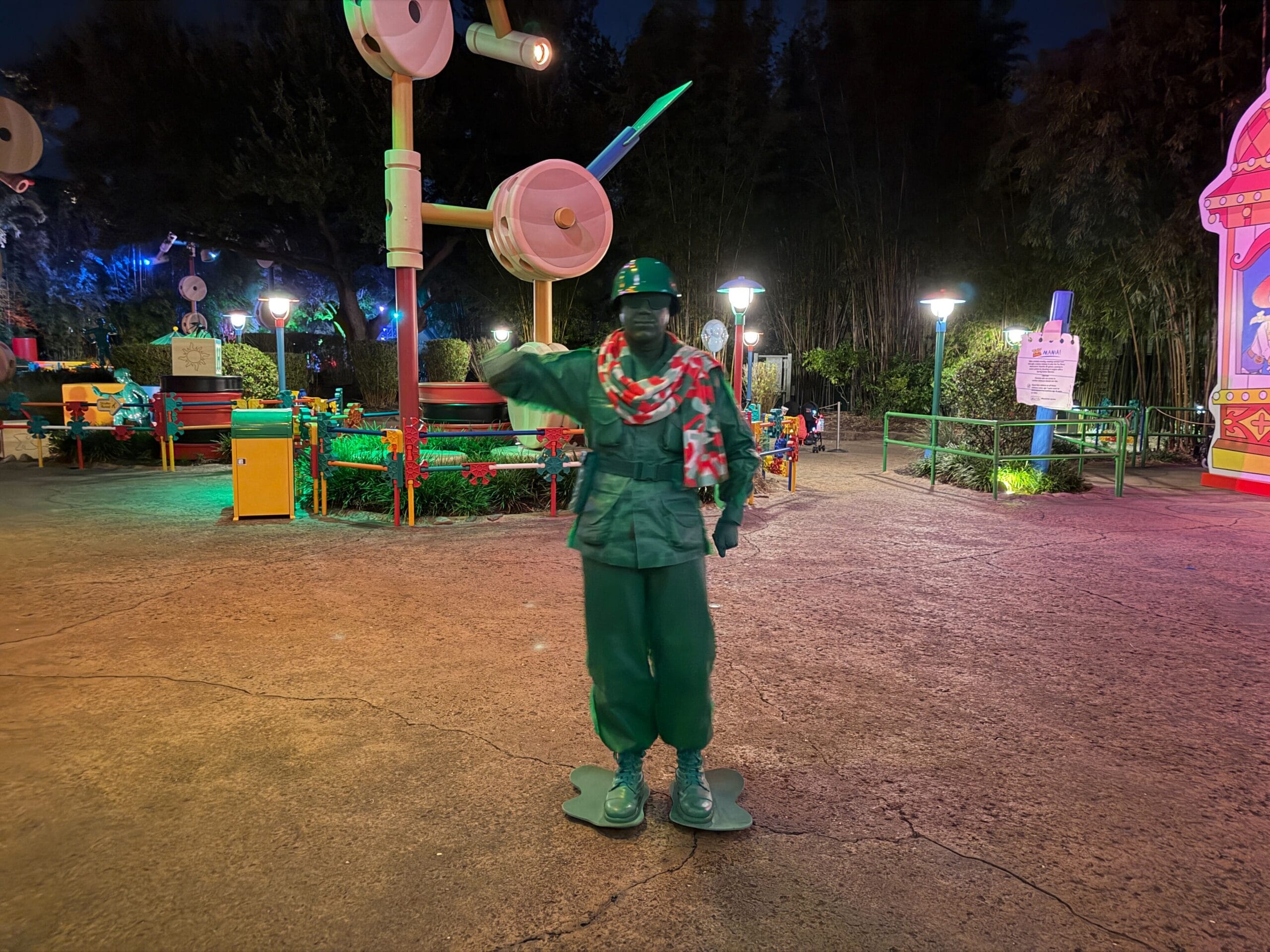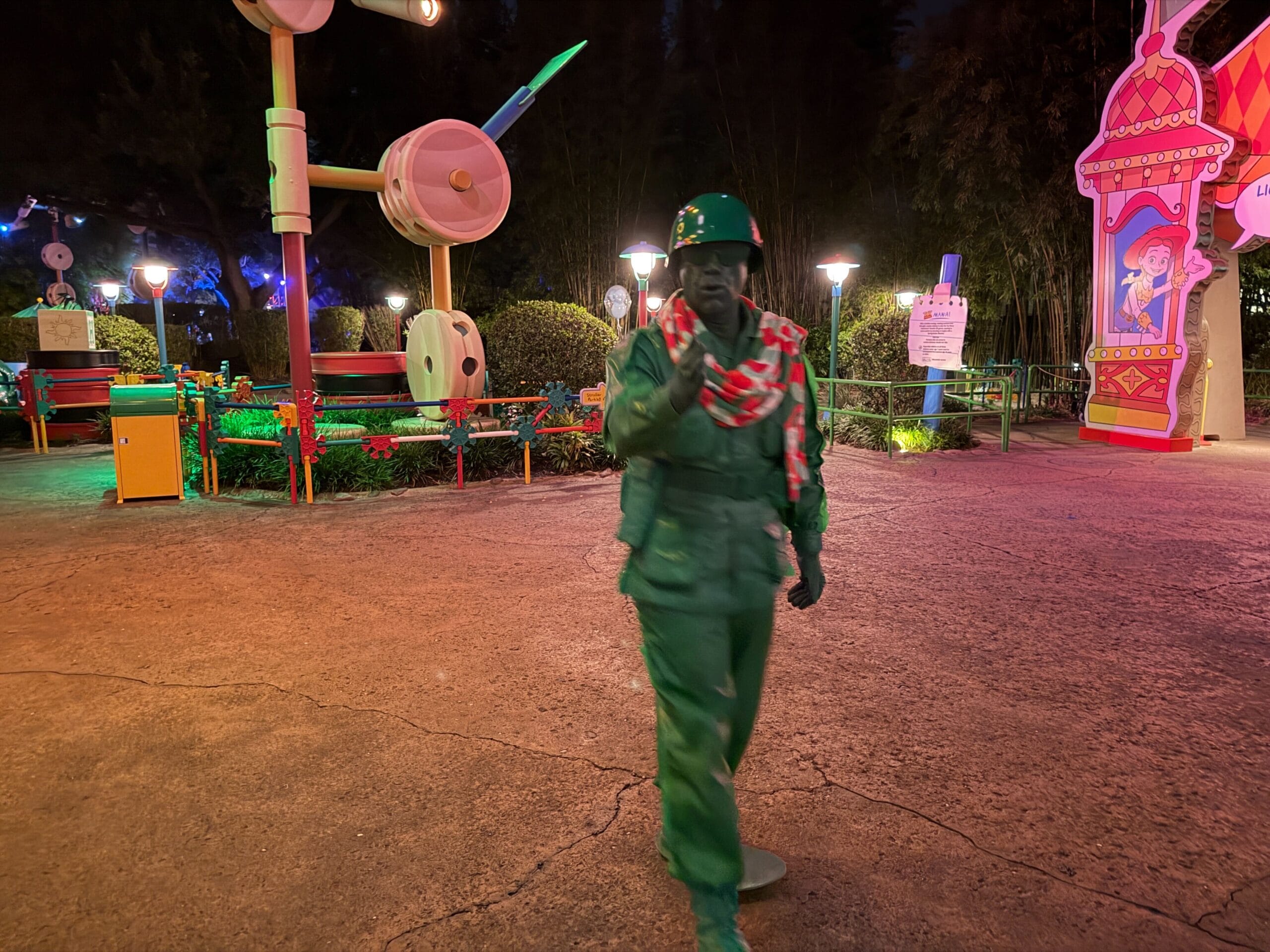 We got called out by this scarf-wearing Toy Soldier roaming around Toy Story Land.
