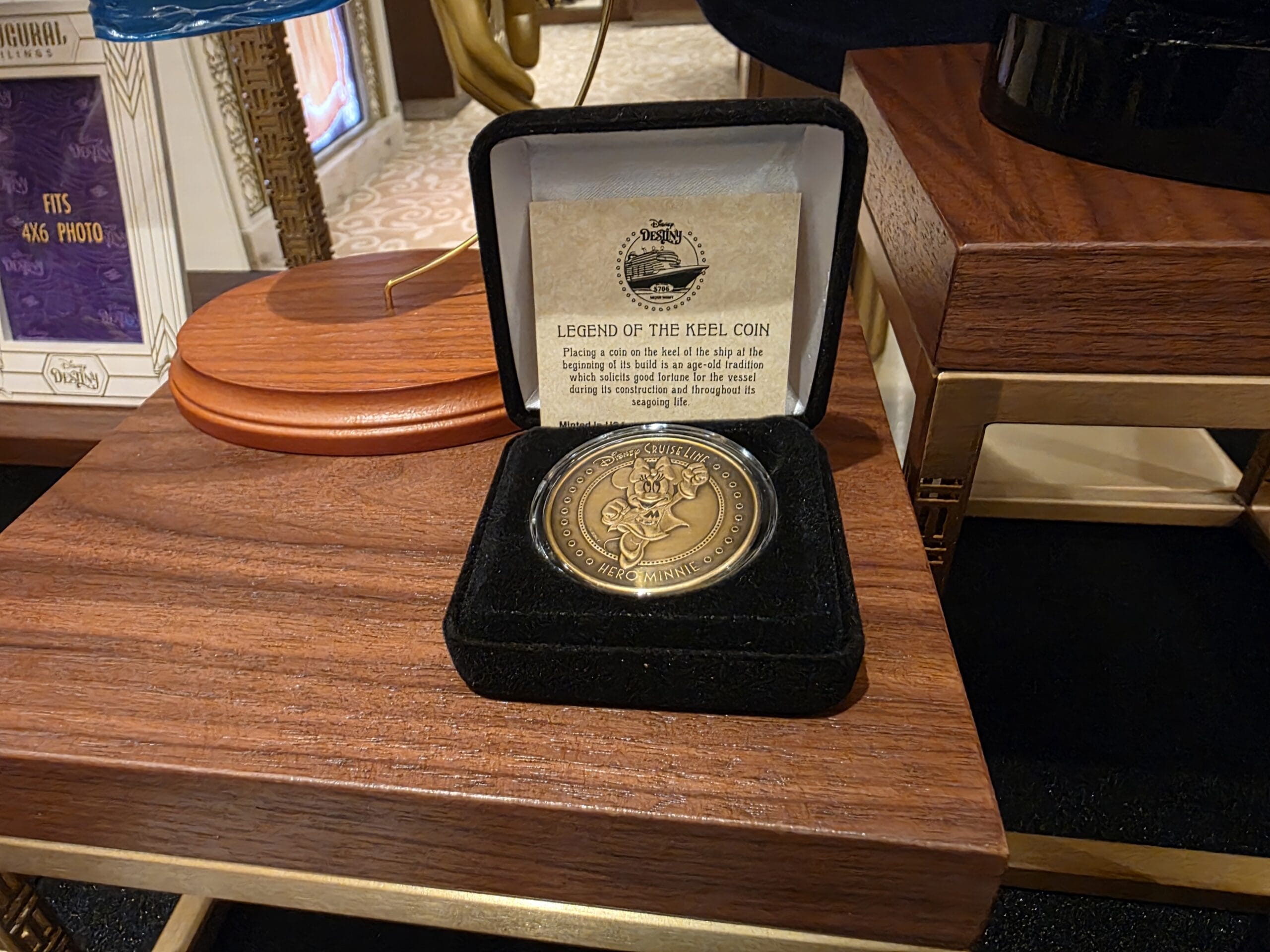 You can pick up a replica of the coin laid during the Disney Destiny’s keel coin ceremony, featuring the bow art of Hero Minnie on one side and the Destiny ship profile on the other.