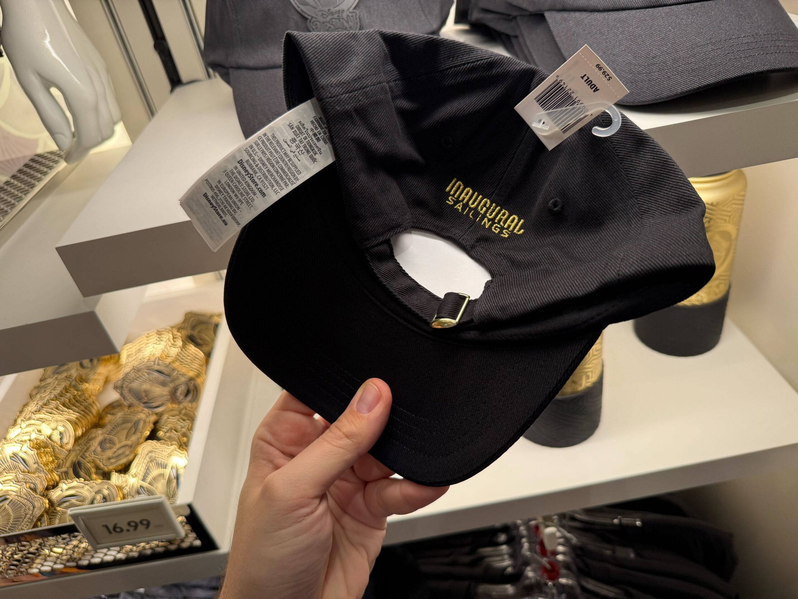 Pick up an Inaugural Sailings cap, which has a patch of the Destiny ship and logo on the front. The back has yellow Inaugural Sailings text.