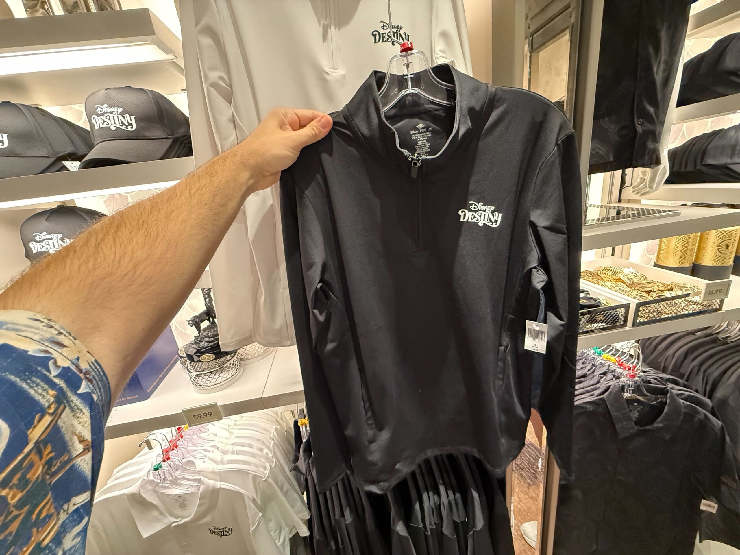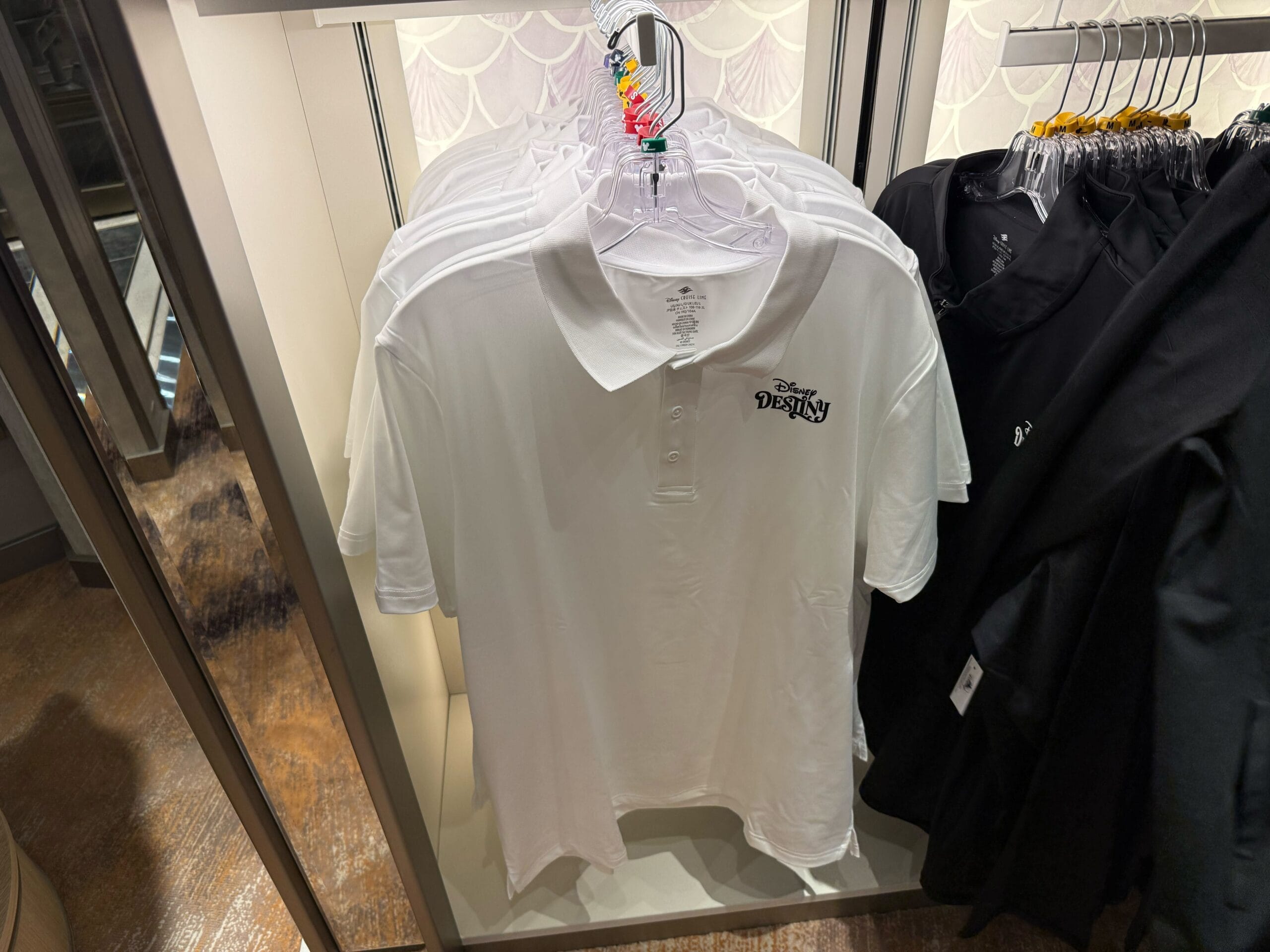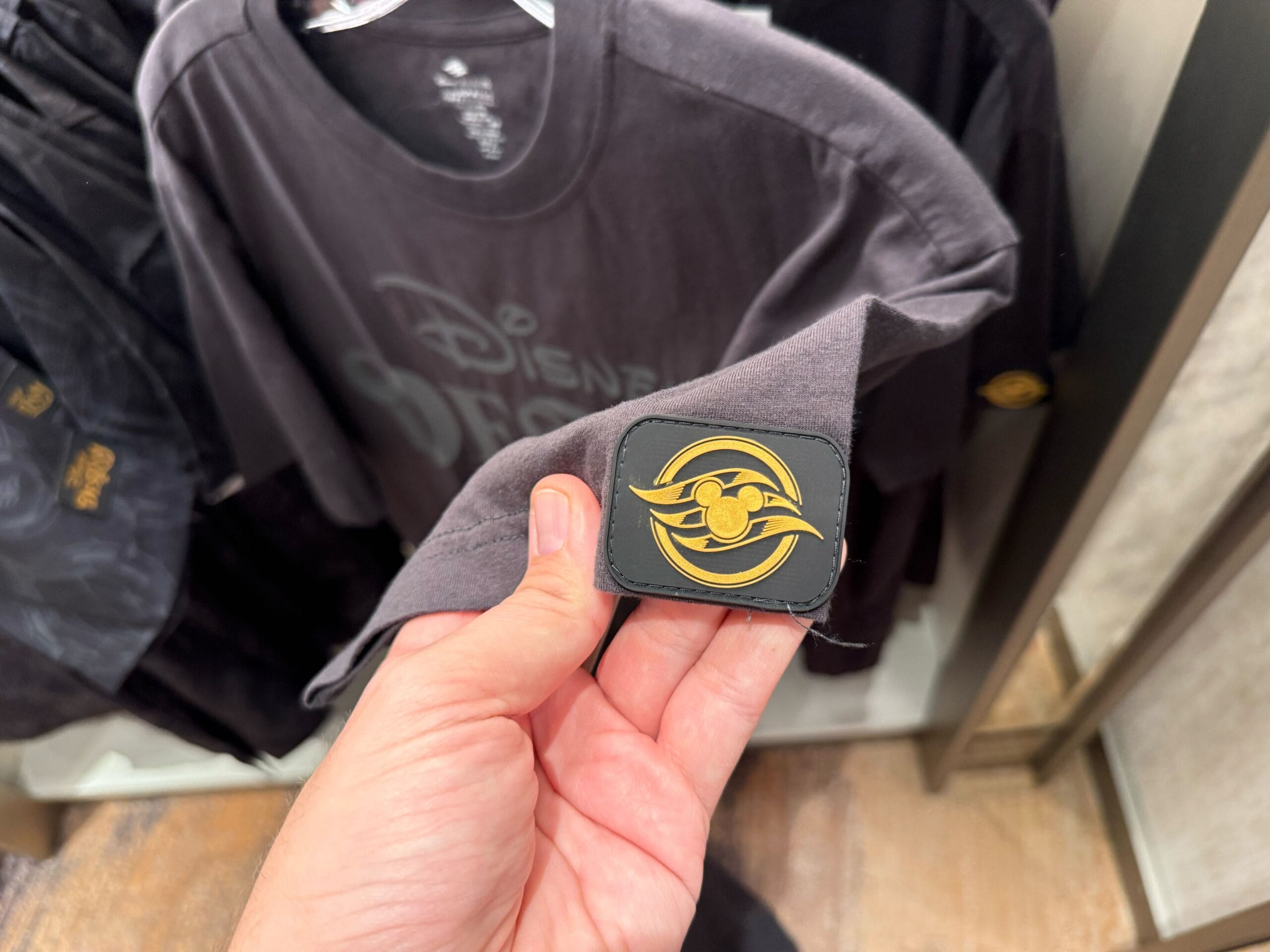 The Destiny logo and ship cover almost the entirety of this shirt. The back has a loop across the stitching, and the sleeve has a patch with the Disney Cruise Line logo.