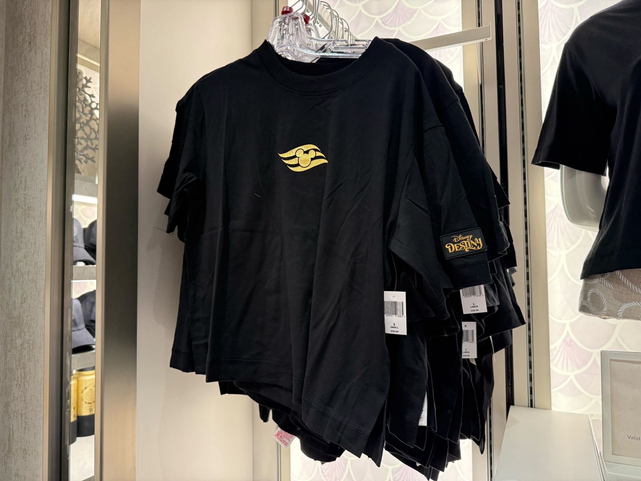 This black cropped tee has the Disney Cruise Line logo on the front and the Destiny patch on the left sleeve.
