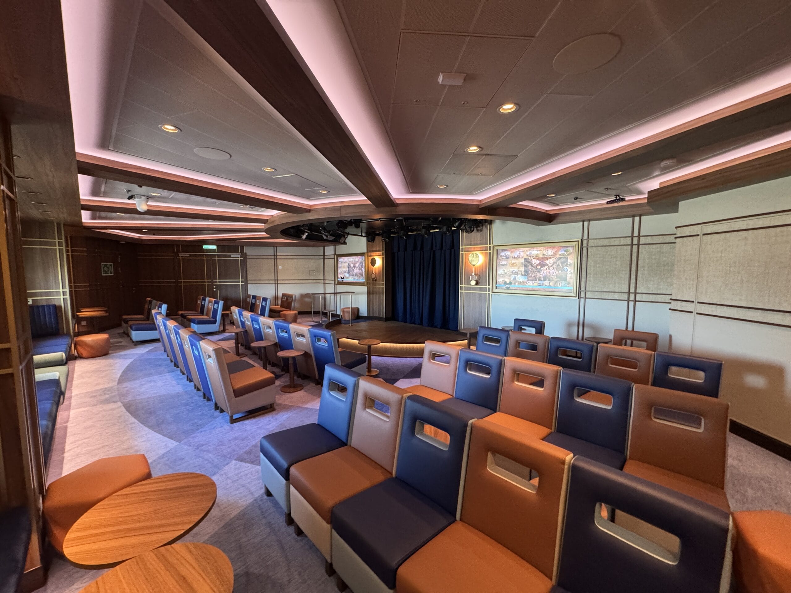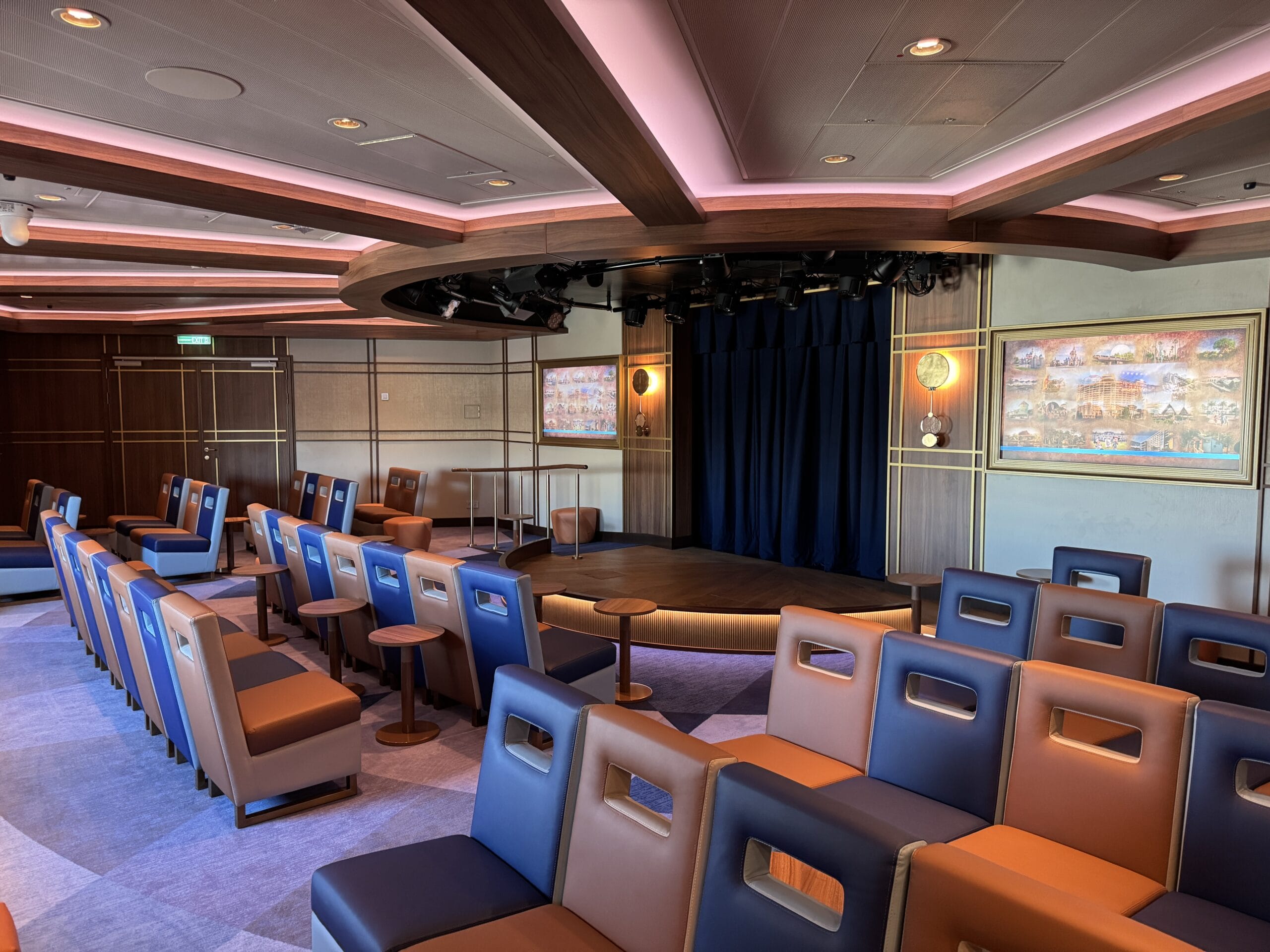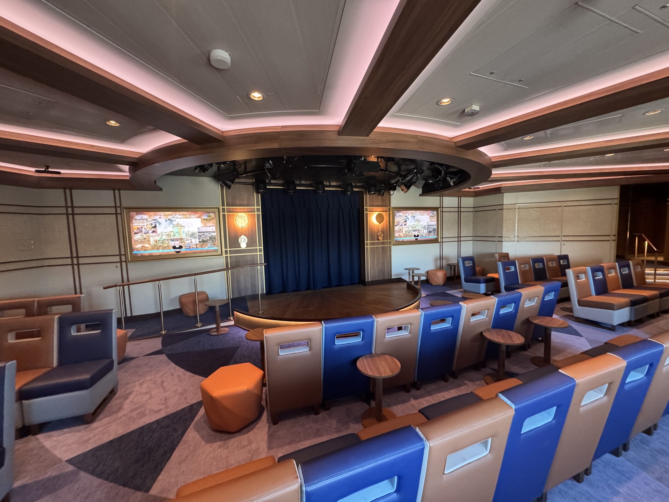 The Triton Lounge gives families the chance to connect as they sing karaoke, participate in trivia, and more. The versatile space is nearly identical to the Triton Lounge on the Disney Wish and Disney Treasure.
