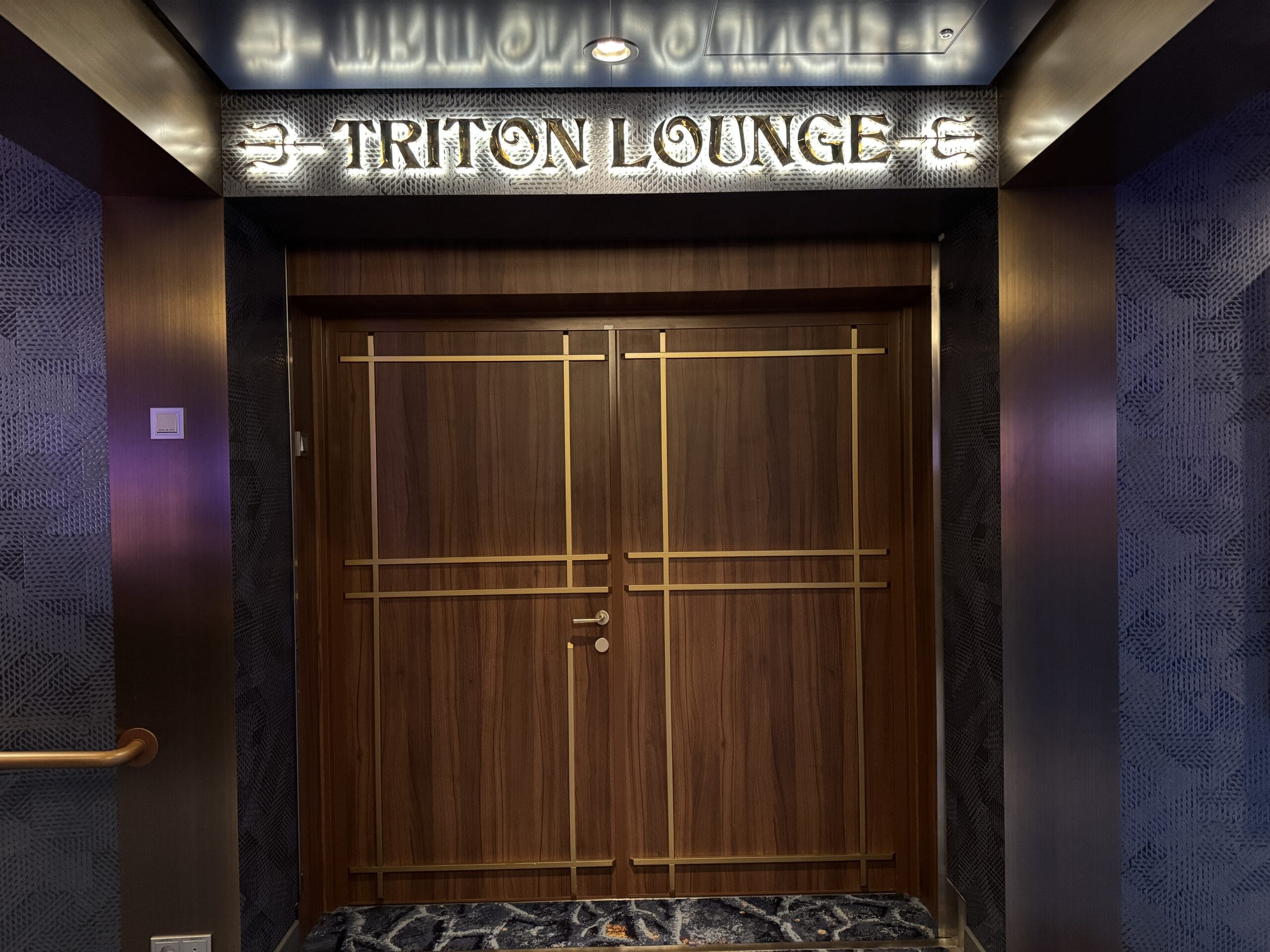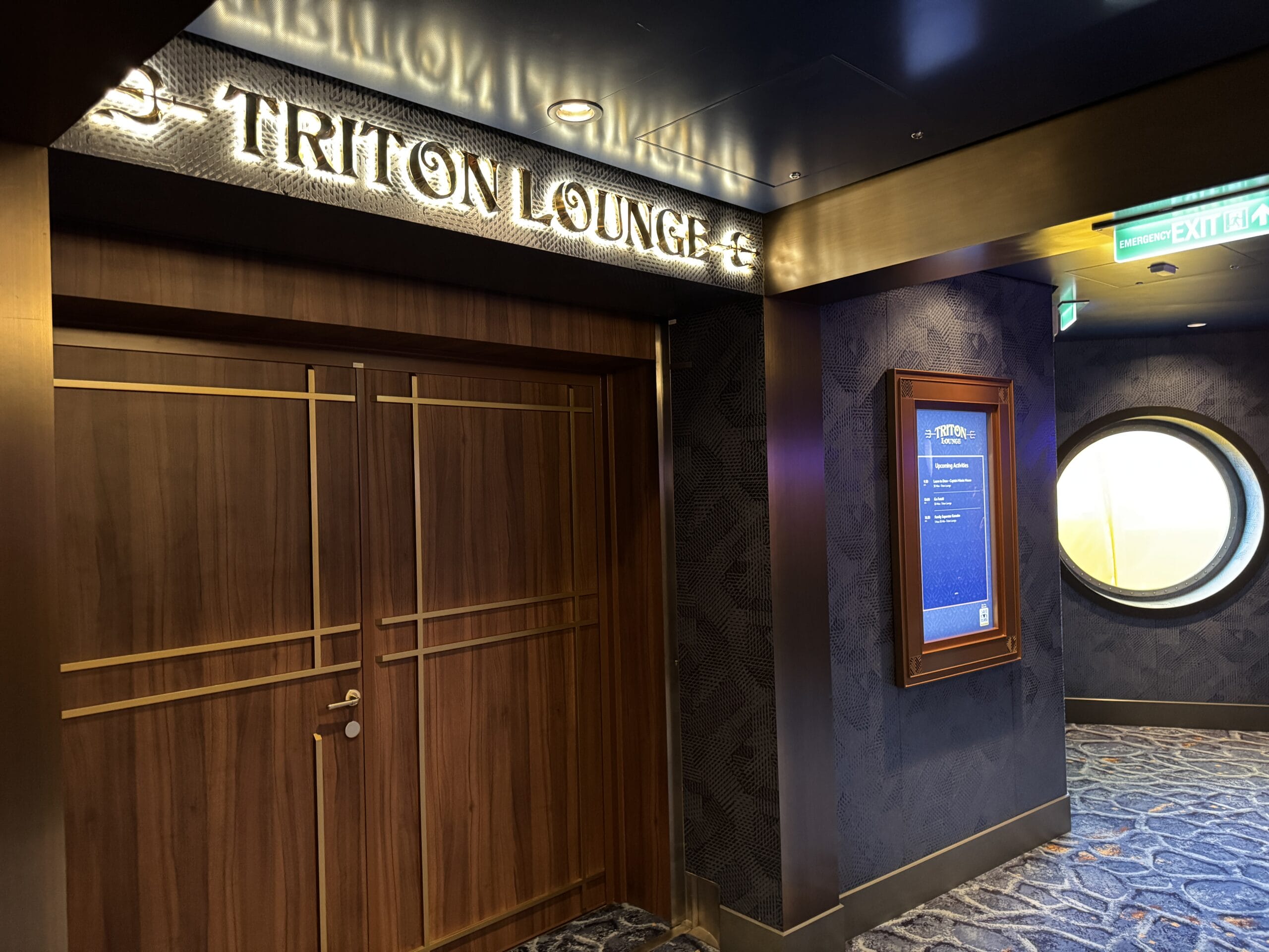 Triton Lounge is located on Deck 5. There is an electronic sign with the posted activity schedule.