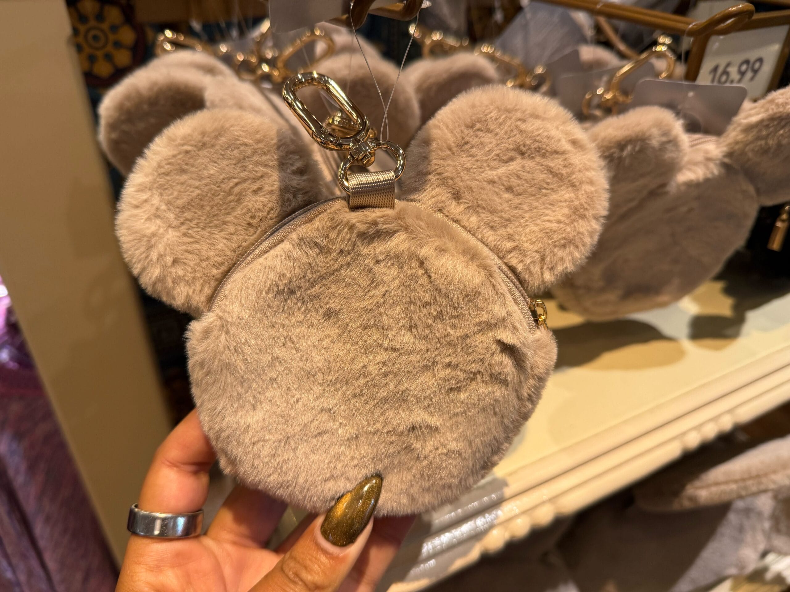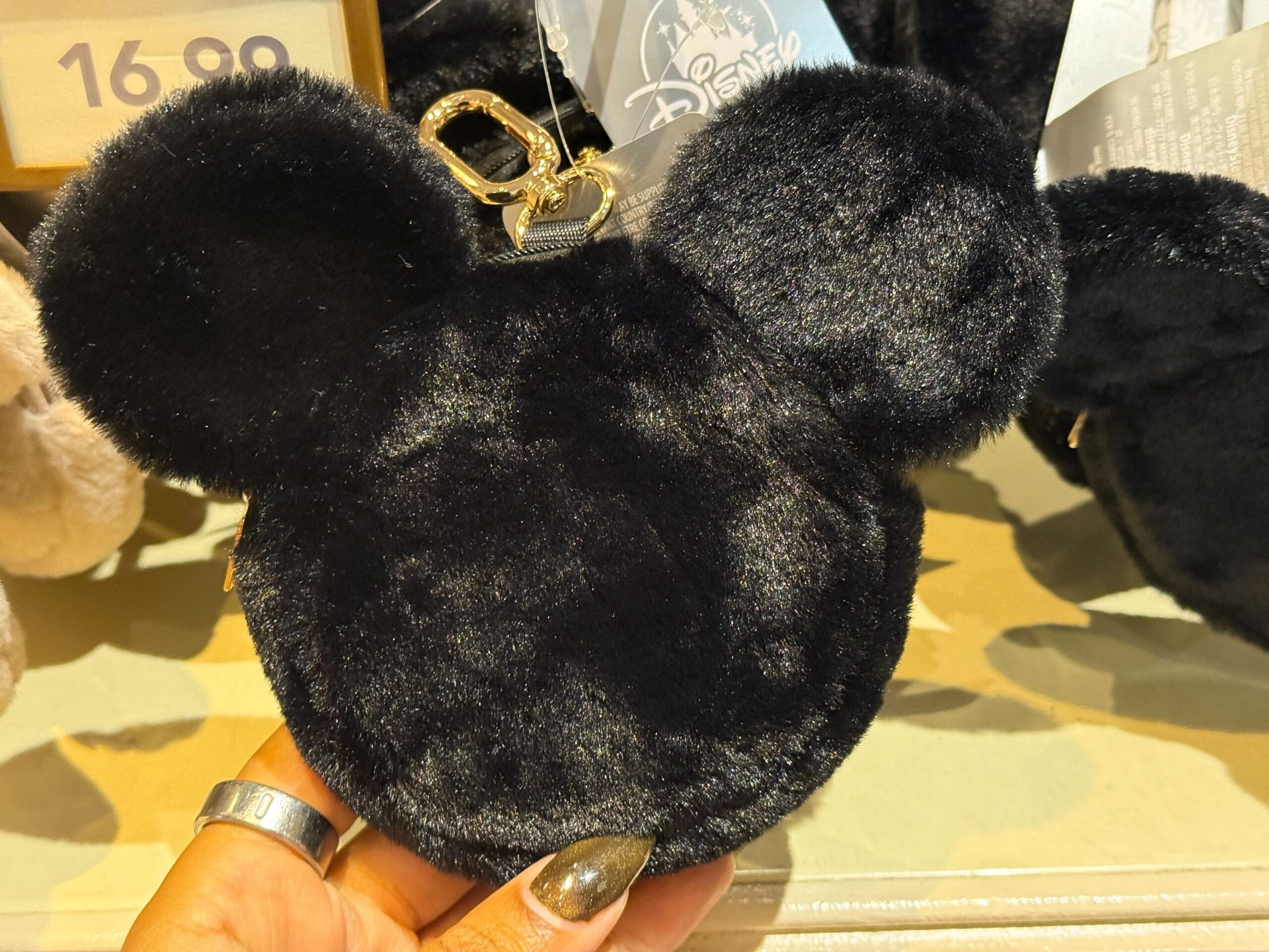 Two sets of fuzzy, Mickey Mouse-shaped purses and coin purses are now at Disneyland Resort. Although they are matching, like a set, they are purchased individually.