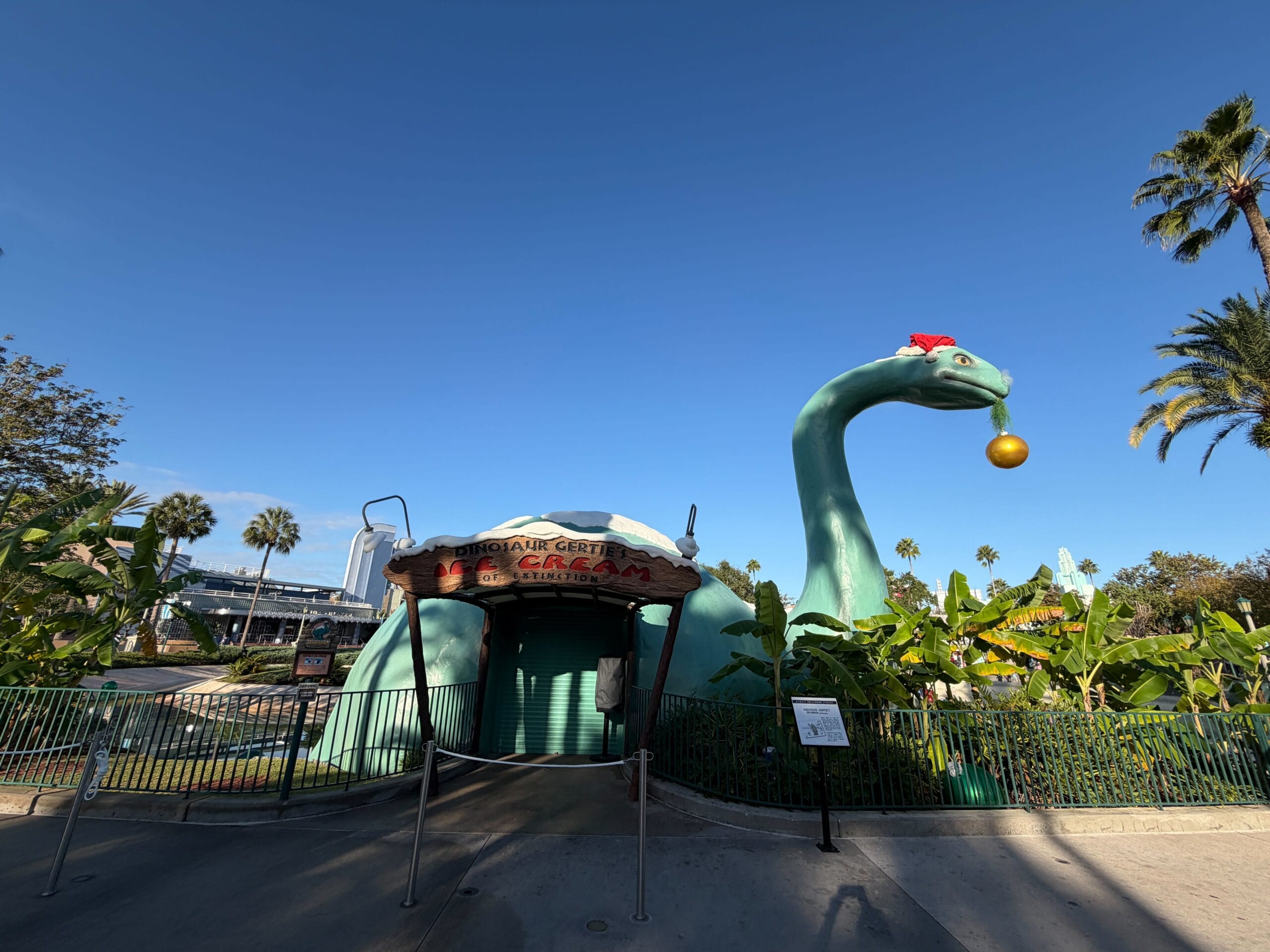 Santa Gertie is now decorated for the 2025 Christmas season at Hollywood Studios, including the Santa hat and ornament.