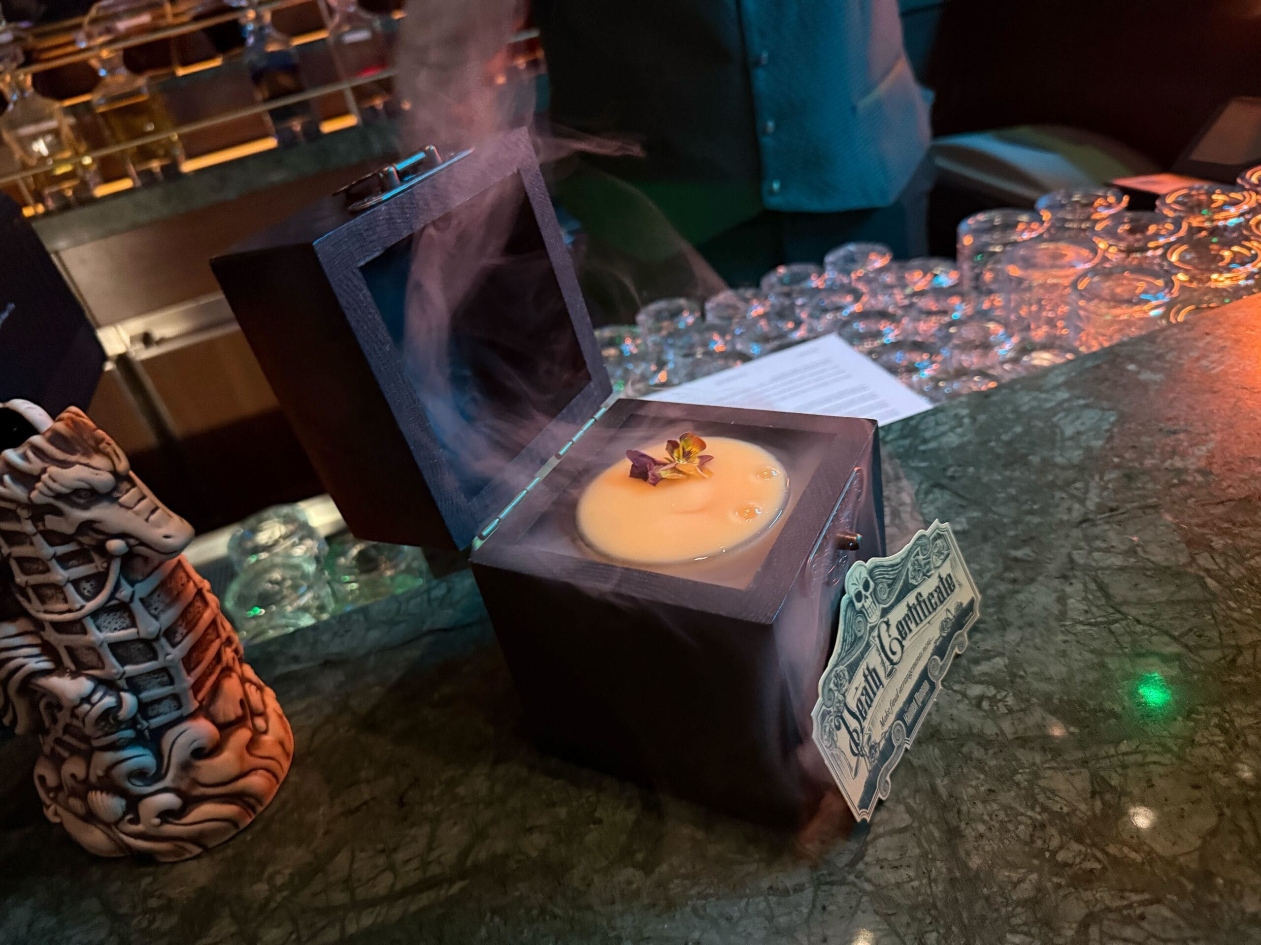 For a more in-depth tour, you can read our review from the Disney Treasure. And, watch our video from last year, including a look at the frightful spirits that appear in the bar’s mirror.