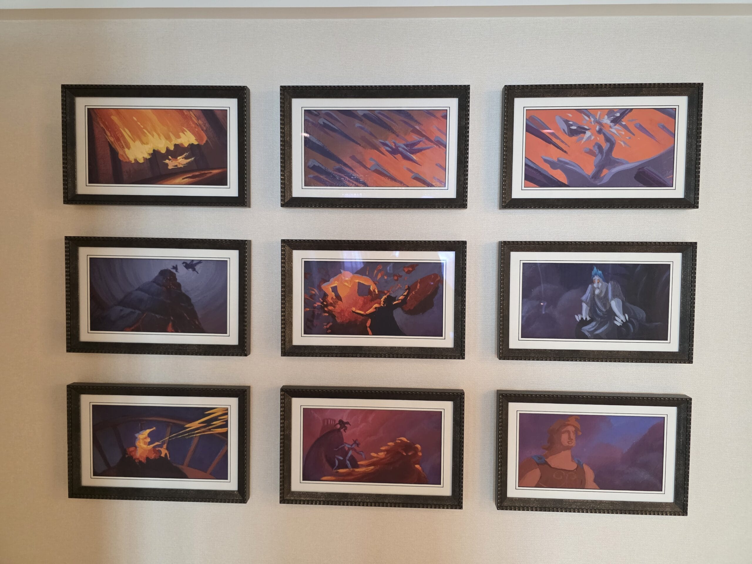 Artwork on the wall features an oval portrait of Hercules standing in the middle of a piece of pottery.