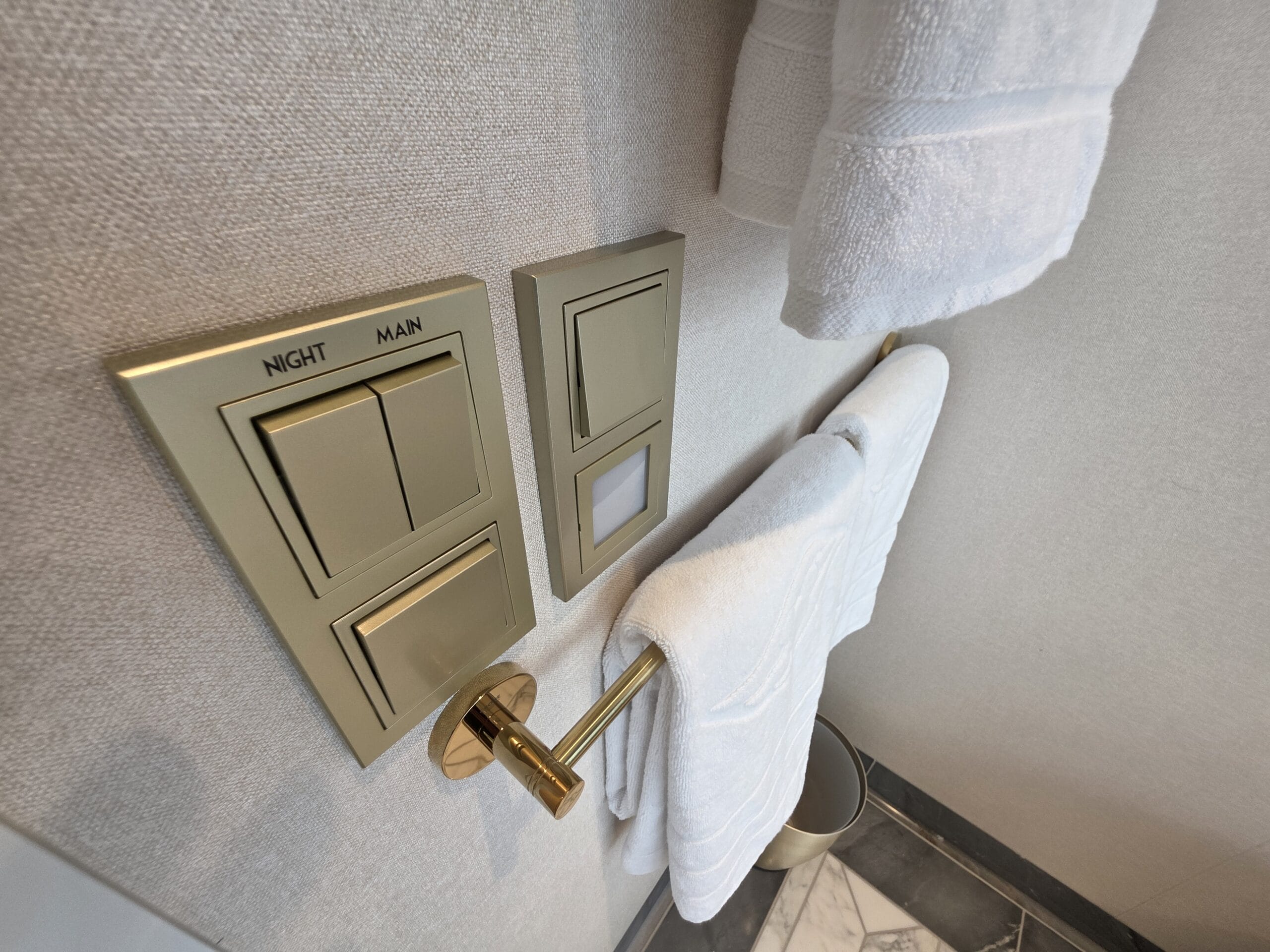One nice feature of the bathroom is that guests can make the full windows opaque instantly with just the switch on the wall.