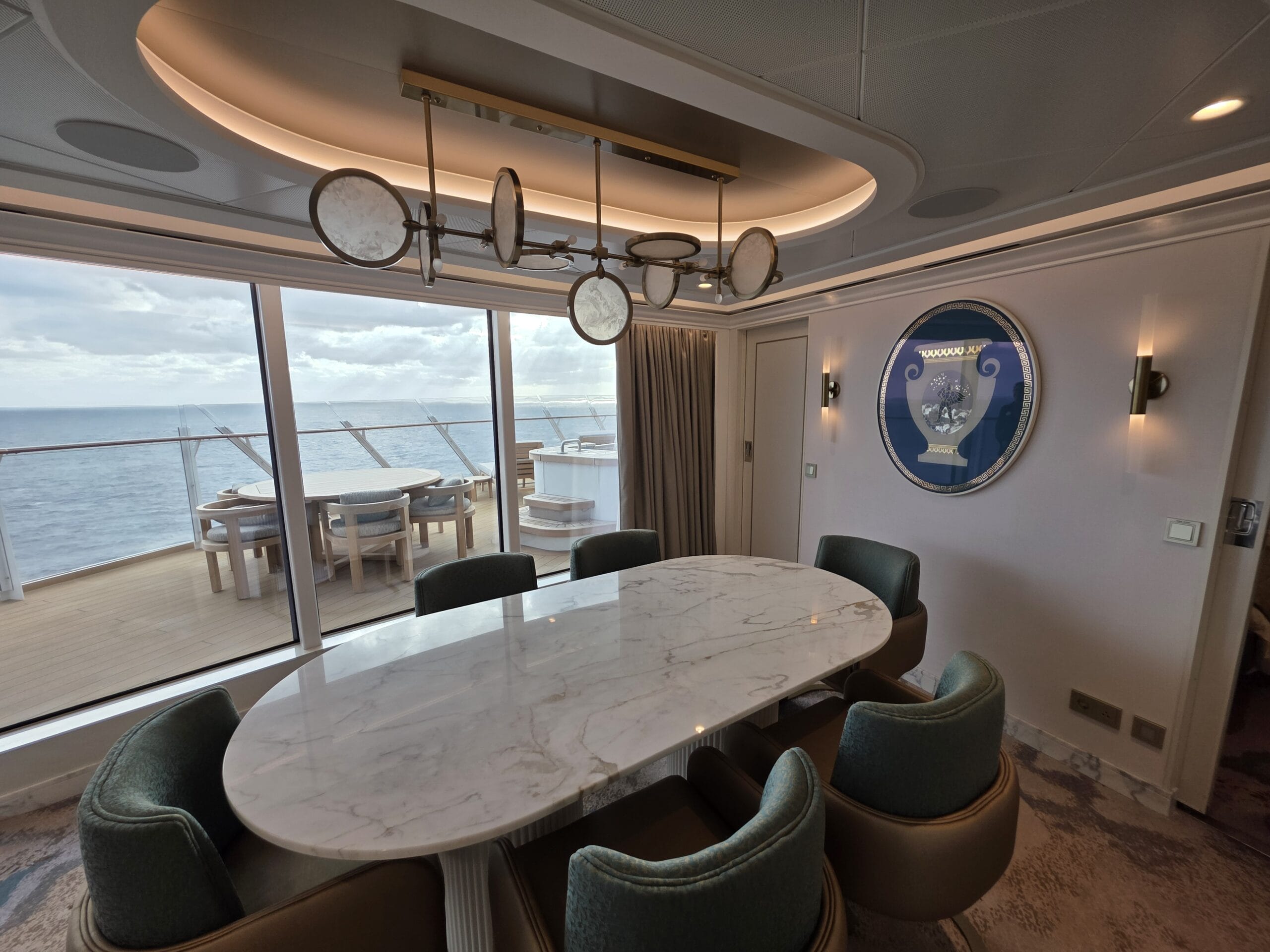 The 1-Story Royal Suite is 1,507 sq ft, including the balcony and sleeps up to six guests. There are two bedrooms and three bathrooms, plus a verandah with a whirpool spa.