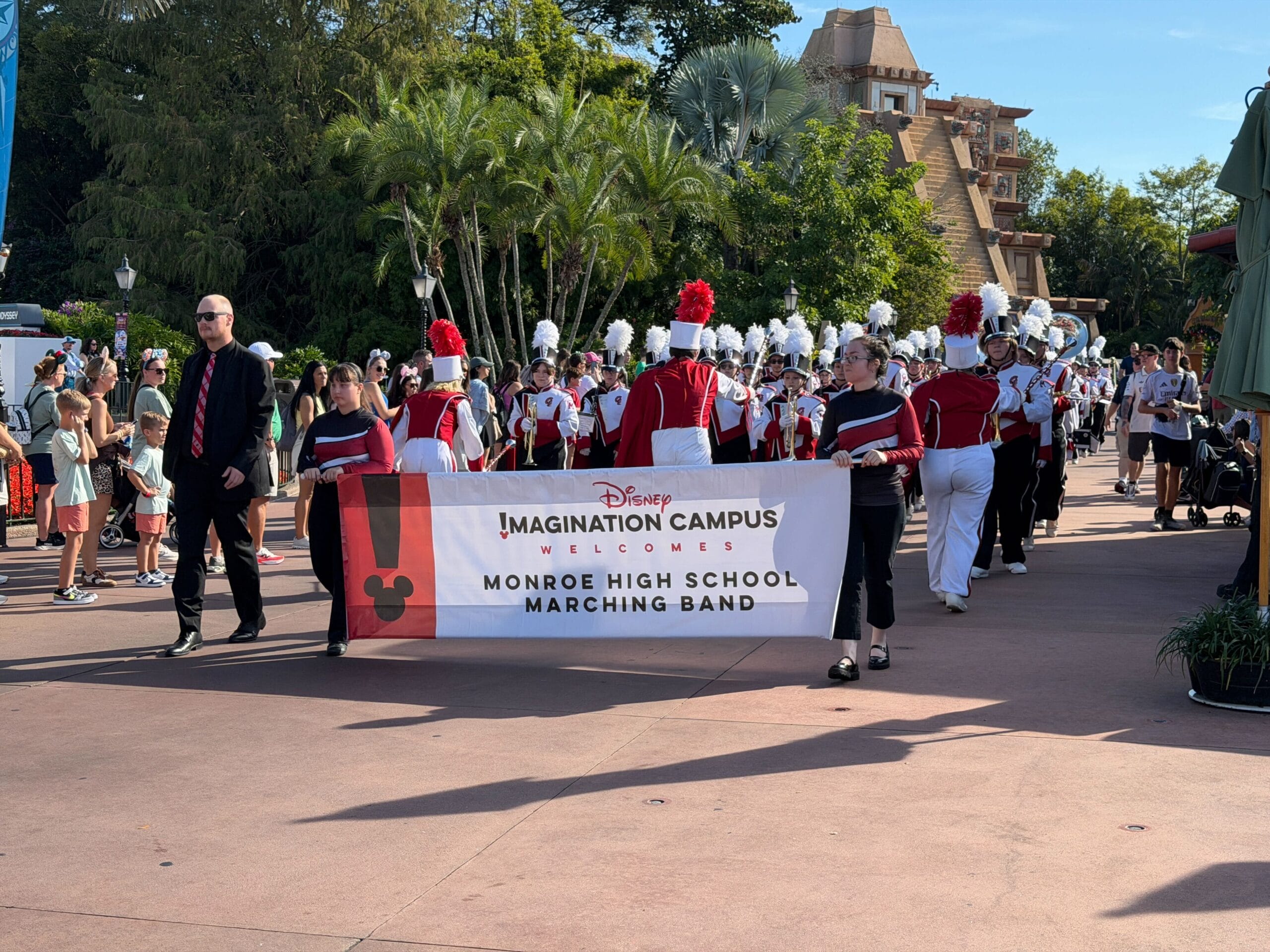 The performances are presented by Disney Imagination Campus. On Wednesday, we saw the Monroe High School marching band and Green High School marching band.