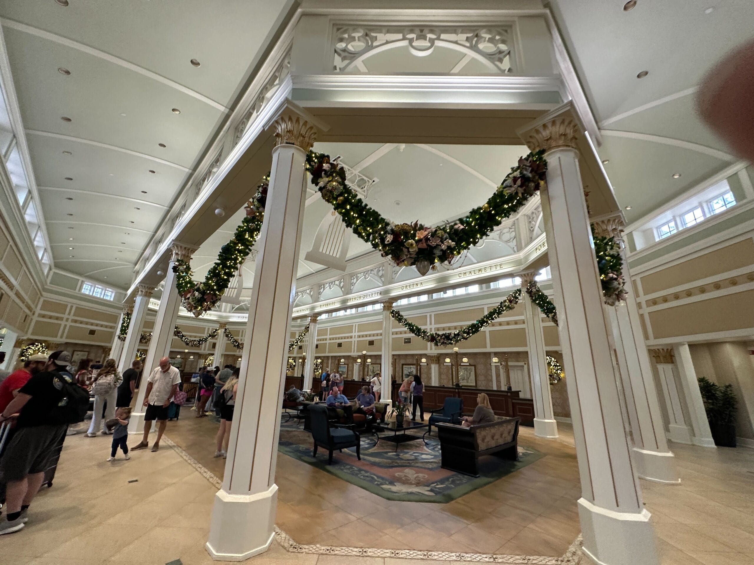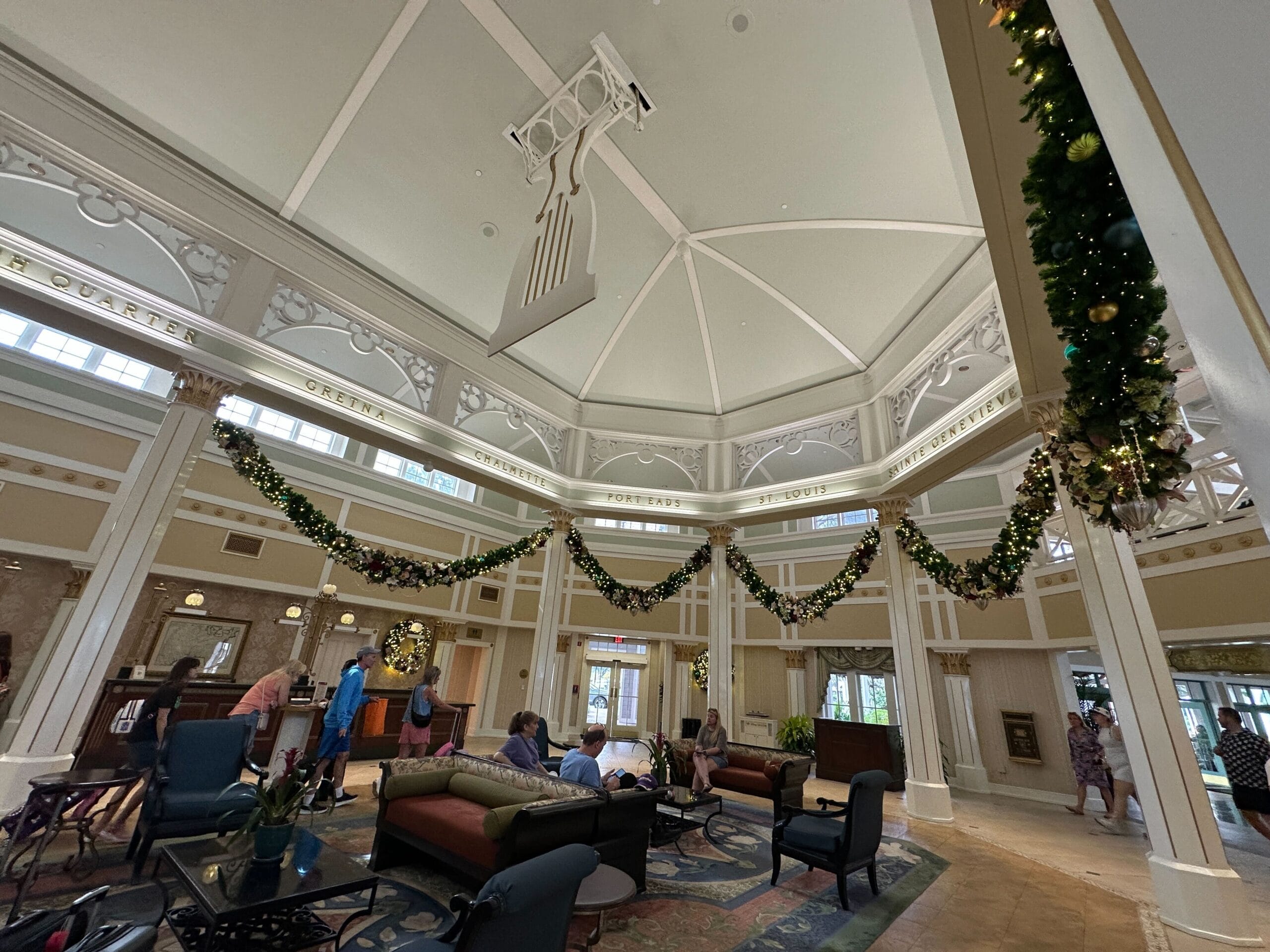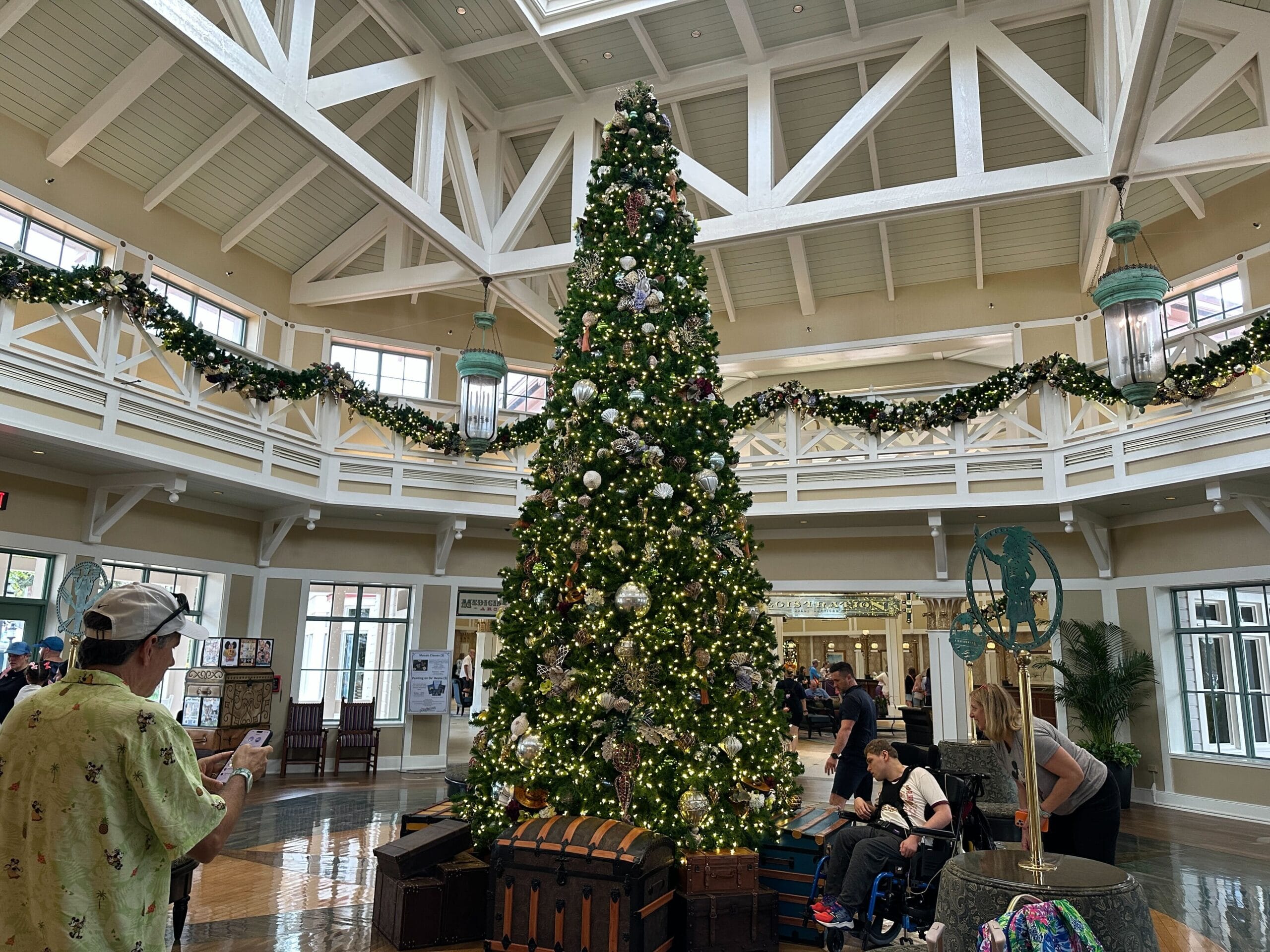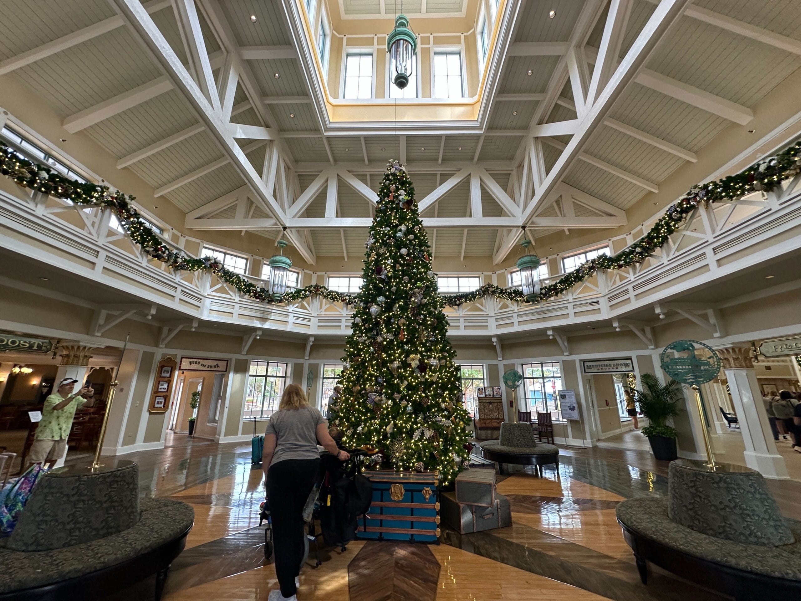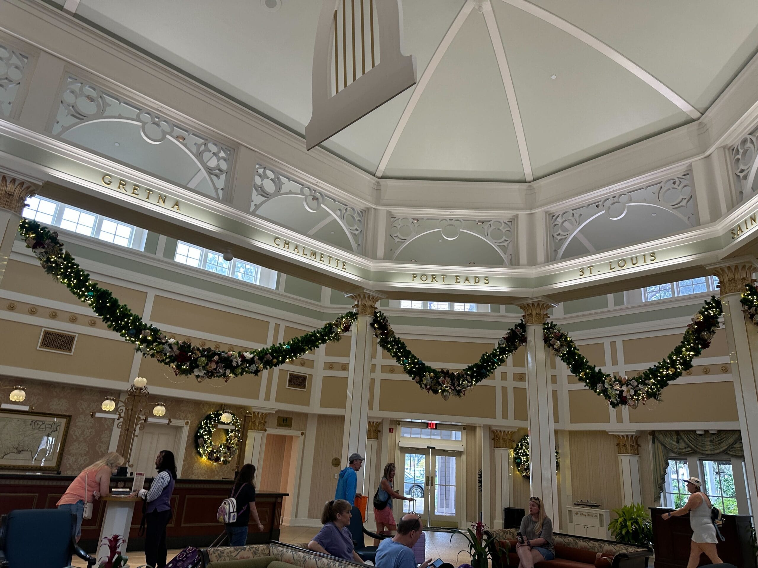 Holiday decorations continue to appear around the hotels of the Walt Disney World Resort. We noticed that Port Orleans – Riverside recently received its tree and garland in the lobby.