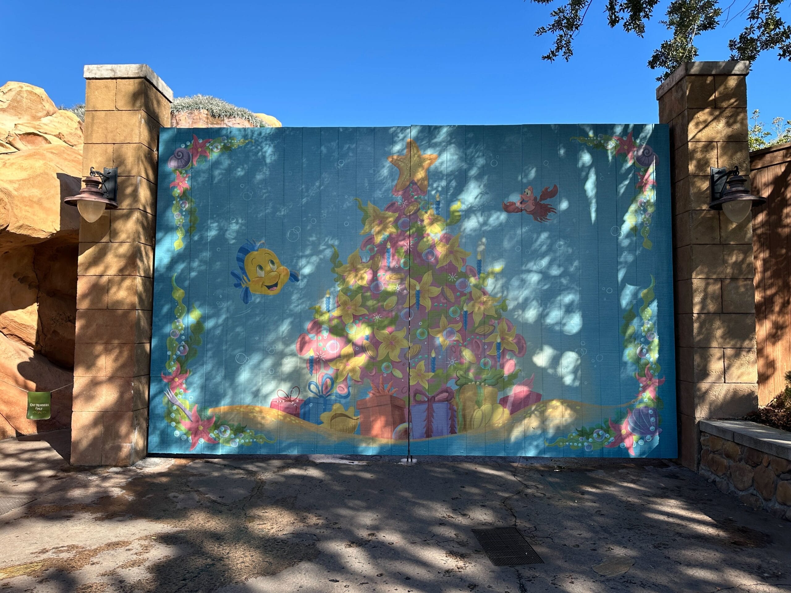Be sure to find the hidden door as well, which features Flounder and Sebastian from The Little Mermaid, decorating a seaweed tree underwater.