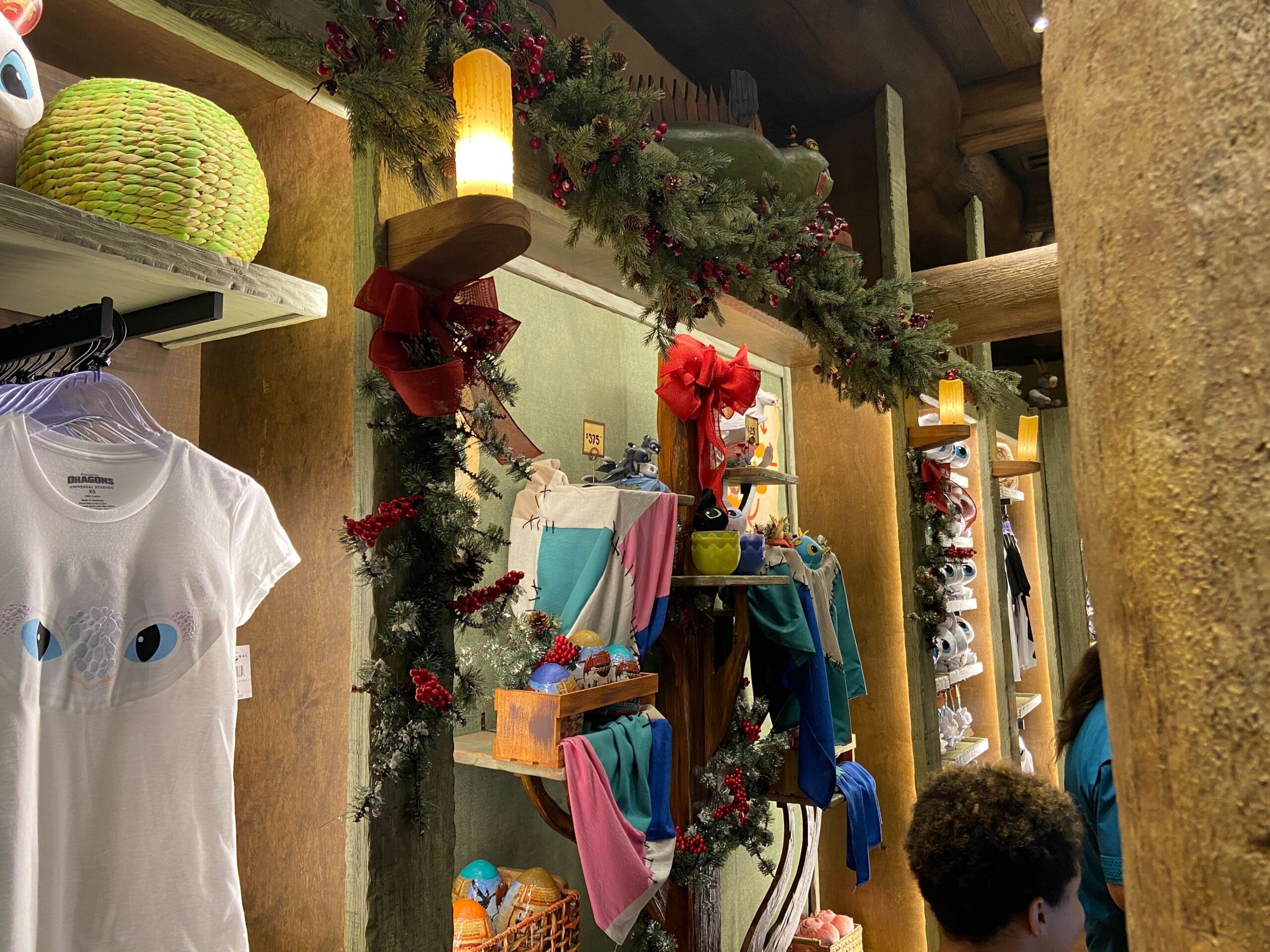 Though Universal only announced Celestial Park and The Wizarding World of Harry Potter – Ministry of Magic at Epic Universe would get holiday decorations, there is some light theming in How to Train Your Dragon – Isle of Berk for Snoggletog. The annual winter holiday first appeared in the How to Train Your Dragon short film Gift of the Night Fury (2011).
