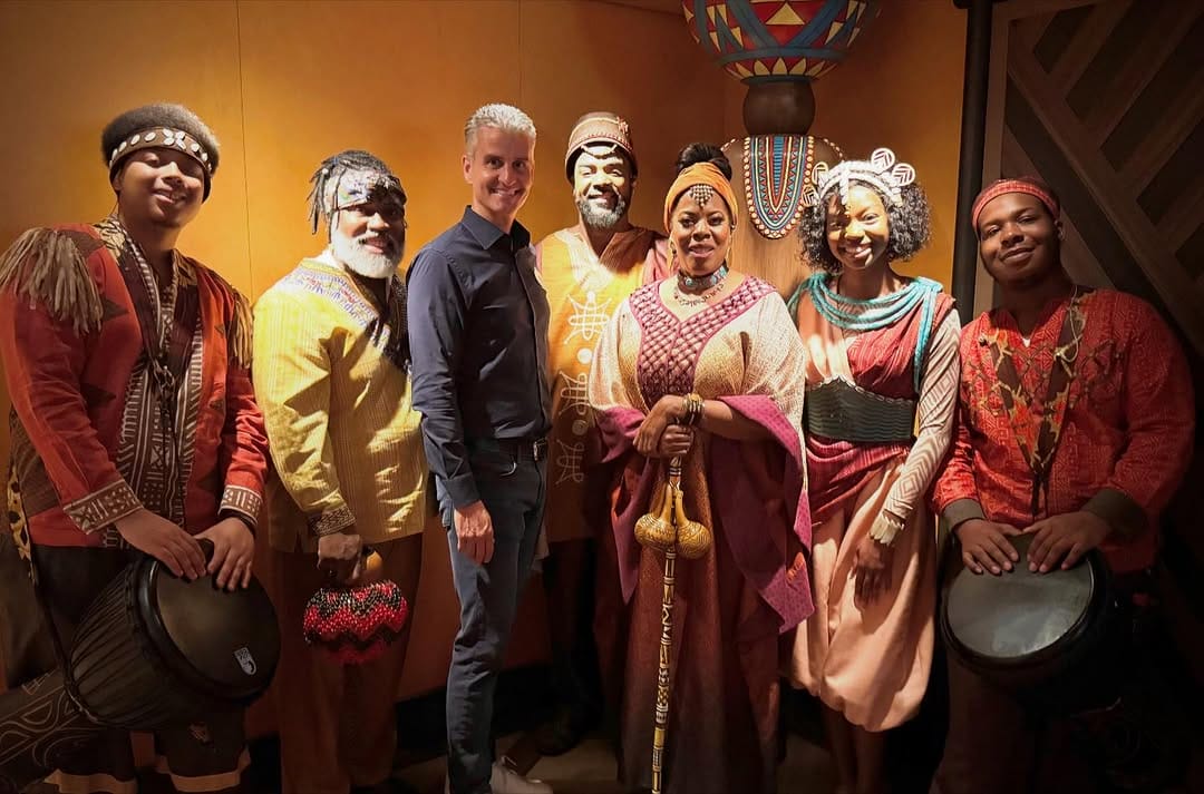 Finally, he also shared this photo of Cast Members of the new Lion King dinner show in their costumes and standing by a painted wooden column in the dining room.