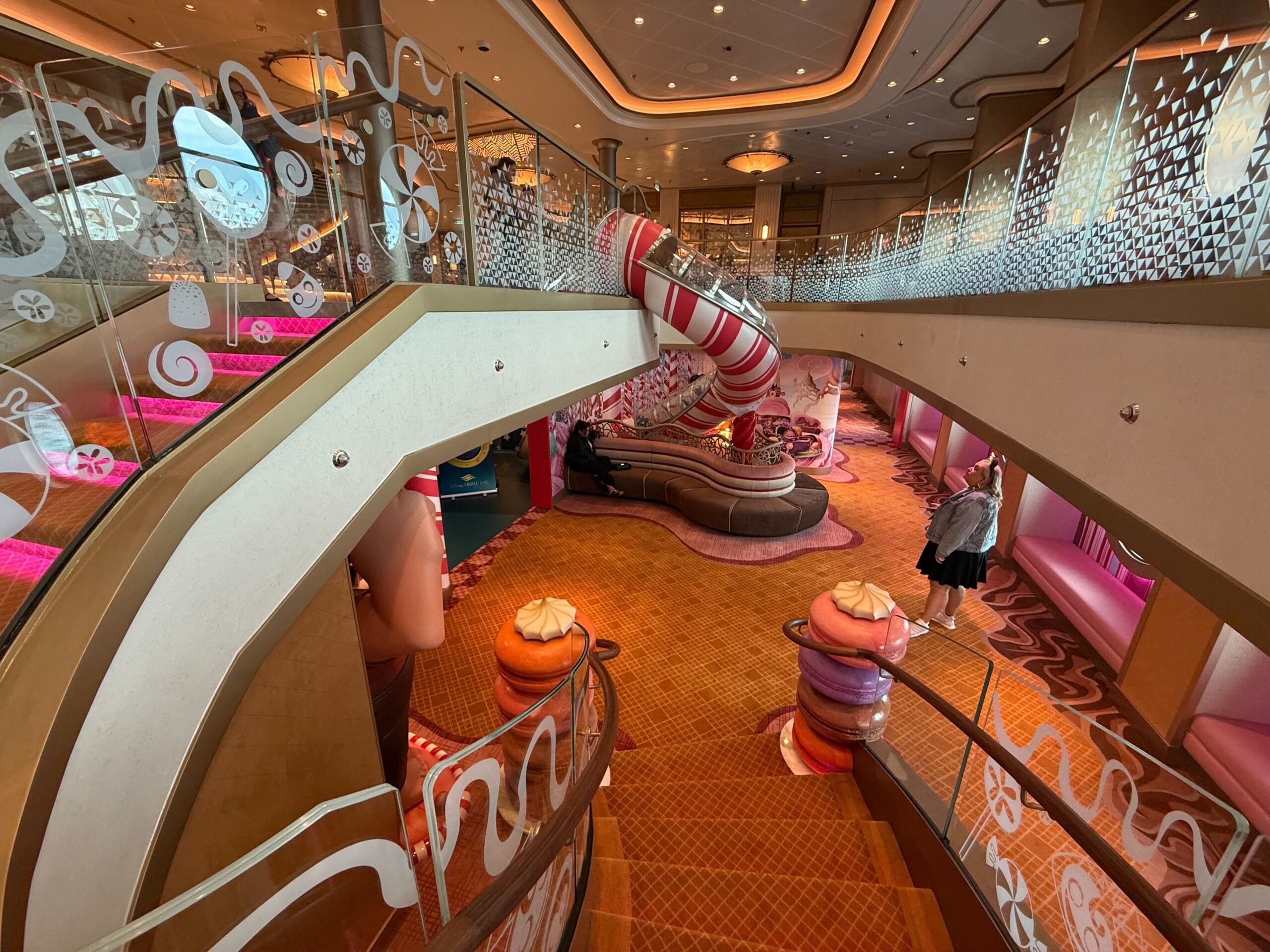 Kids can choose to take a slide from Deck 3 near the Grand Hall straight into the club. A regular entrance is the deck below, available via a nearby staircase.