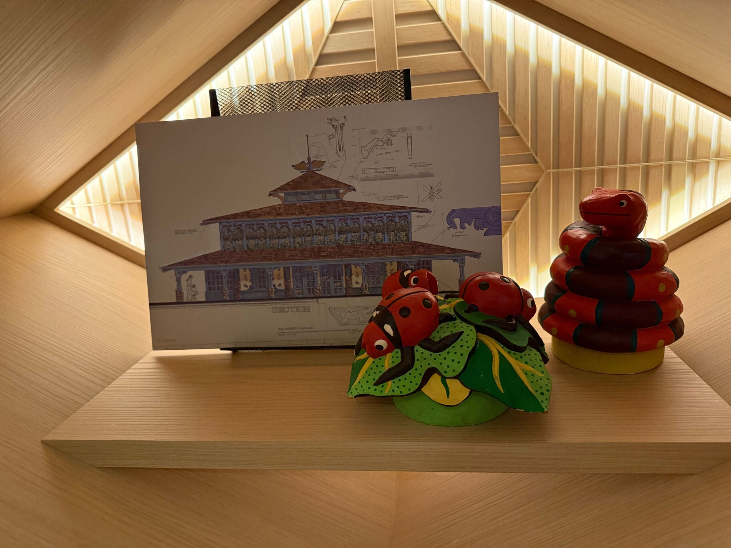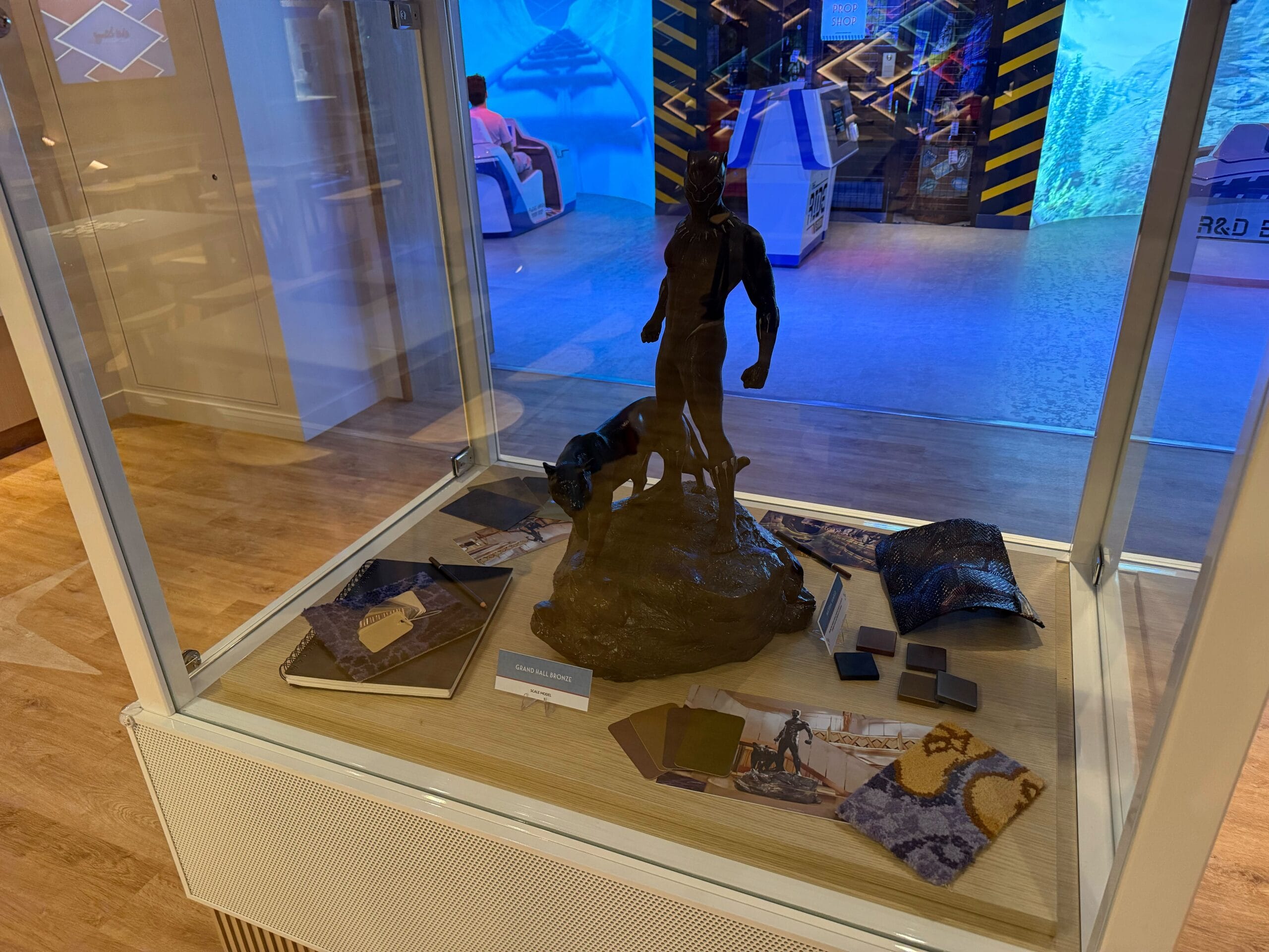 The Lab features concept art, maquettes, and models for various elements of Disney Parks and the Disney Destiny, including the model of the Black Panther statue that is inside the Grand Hall.
