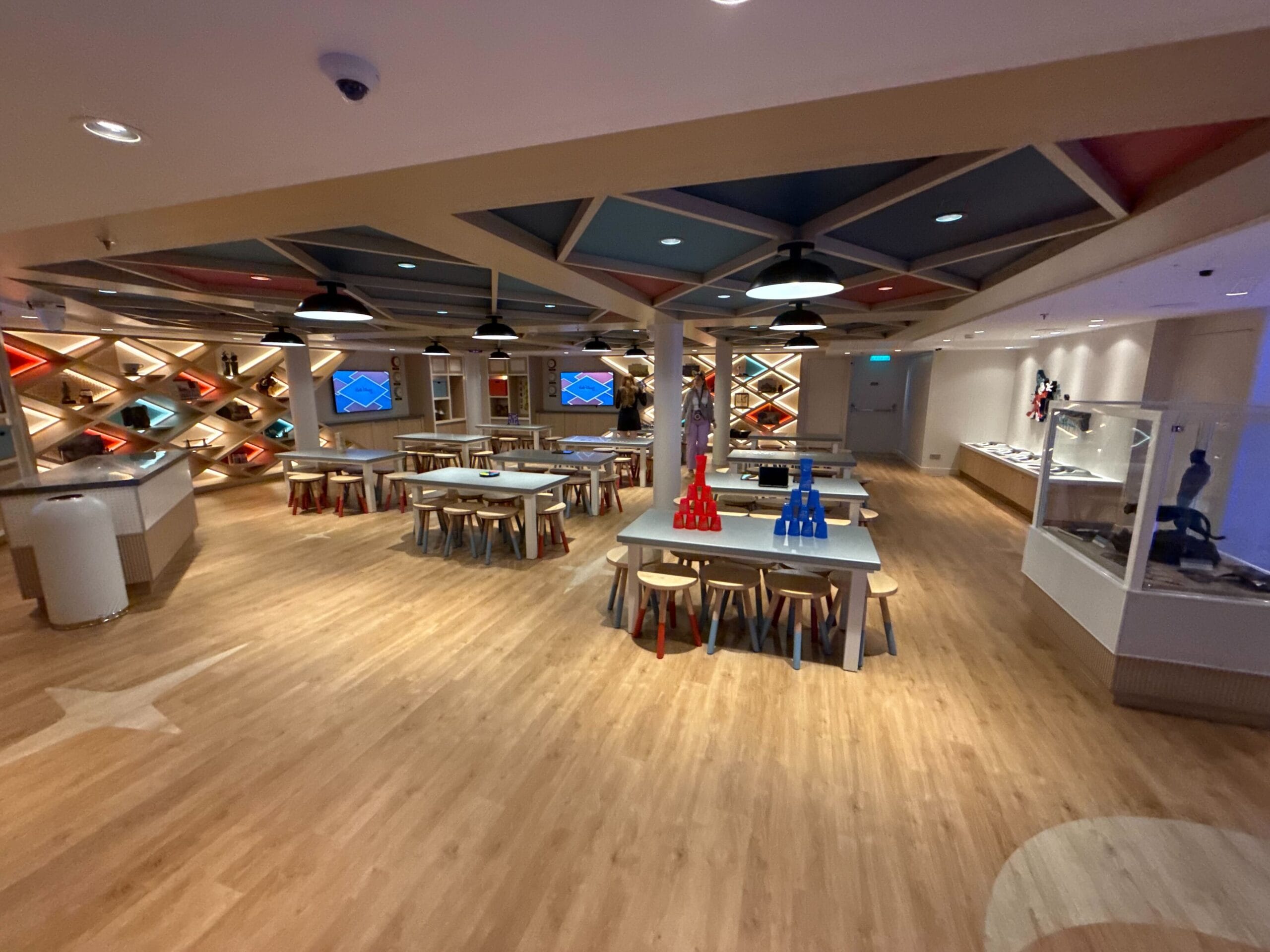 Disney’s Oceaneer Club on the Destiny is nearly identical to that on the Wish and the Disney Treasure with Marvel Super Hero Academy, Fairytale Hall, Walt Disney Imagineering Lab, and Star Wars: Cargo Bay.