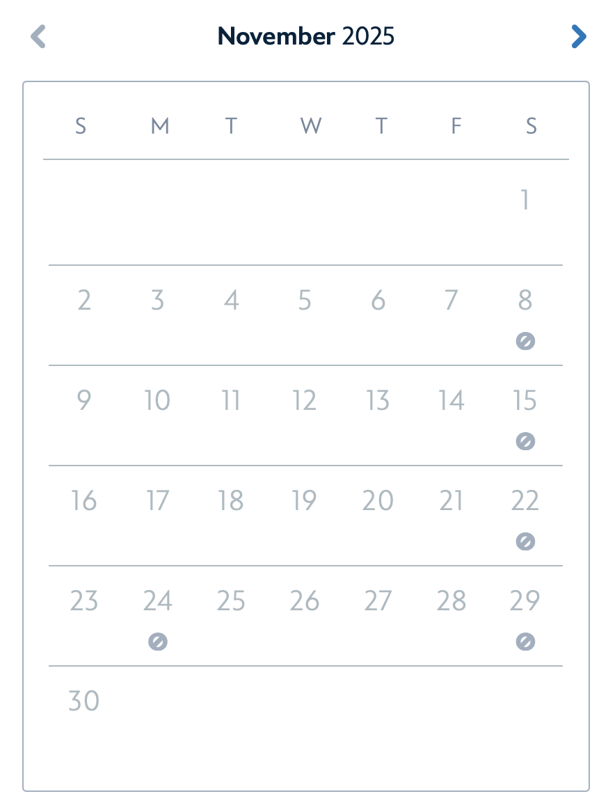 The first party on November 8 sold out three weeks in advance, in mid-October. Later, November 22 sold out prior to the date, as well. November 29 was the last party date for the month.