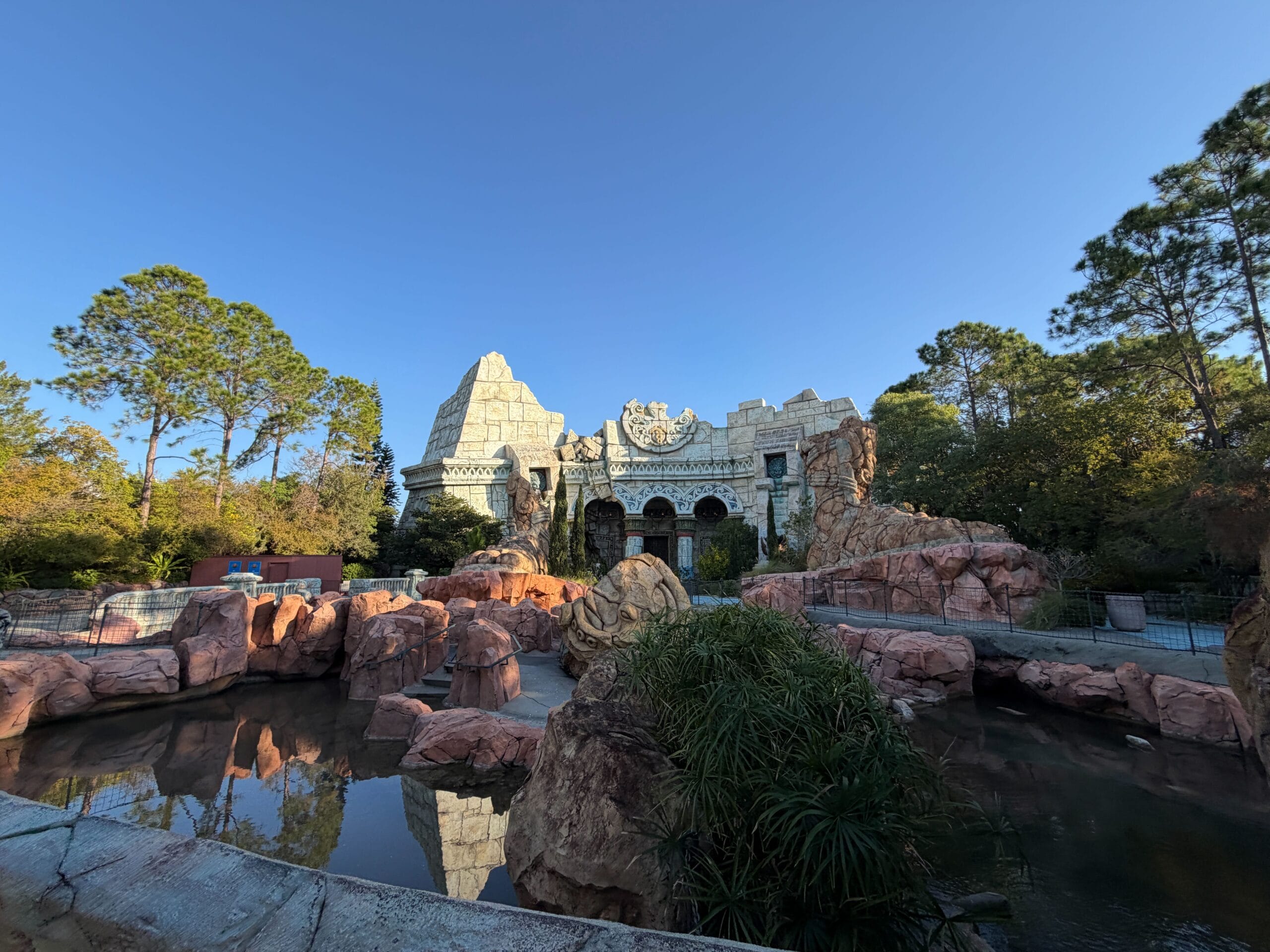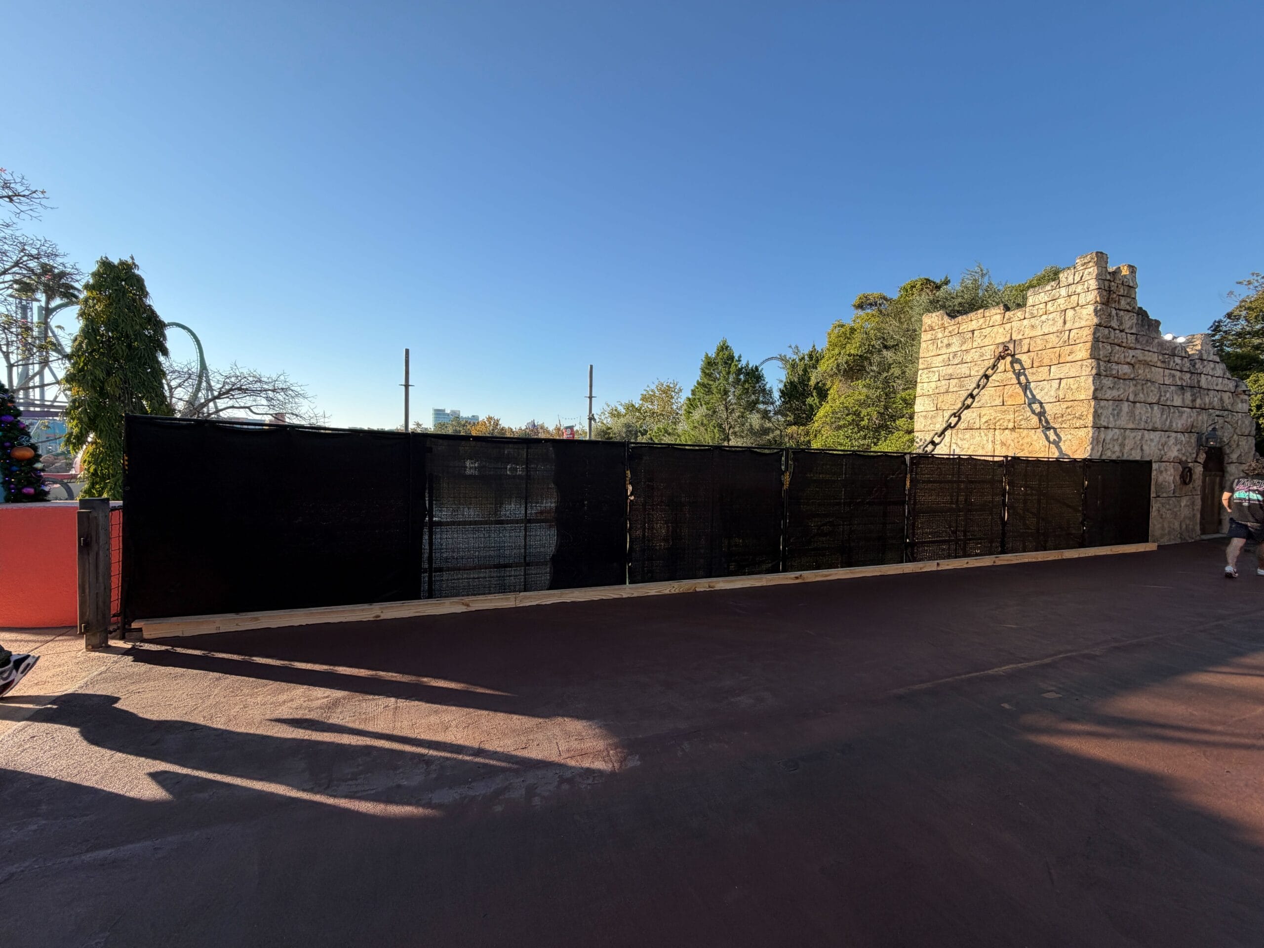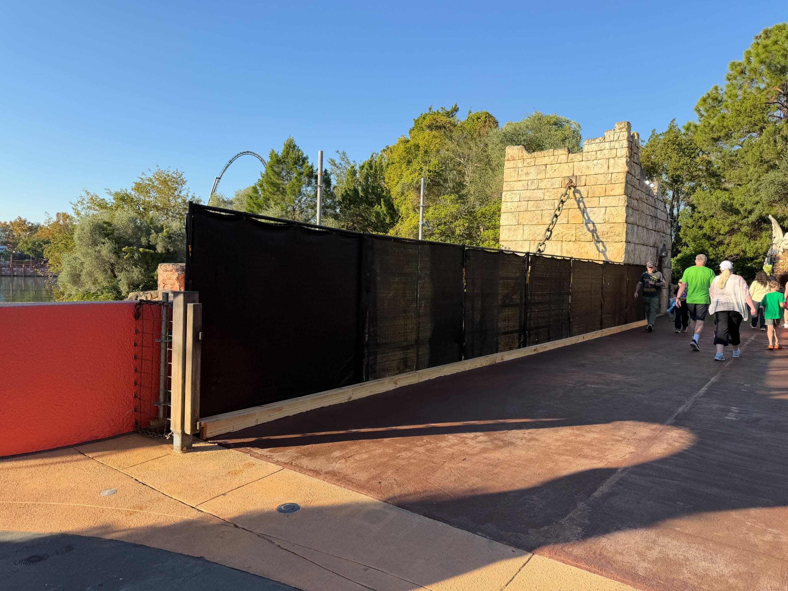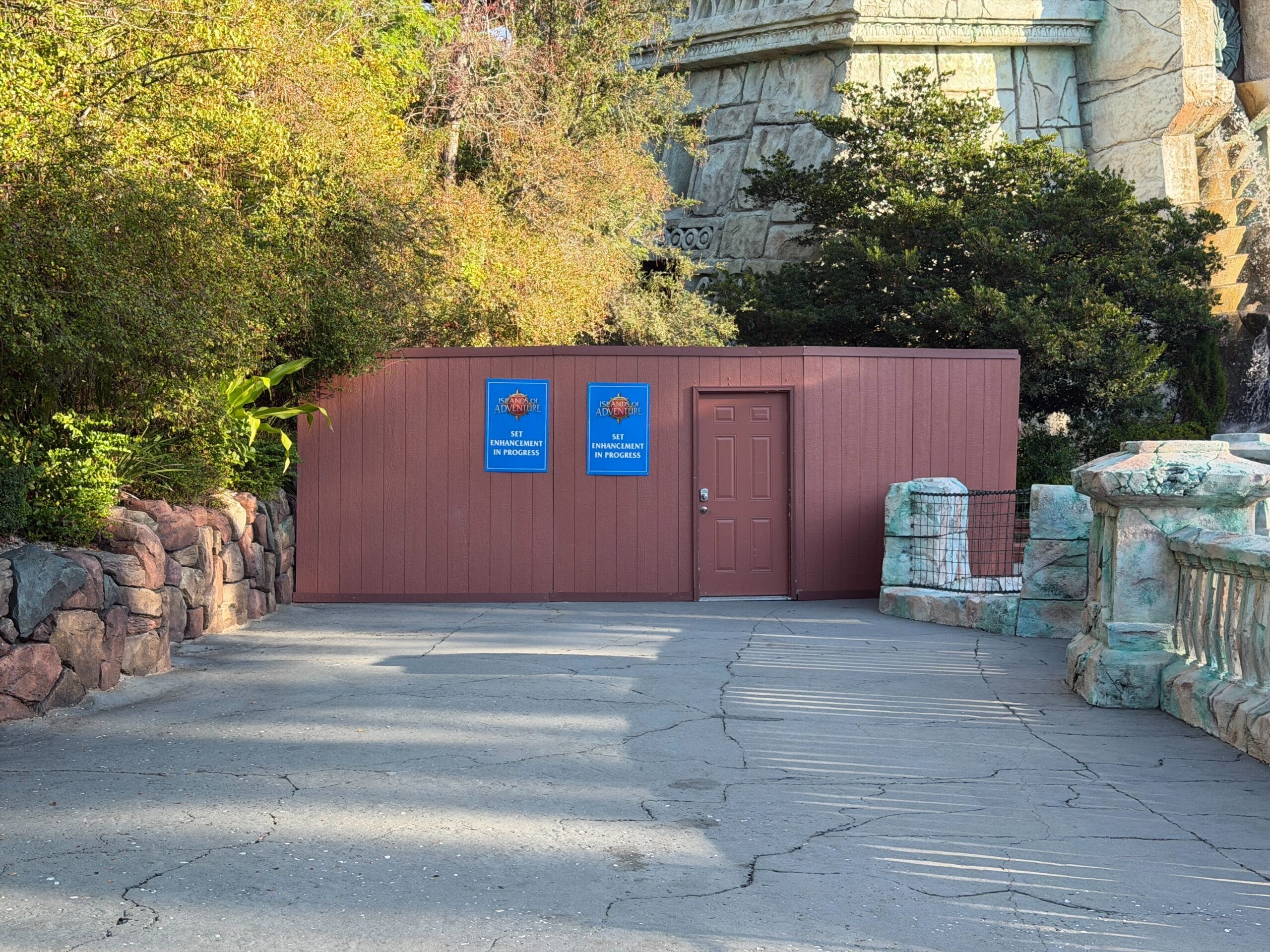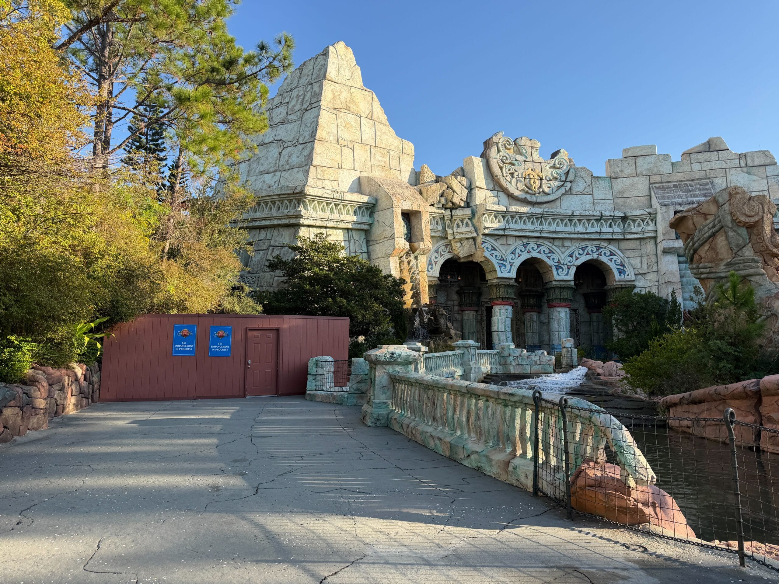 Inside The Lost Continent, construction walls have returned to the exit of Poseidon’s Fury, which permanently closed in May 2023. Despite the closure, there have been very few signs of construction in the 2+ years since.